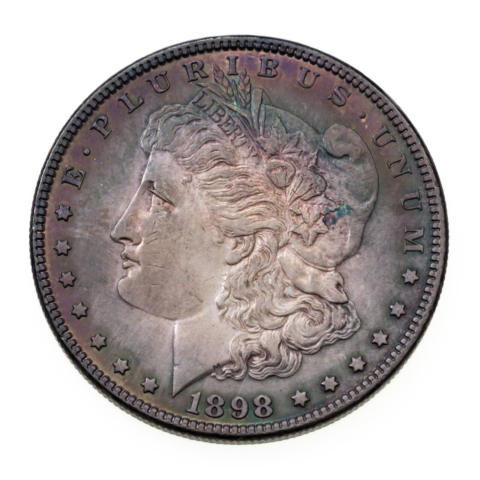 1898 $1 Silver Morgan Dollar in AU Condition, BU in Wear, Partial Cleaning
