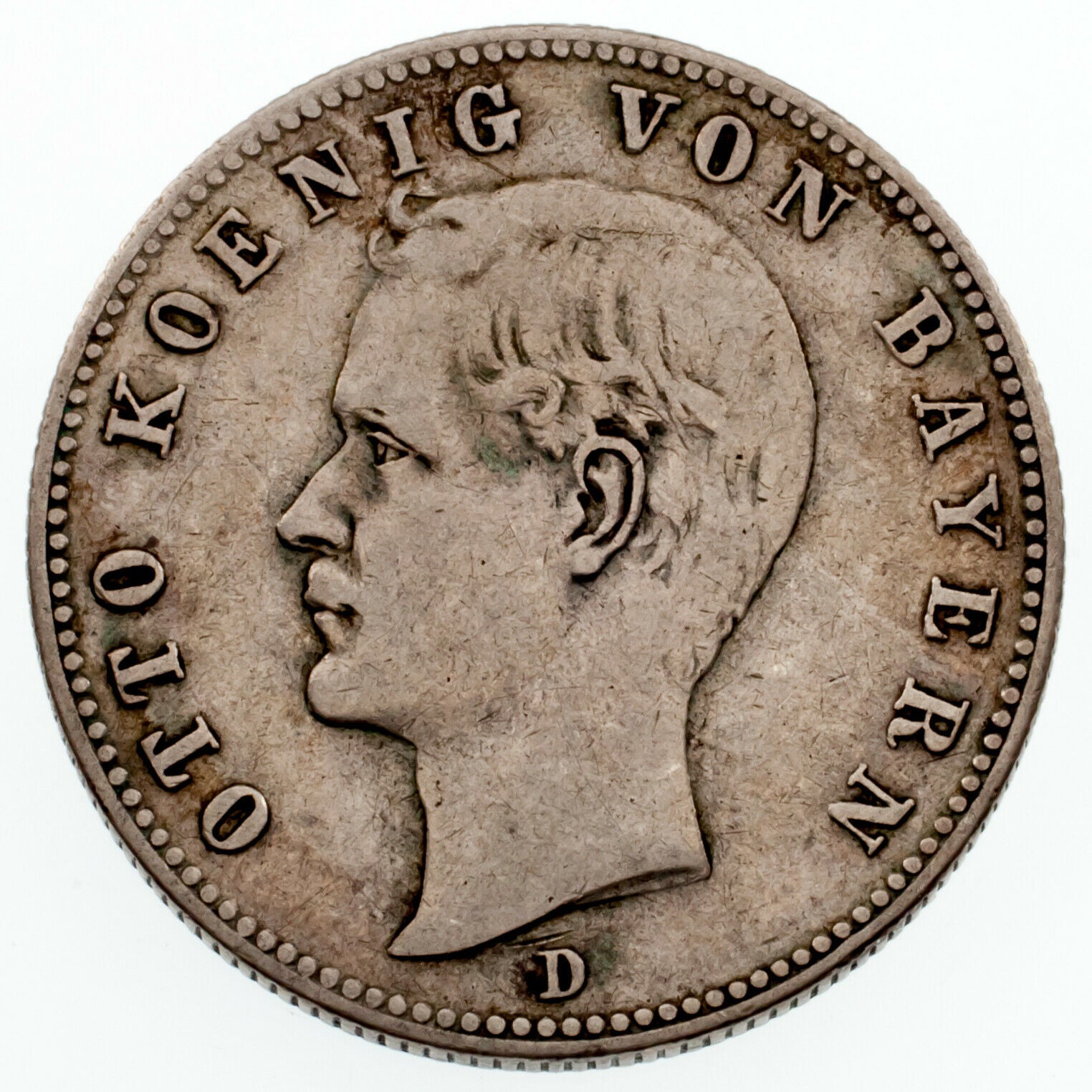 1898 German States Bavaria 2 Mark Silver Coin Fine Condition KM #913