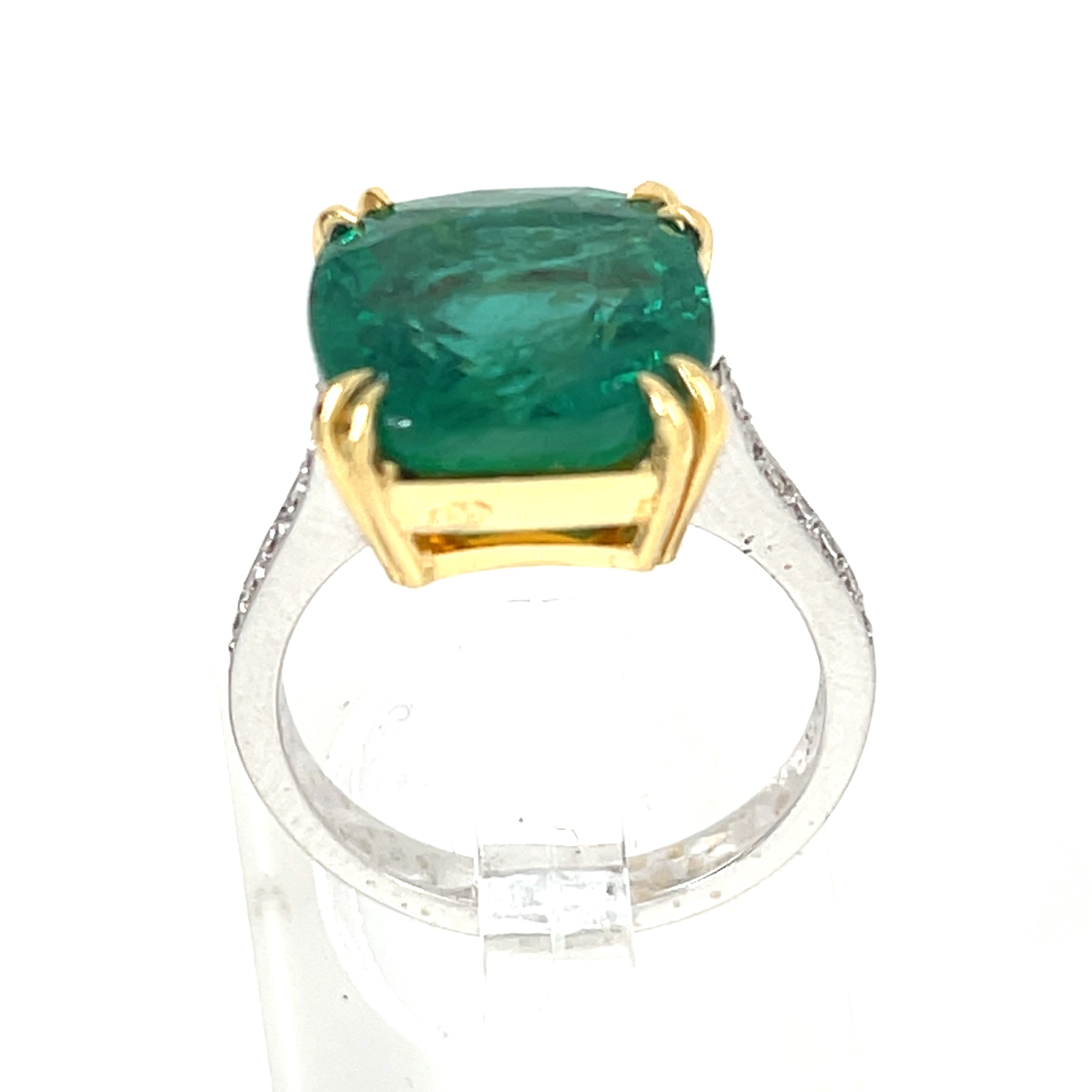 18k Two Tone Gold 6.15 ct Emerald Solitaire Ring with Diamond Accents Size 6.25