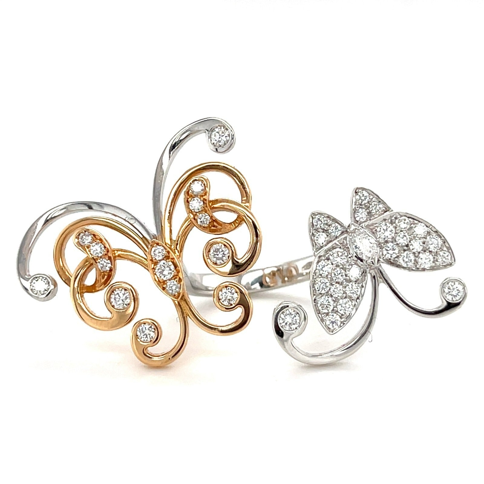 18k Two-Tone Gold & 1.15ct Diamond Double Butterfly Gallery Ring, Size 5.5