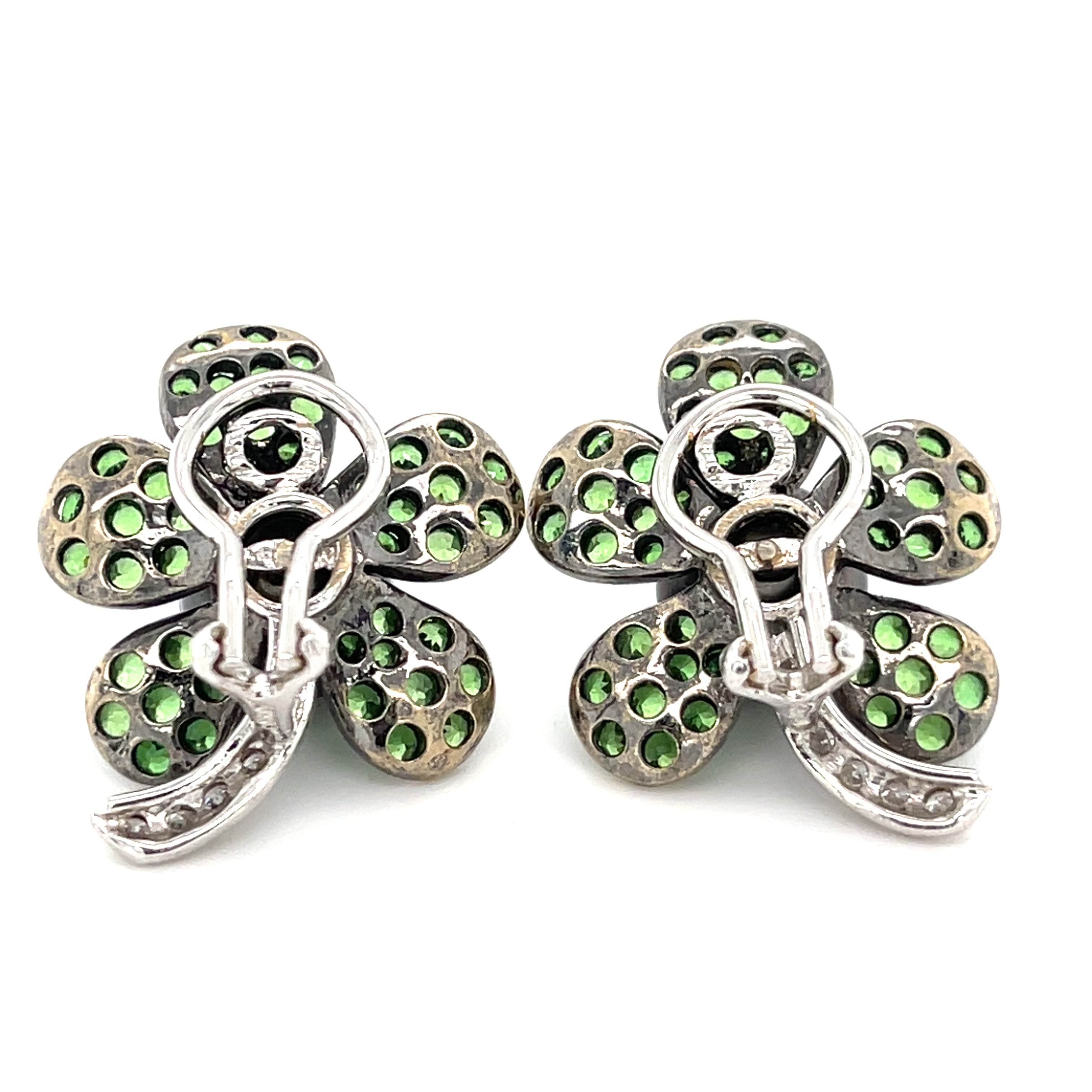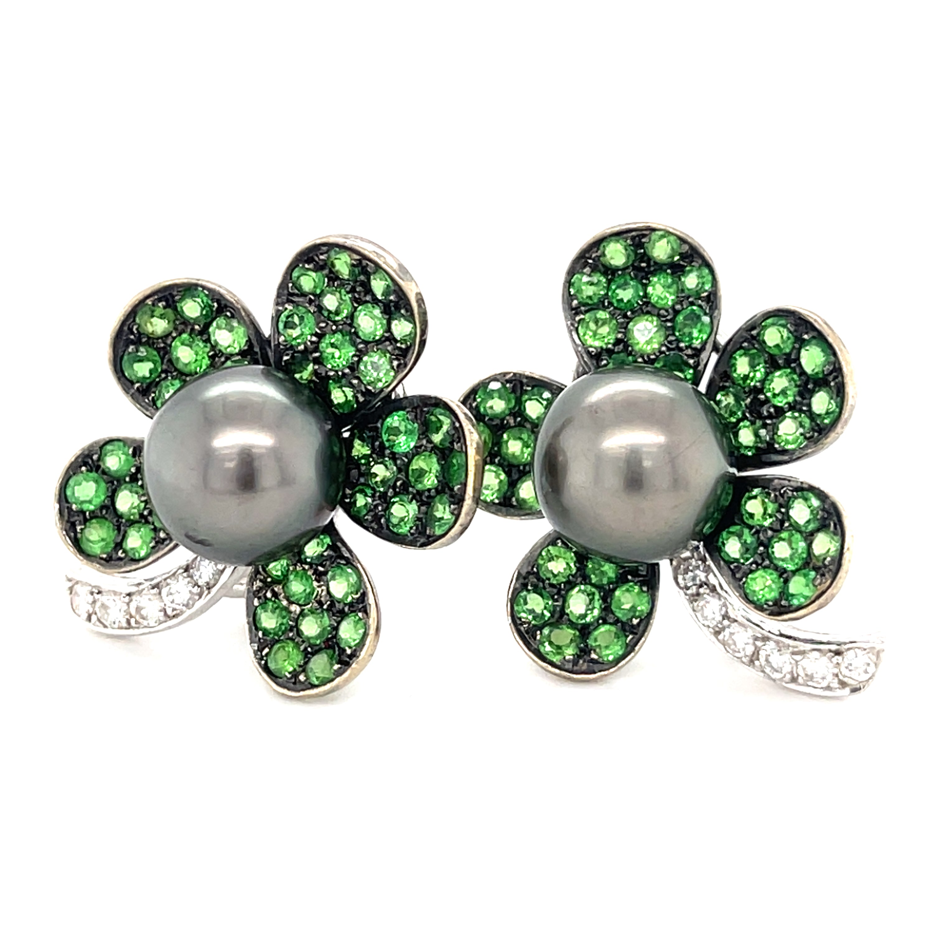 18k White Gold & South Sea Pearl Flower Clip-on Earrings w/ 2.95ct Tsavorite, 0.45ct Diamond