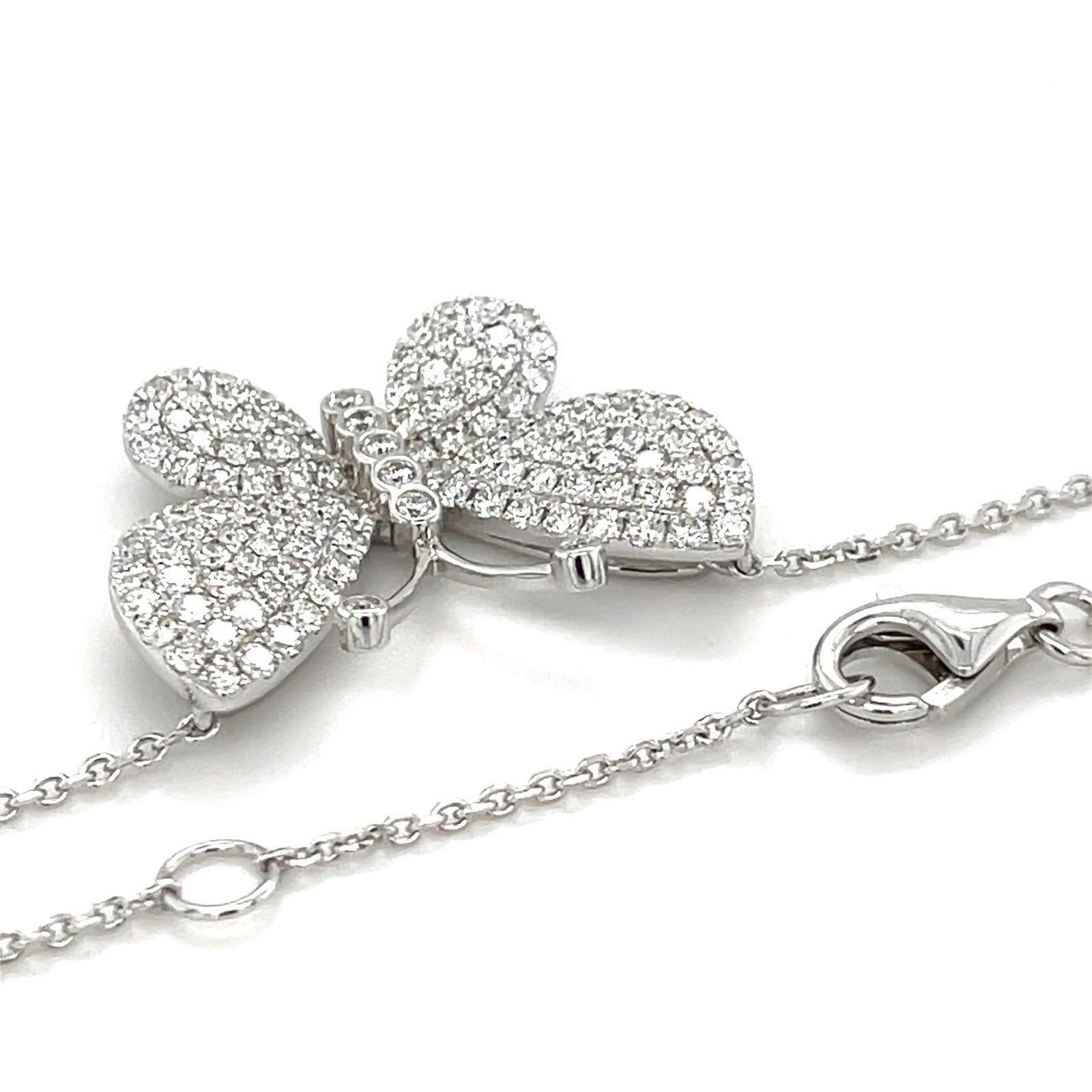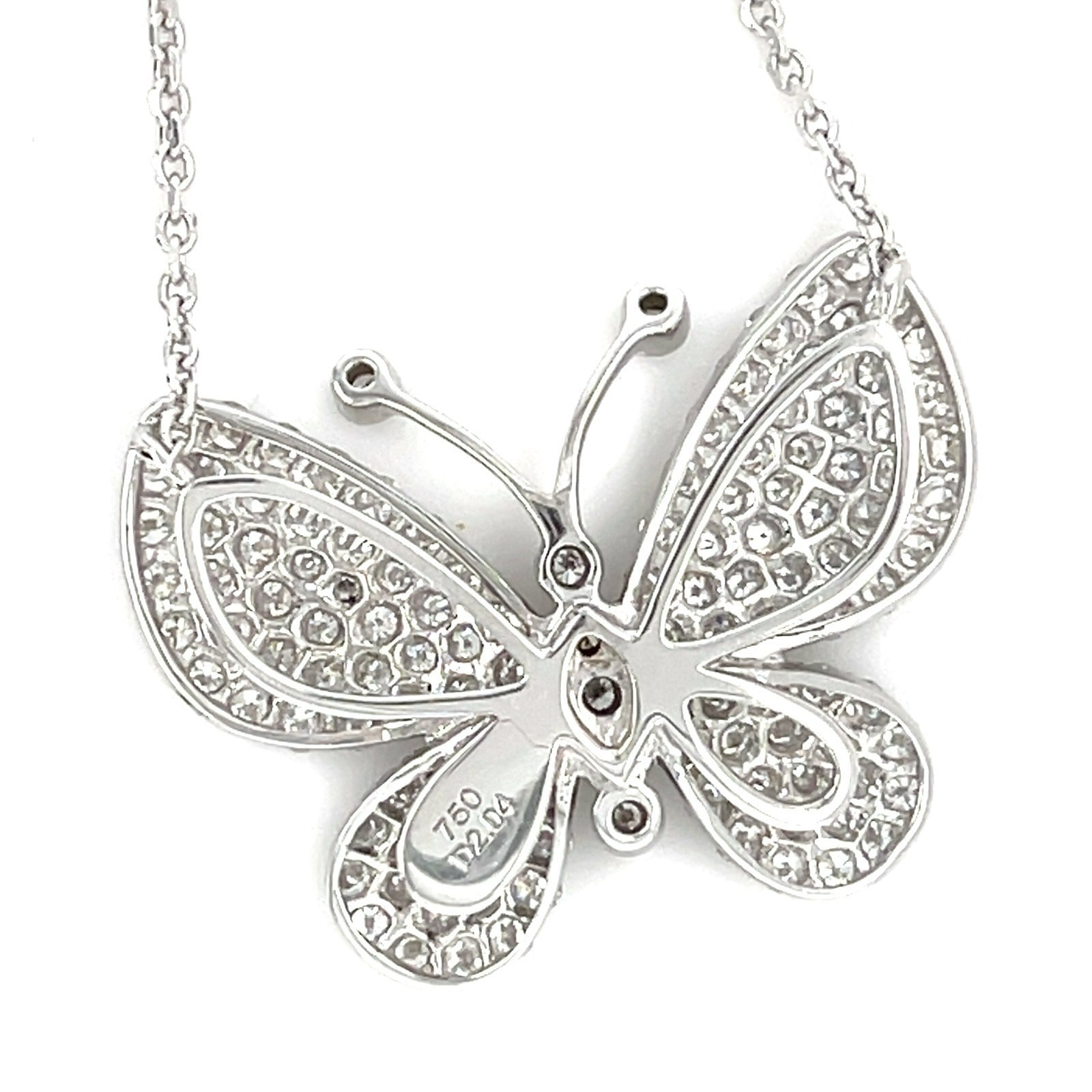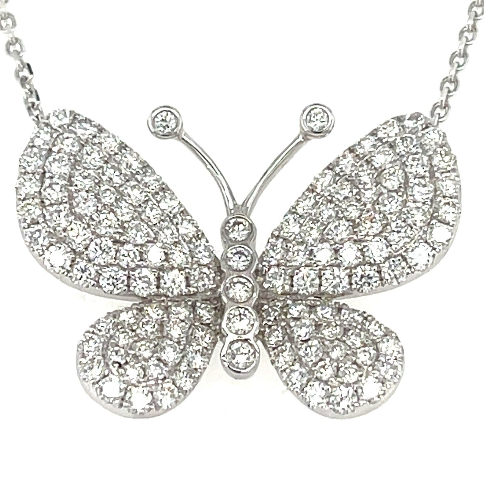 18k White Gold & 2.04ct Pave Diamond Butterfly Pendant Necklace, Length 16"