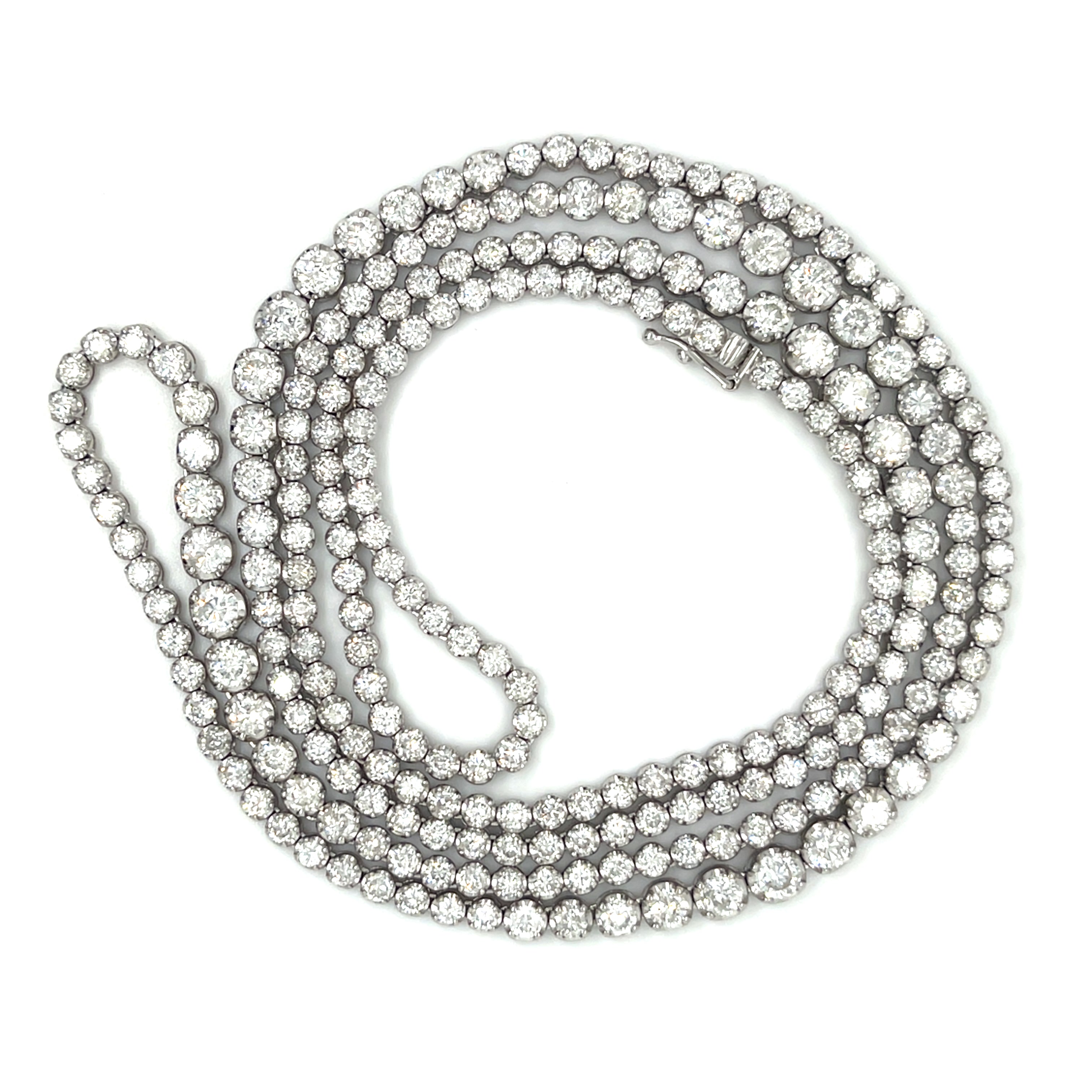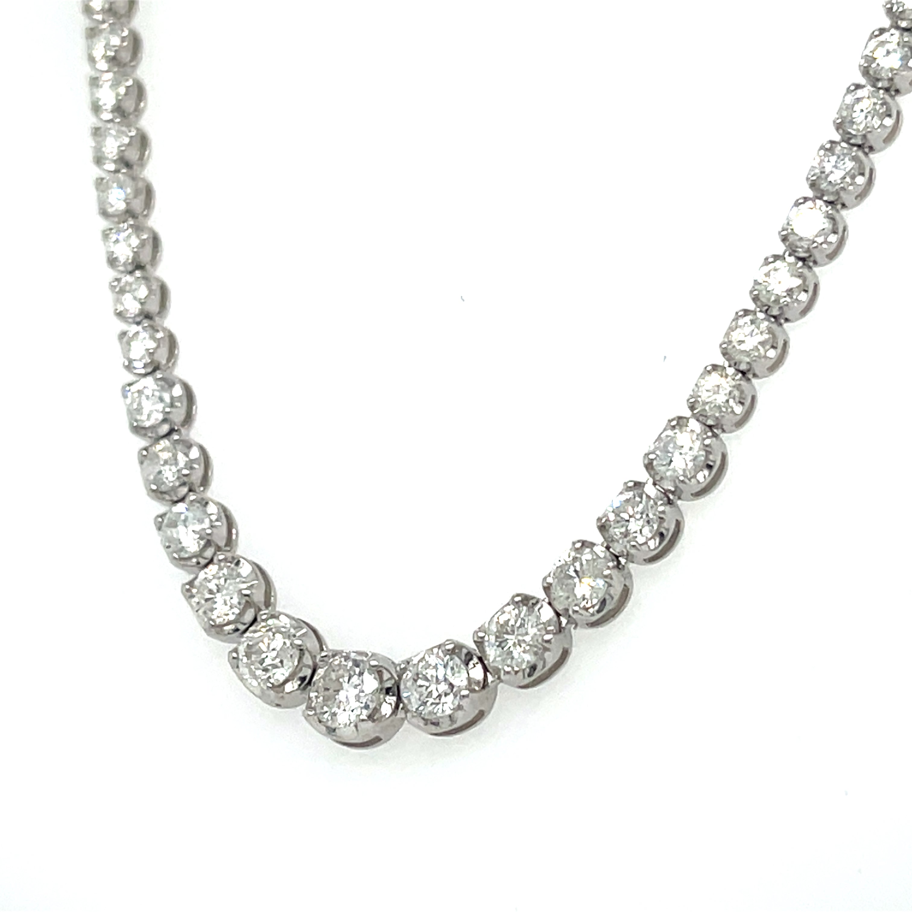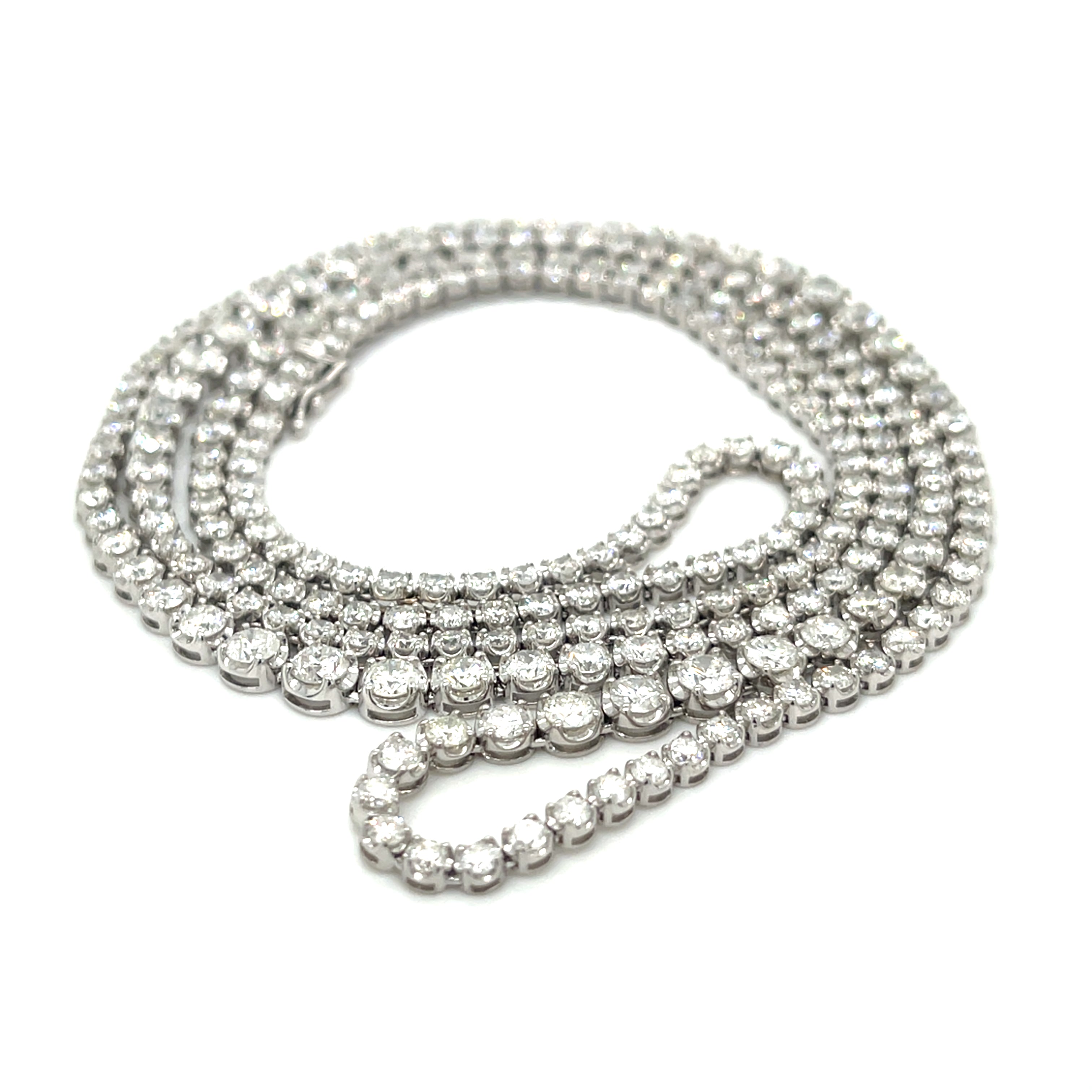 18k White Gold Undulating Graduated Diamond Tennis Necklace 32" 16.98 ct