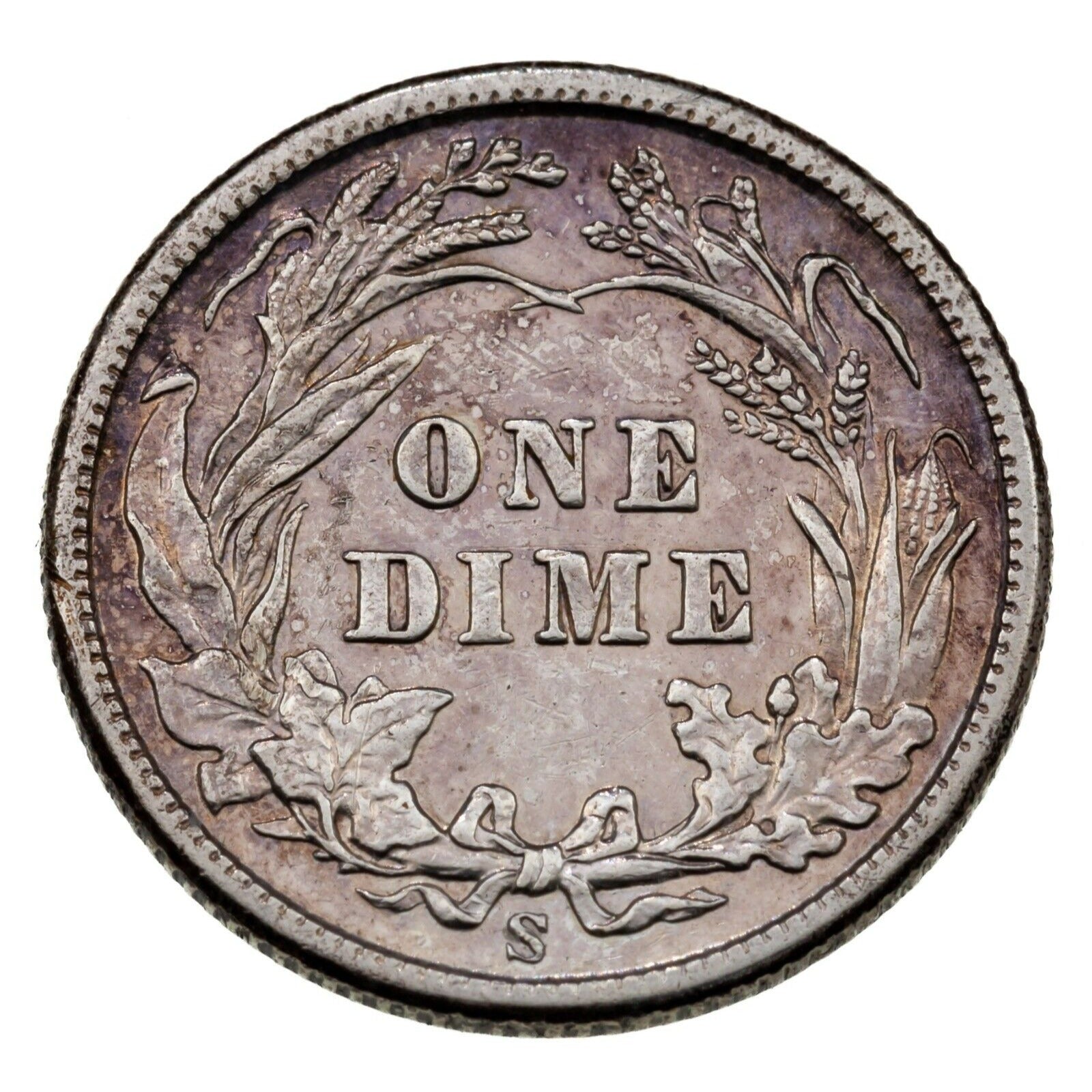 1908-S 10C Barber Dime in XF Condition, Light Toning