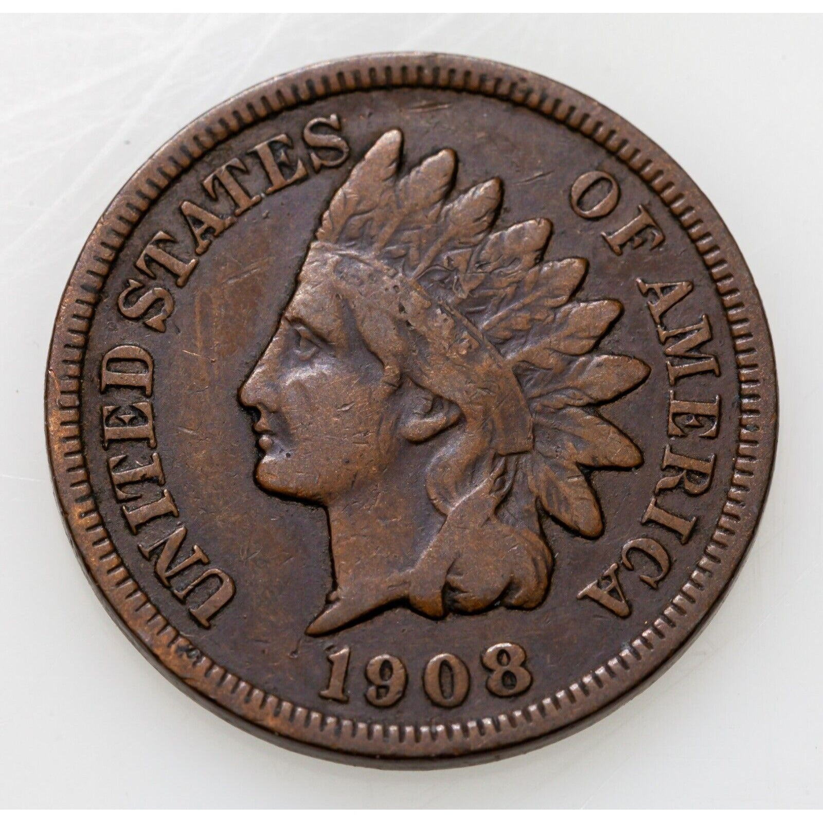 1908-S 1C Indian Cent in Very Good VG Condition, Brown Color