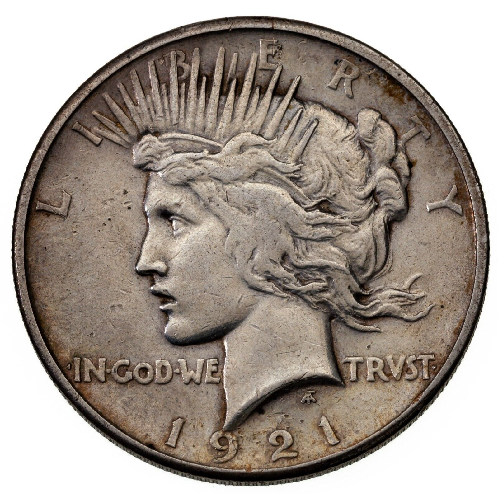 1921 $1 Silver Peace Dollar in Very Fine VF Condition, Graffiti on Reverse