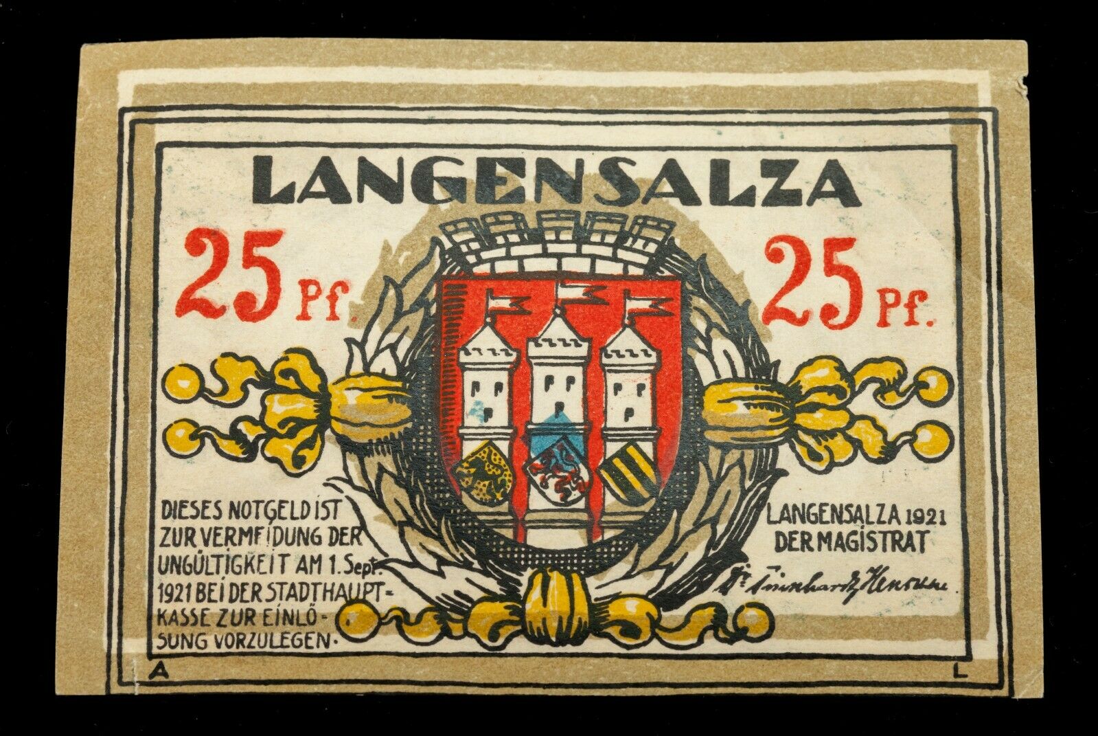 1921 Germany Notgeld Error Note // Langensalza 25 Pfennig Printing Error GrM#770