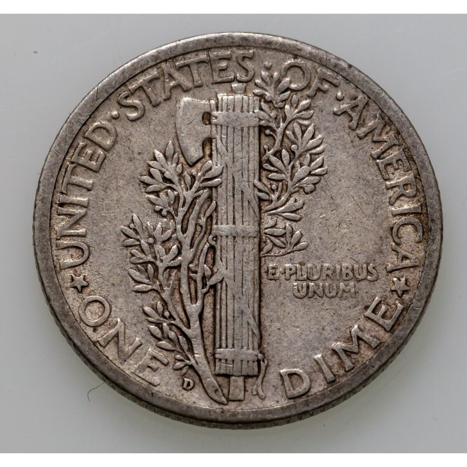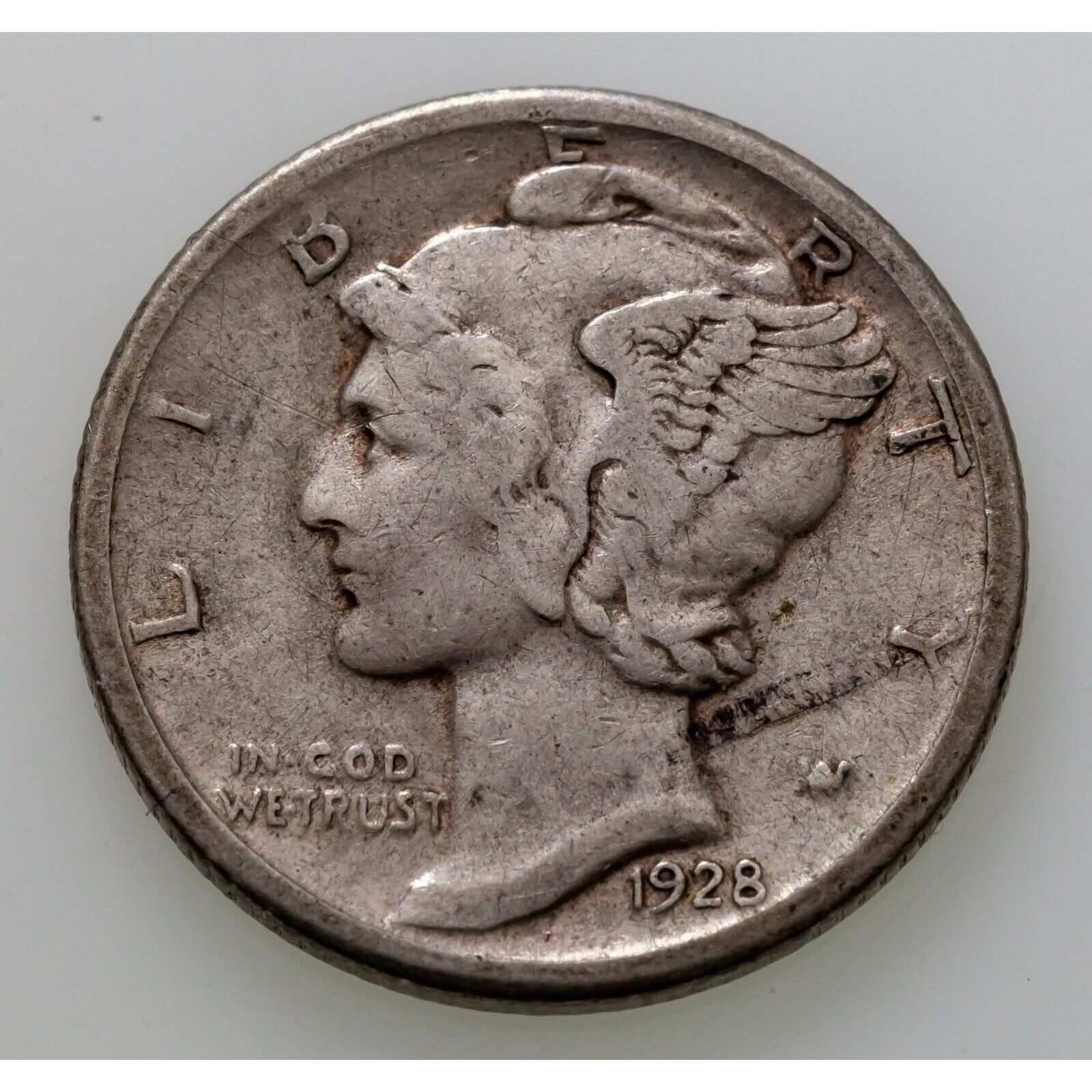 1928-D 10C Mercury Dime in Extra Fine XF Condition, Mostly White, Light Toning