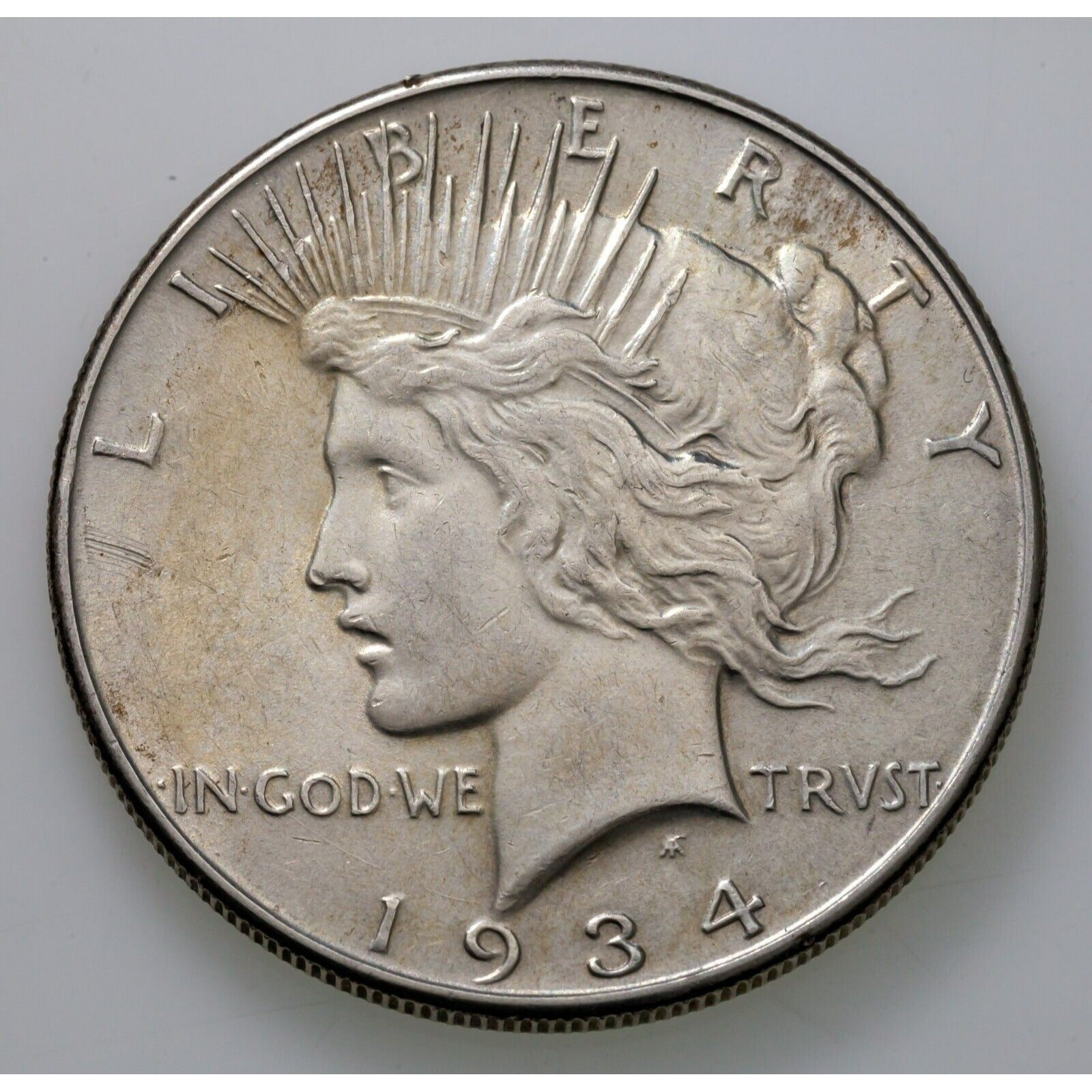 1934 $1 Silver Peace Dollar in AU Condition, Excellent Eye Appeal, Strong Luster