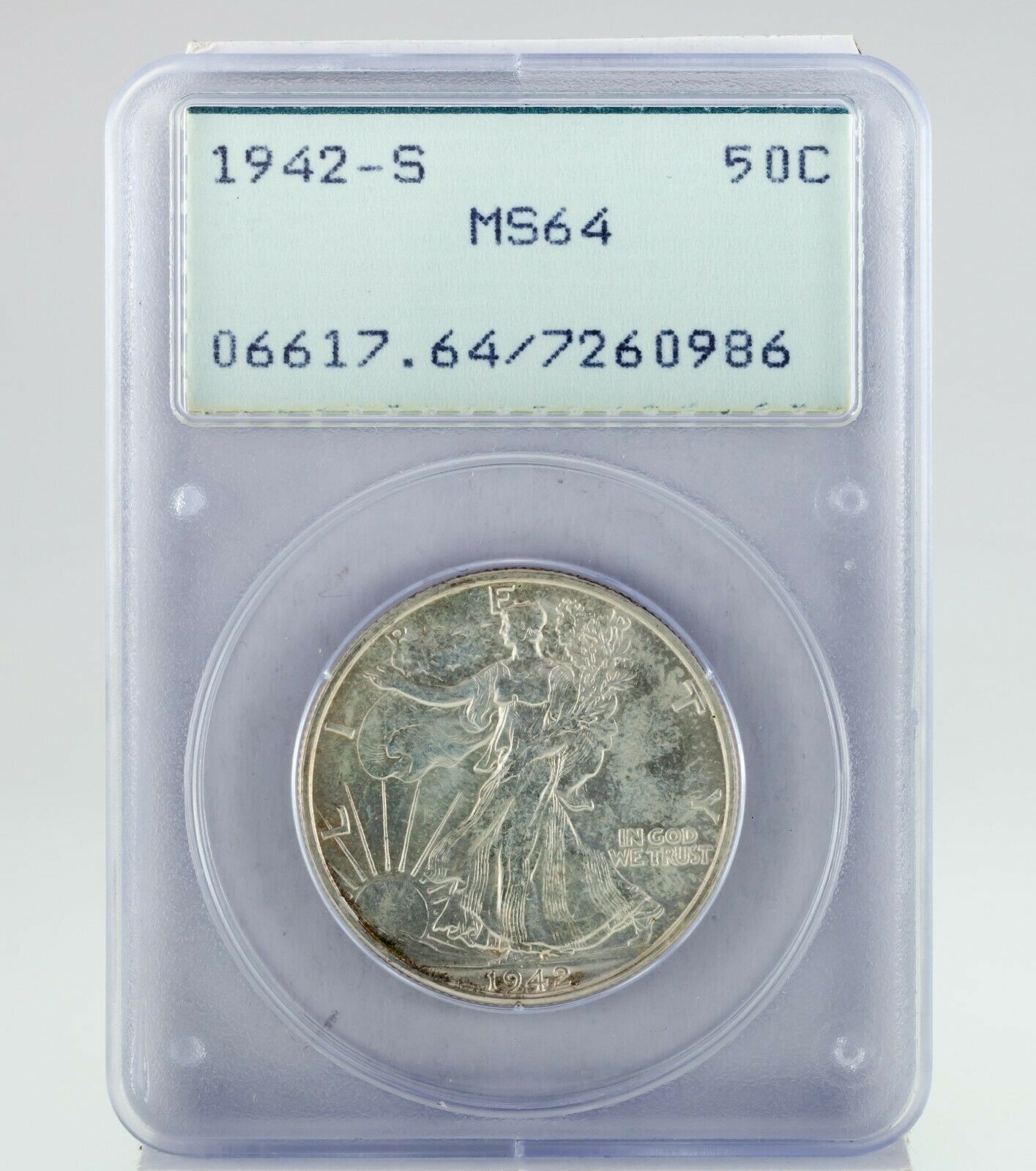 1942-S 50C Walking Liberty Half Dollar Graded by PCGS as MS-64! Old Rattler!