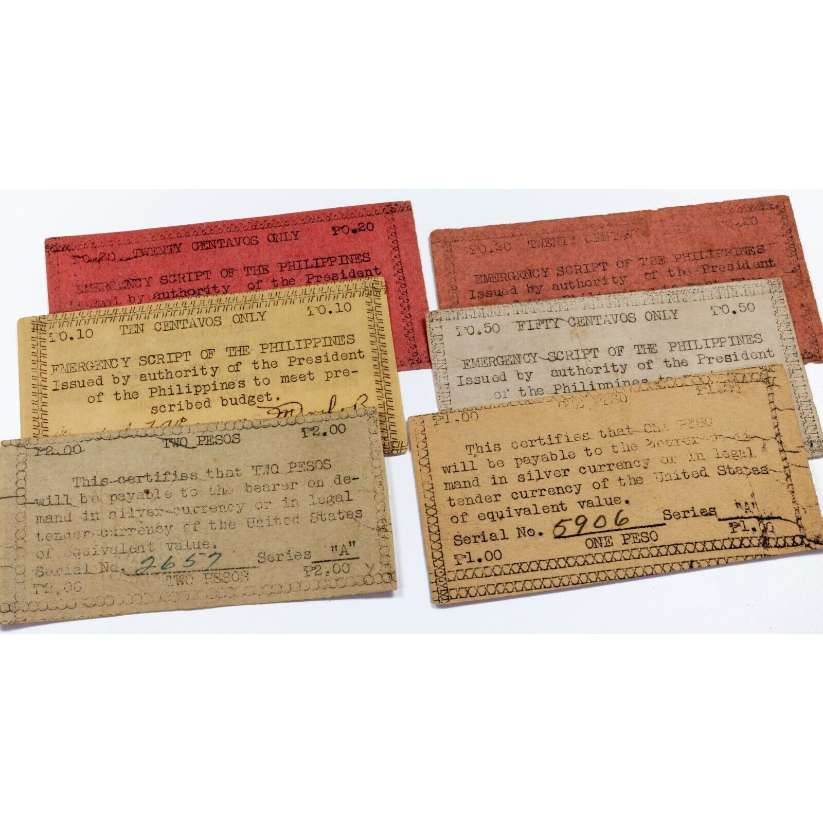 1943 Emergency Script of the Philippines 10c - 2p Lot of 6