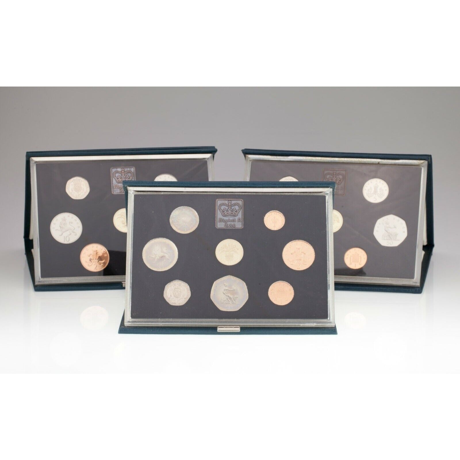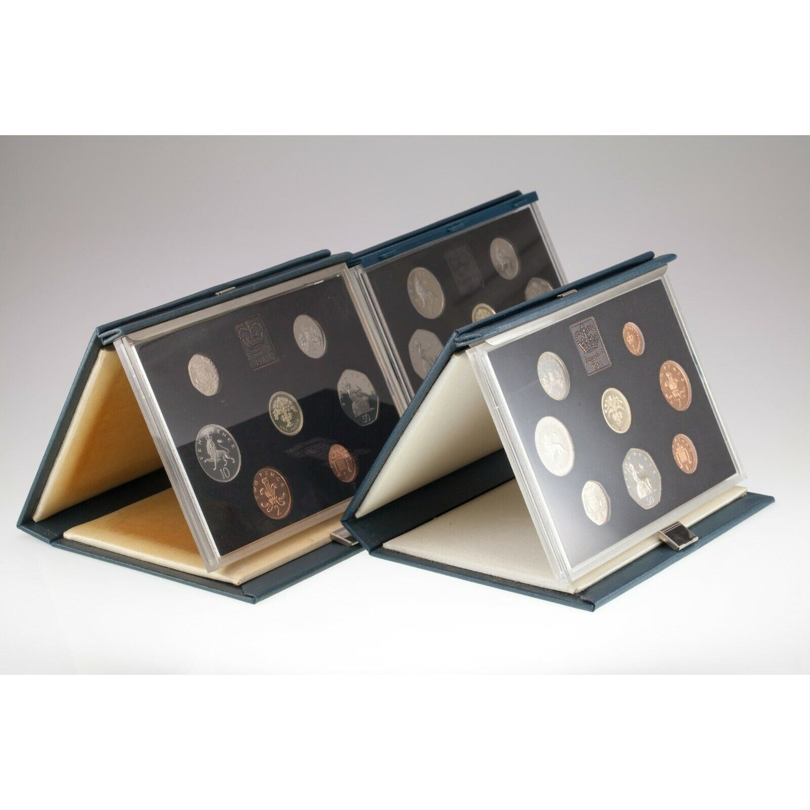 1984, 1985 & 1987 United Kingdom Proof Set Collection w/ 2 Original COA's