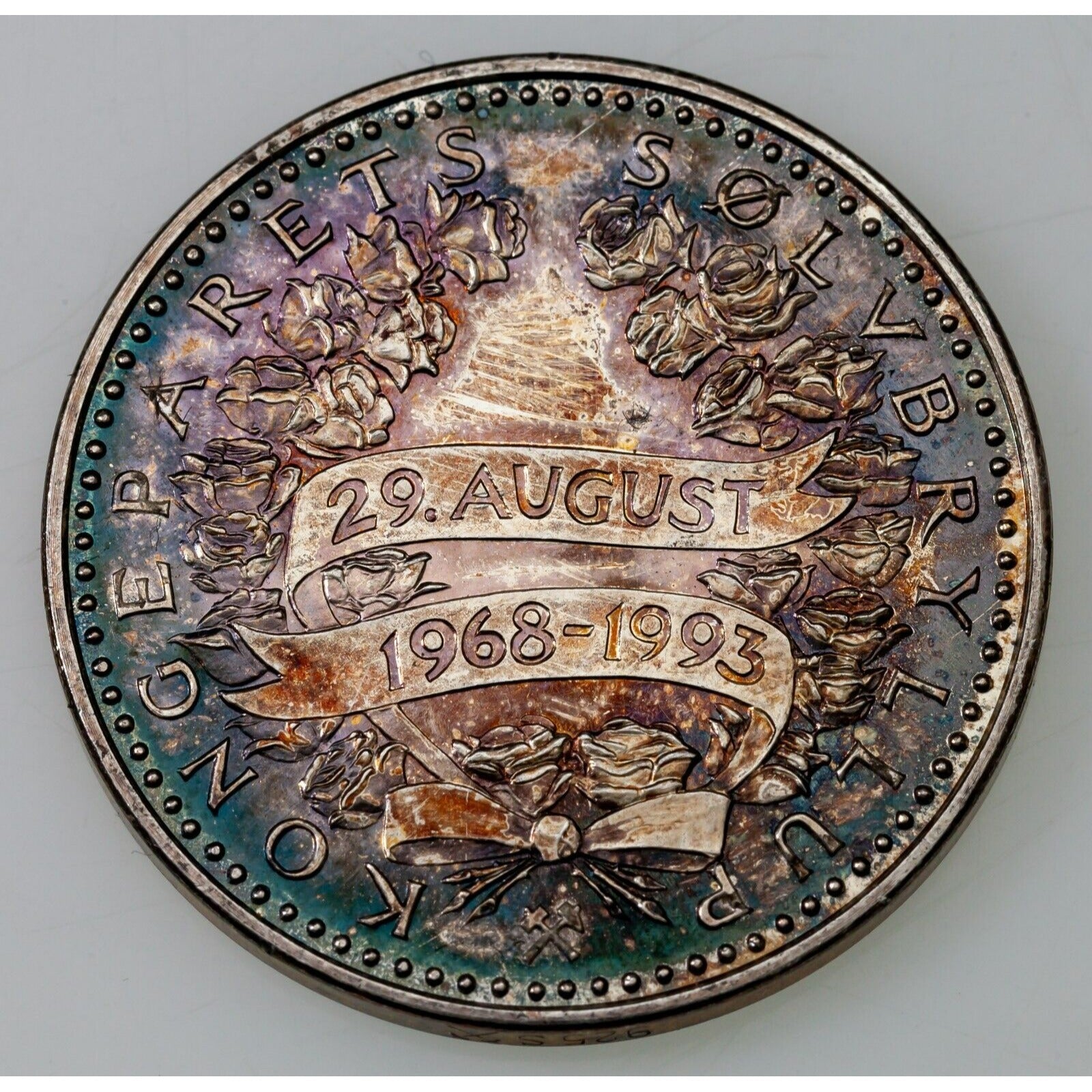 1993 King Harald & Queen Sonja Norway 25th Anniversary Sterling Silver Medal AU