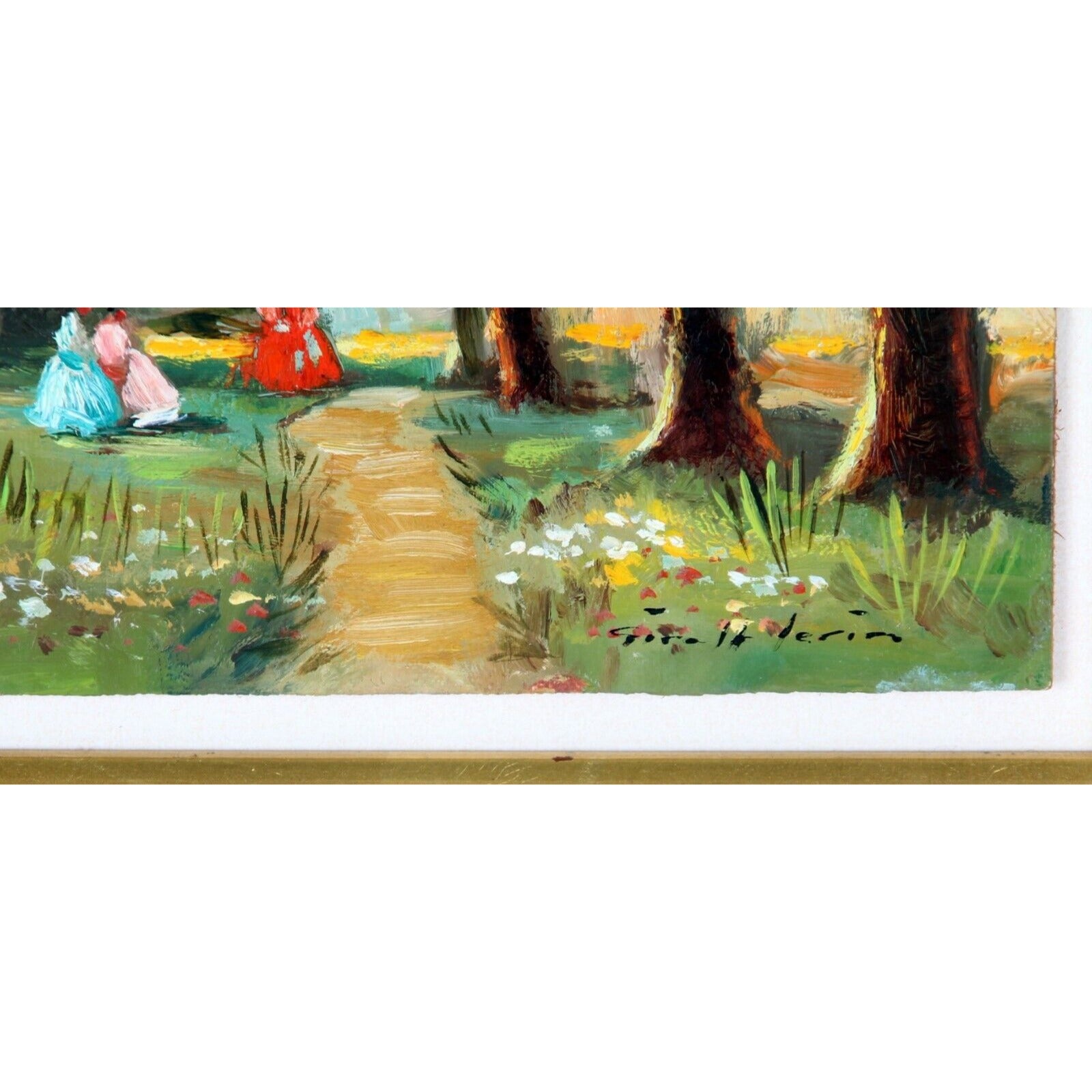 "Promenade" by Giralt Lerin, Oil on Board, 14x15 Framed