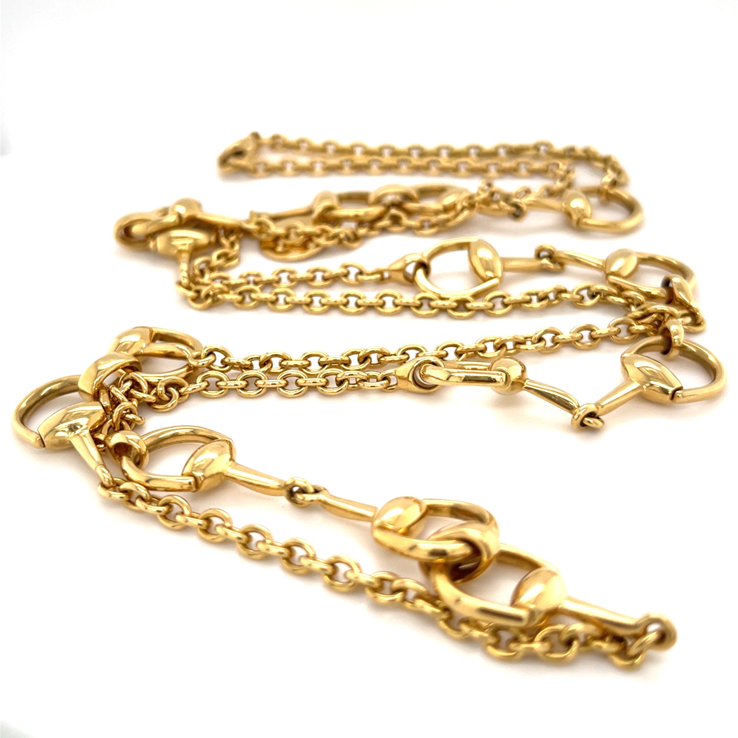 Gucci 18k Yellow Gold Horsebit Necklace, Length 37.5 inches, Made in Italy.