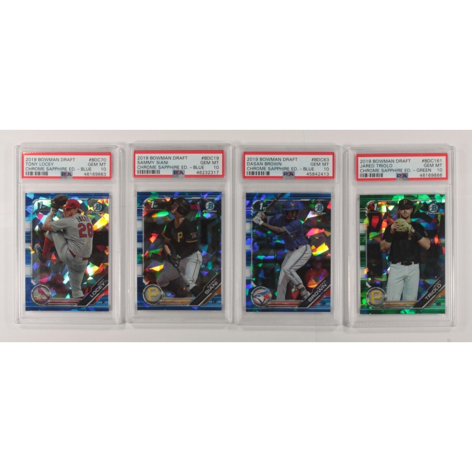 Lot Of 4 PSA 10 2019 Bowman Chrome Draft Sapphire Locey, Siani, Triolo, Brown