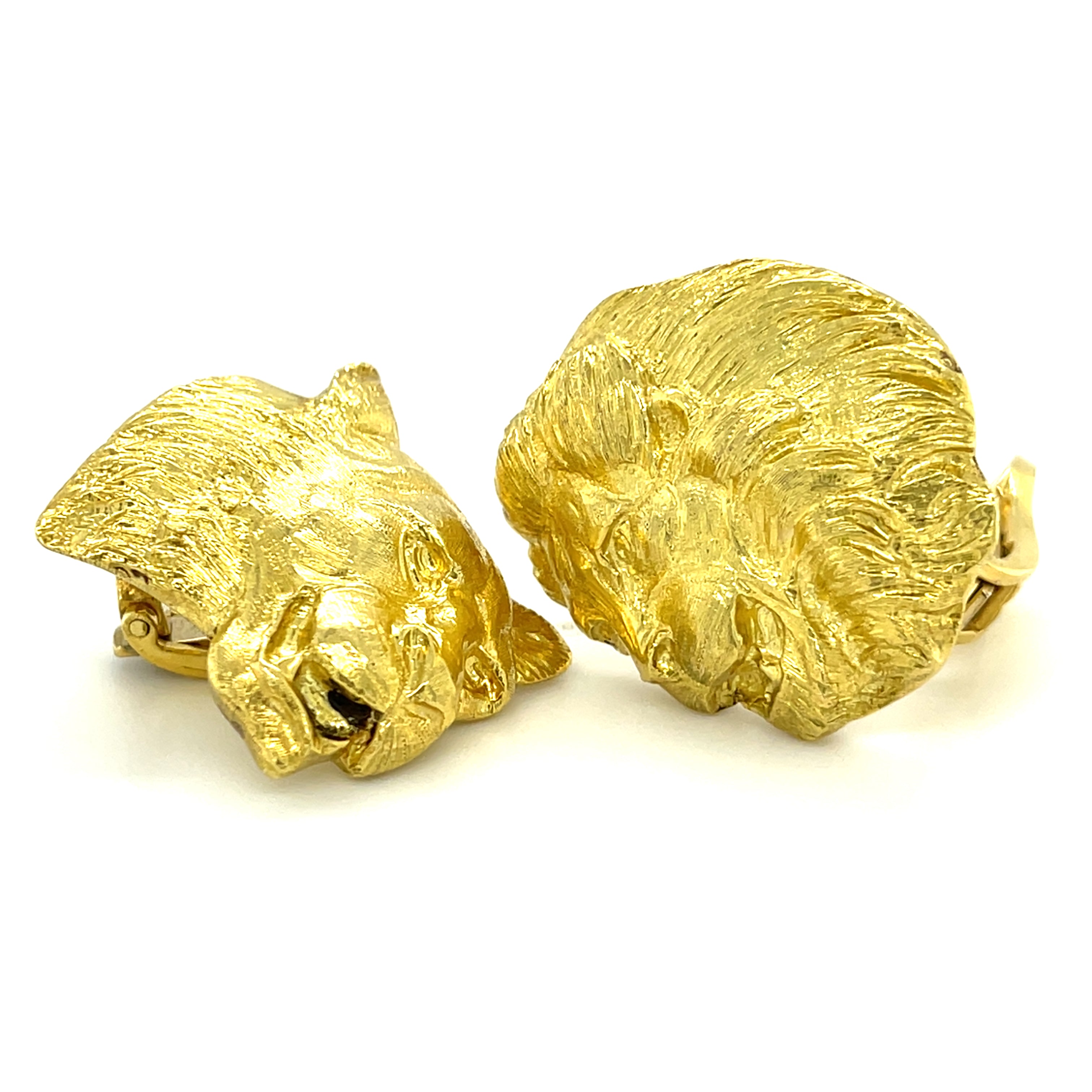 Mario Buccellati 18k Yellow Gold Lion & Lioness Ear Clips 1996