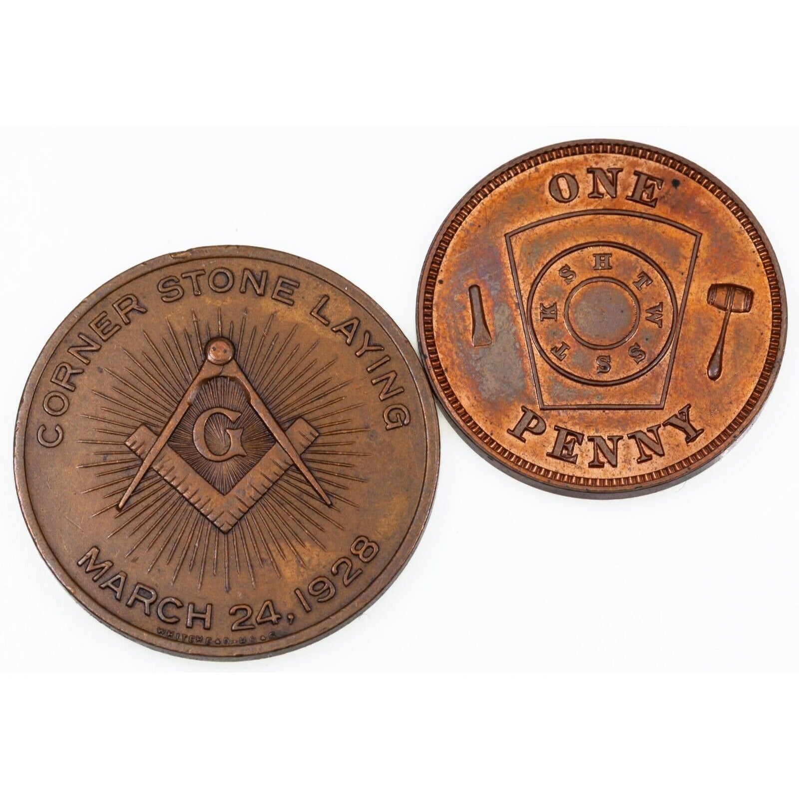 Masonic One Penny Lot of 4 Tokens, Midway, Keystone, Garfield