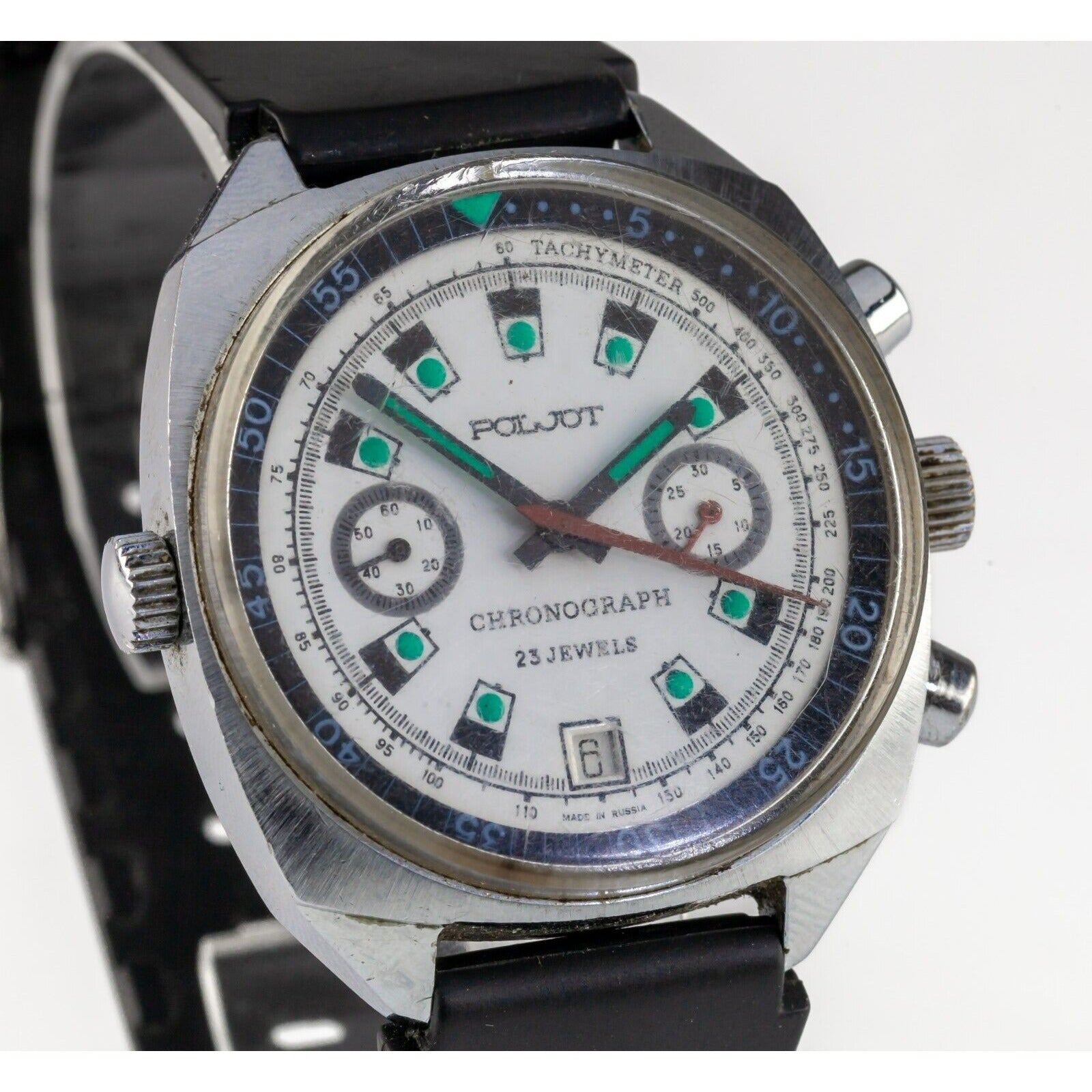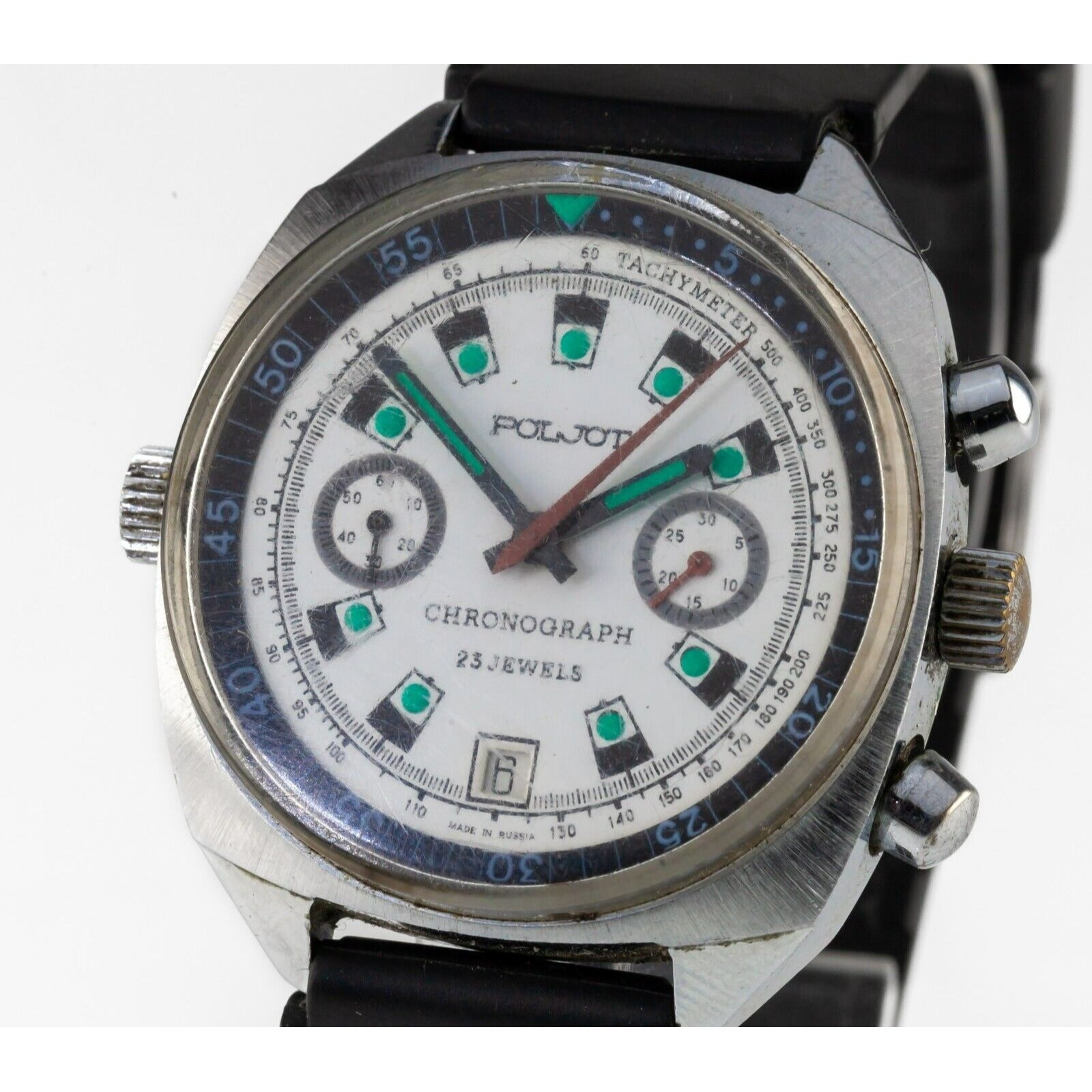 Poljot Stainless Steel Vintage Chronograph Watch w/ Rubber Strap 25 Jewels