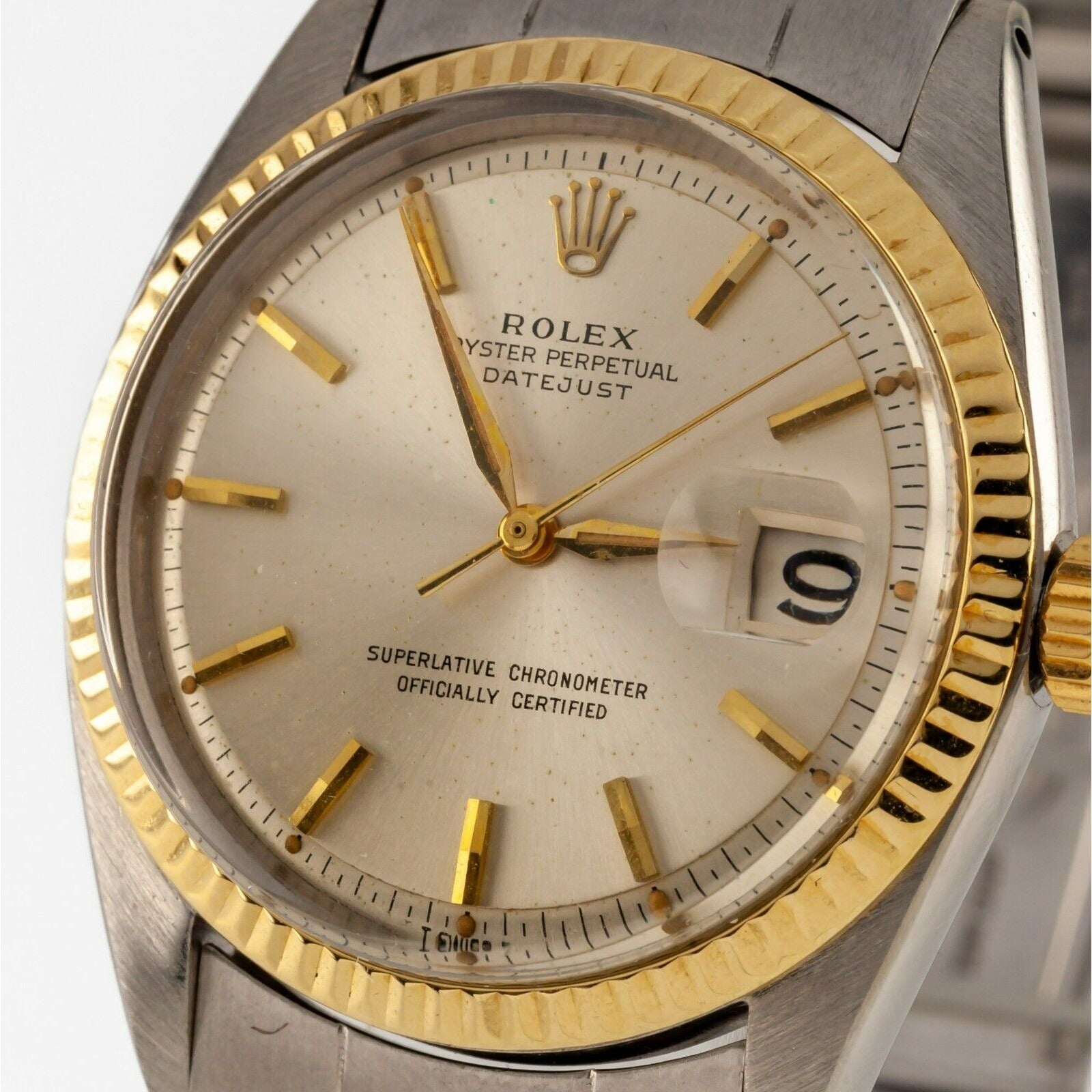 Rolex Men's Datejust Stainless Steel Oyster Band 1601 w/ Yellow Gold Bezel