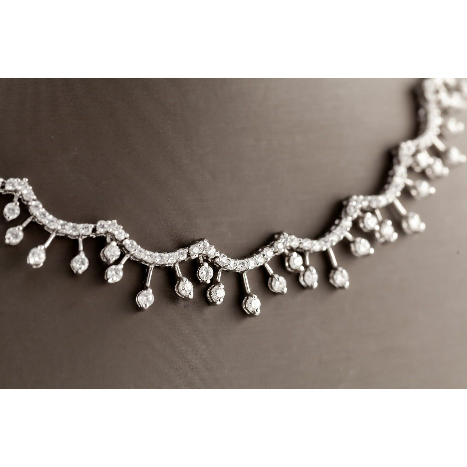Sterling Silver Cubic Zirconia Bib Necklace with Solitaire Drop Accents 16"