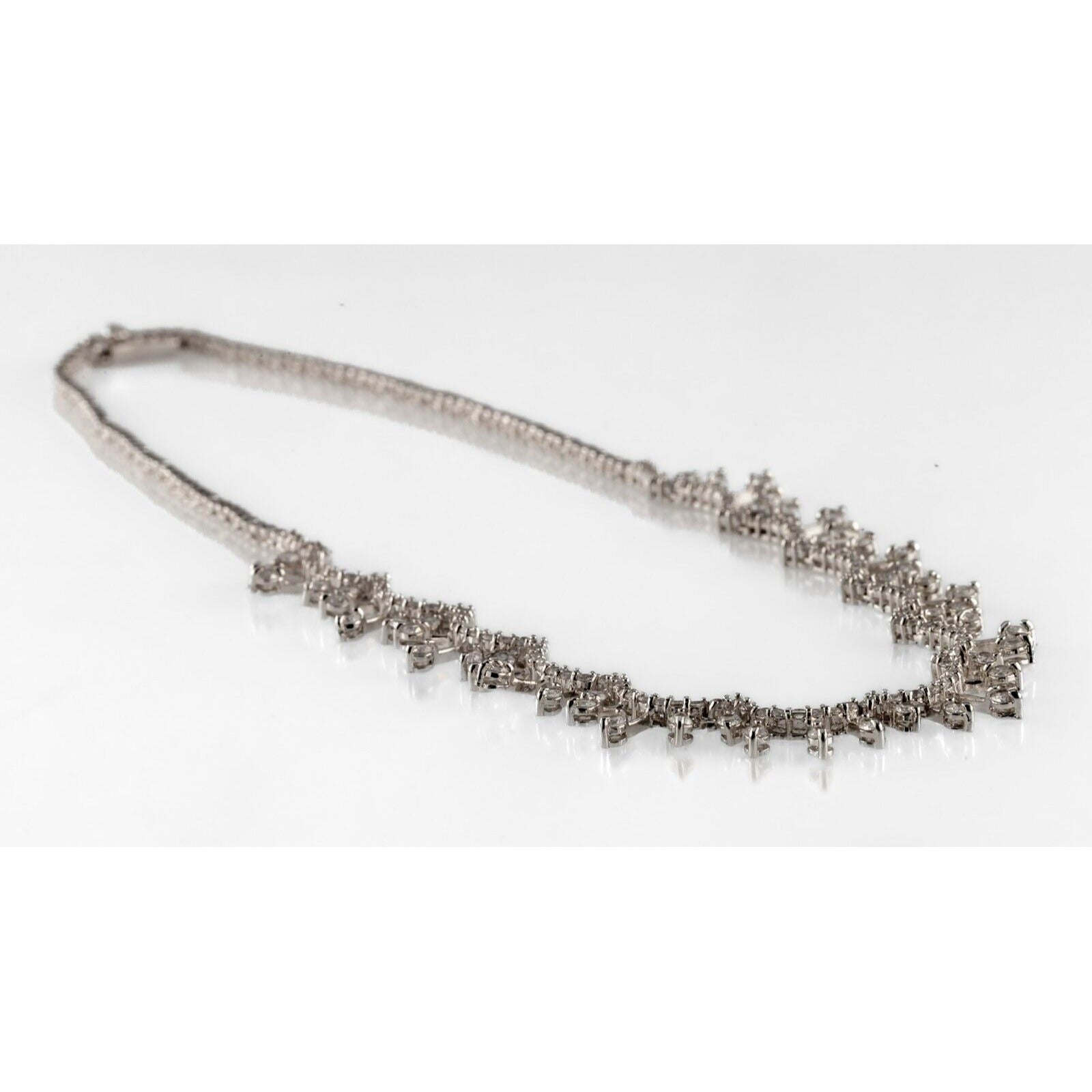 Sterling Silver Cubic Zirconia Tennis Necklace Alternating 16"