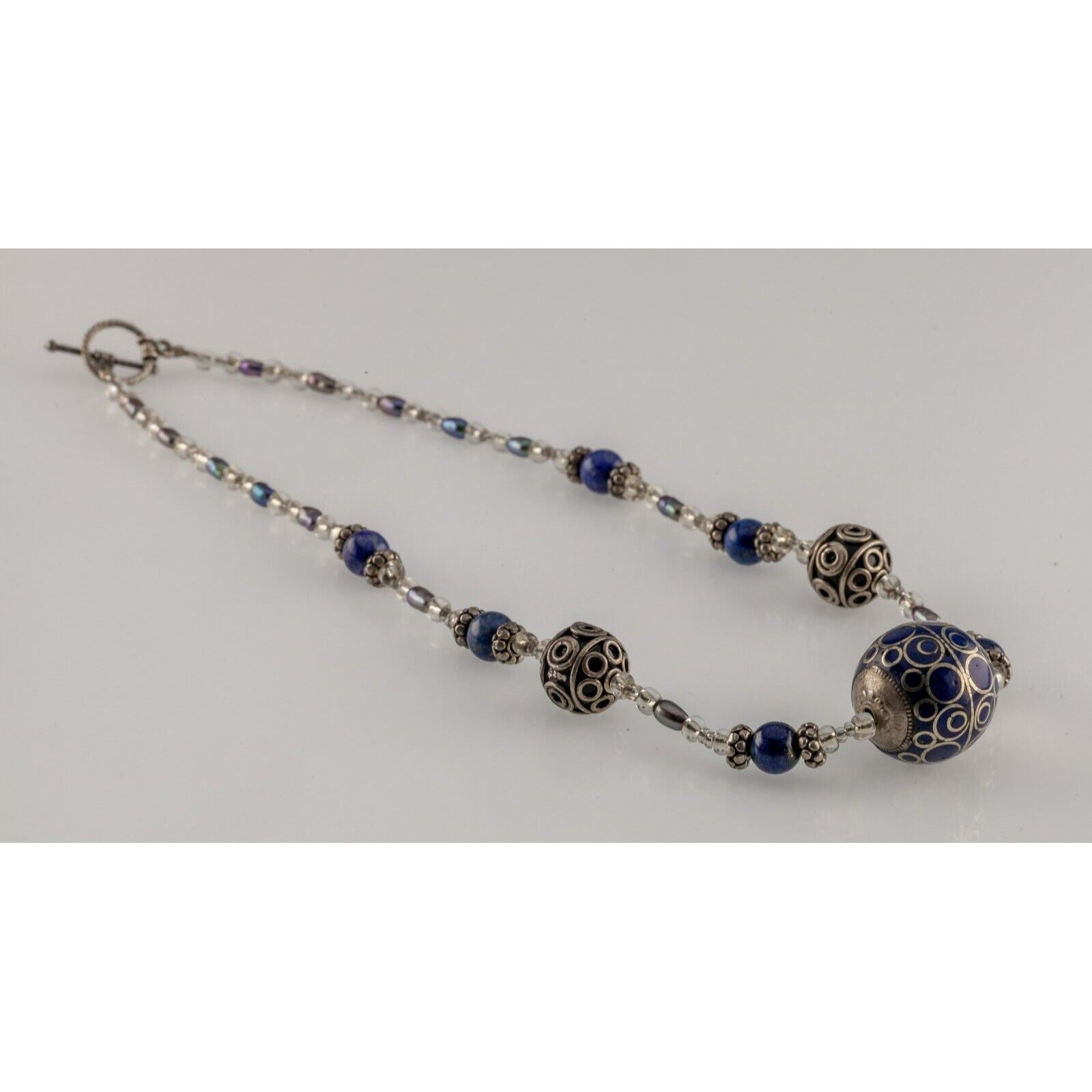 Sterling Silver Strand Lapis Lazuli, Glass Bead, and Accent Bead Necklace 18"