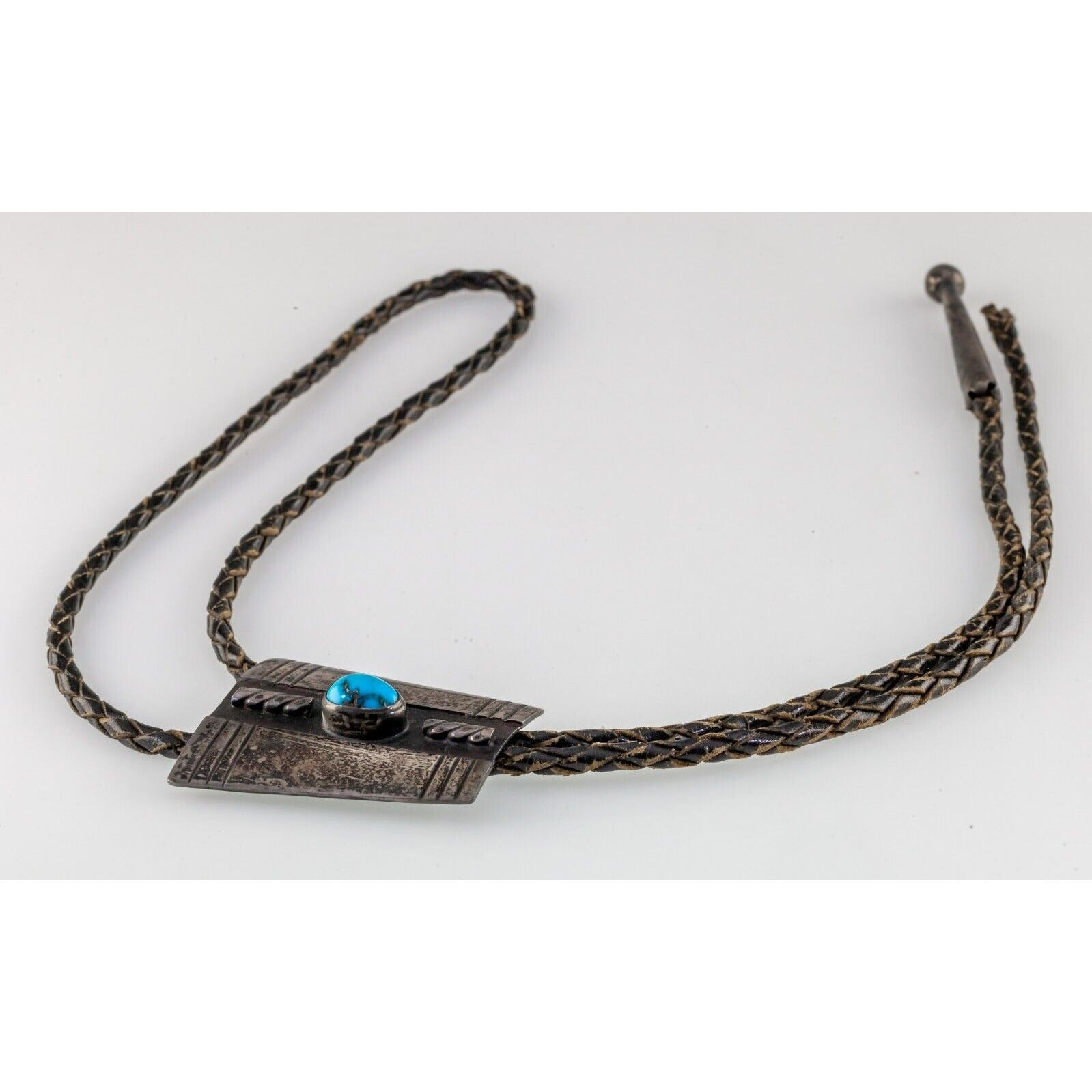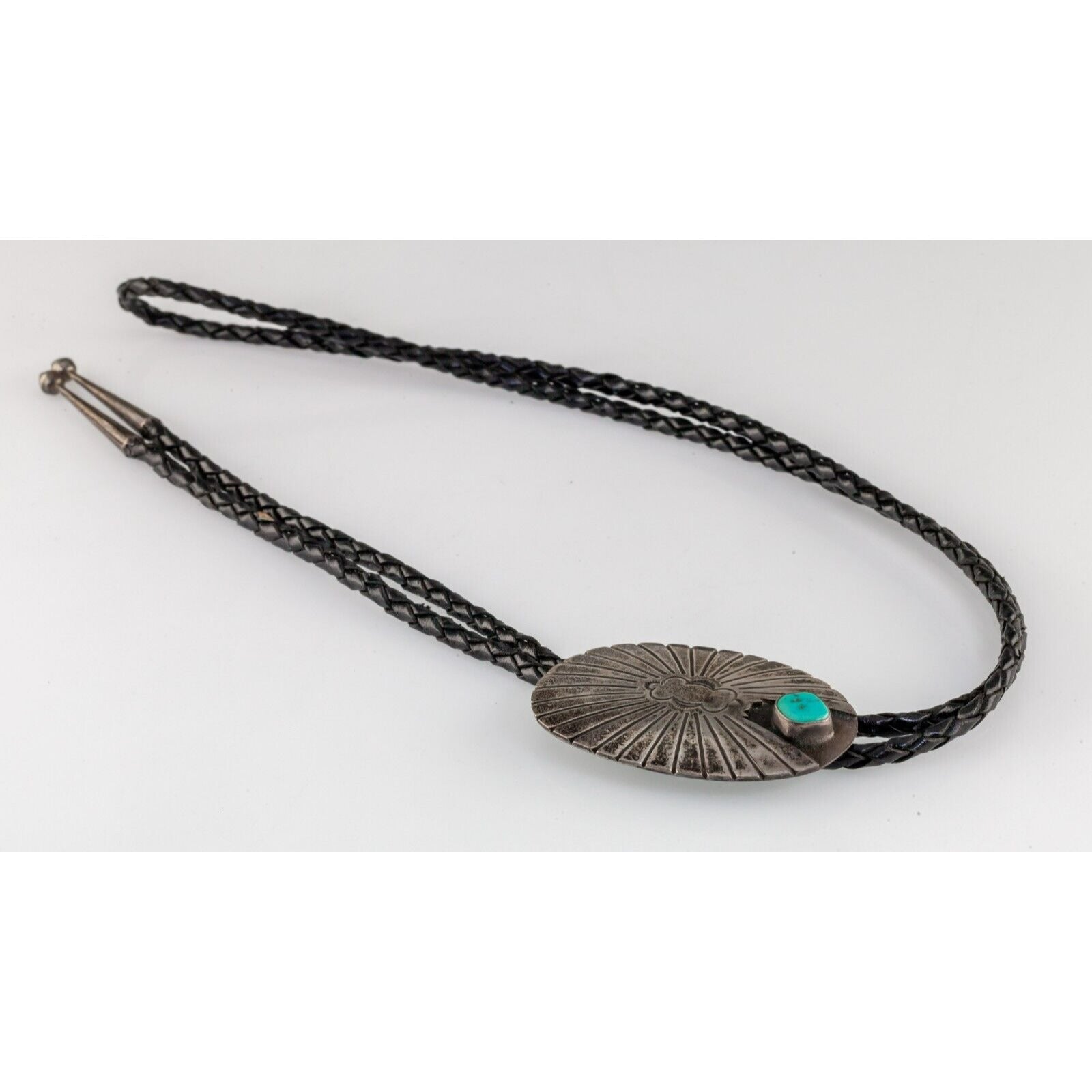 Sterling Silver Turquoise Bolo Tie with Braided Leather One Missing Aglet