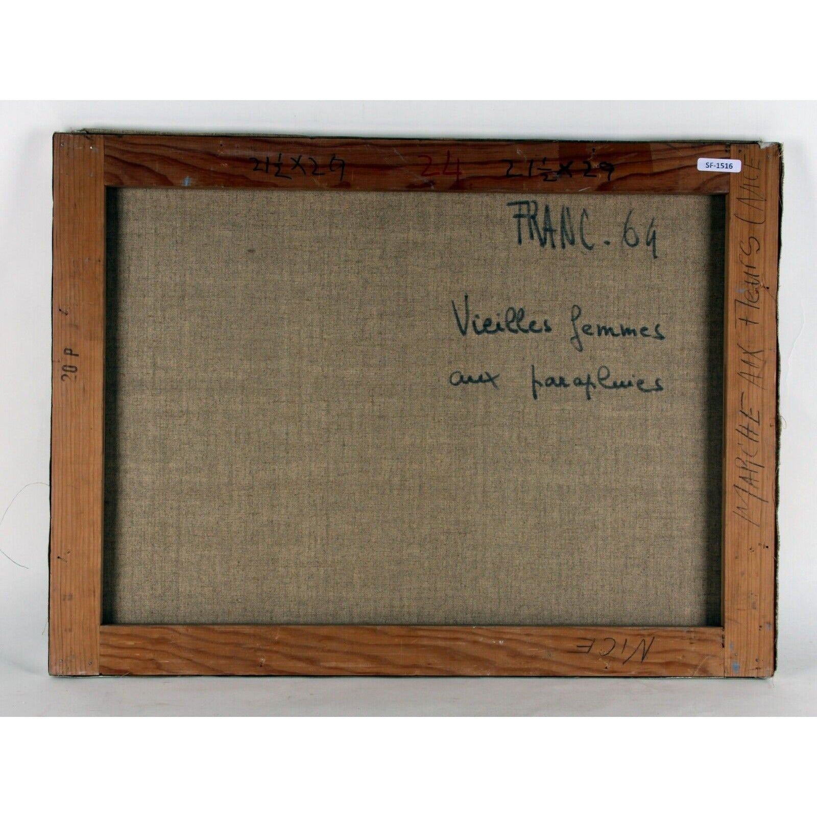 "Vielles Femmes aux Paraluies" by Franc, Old Women with Umbrellas, Oil on Canvas