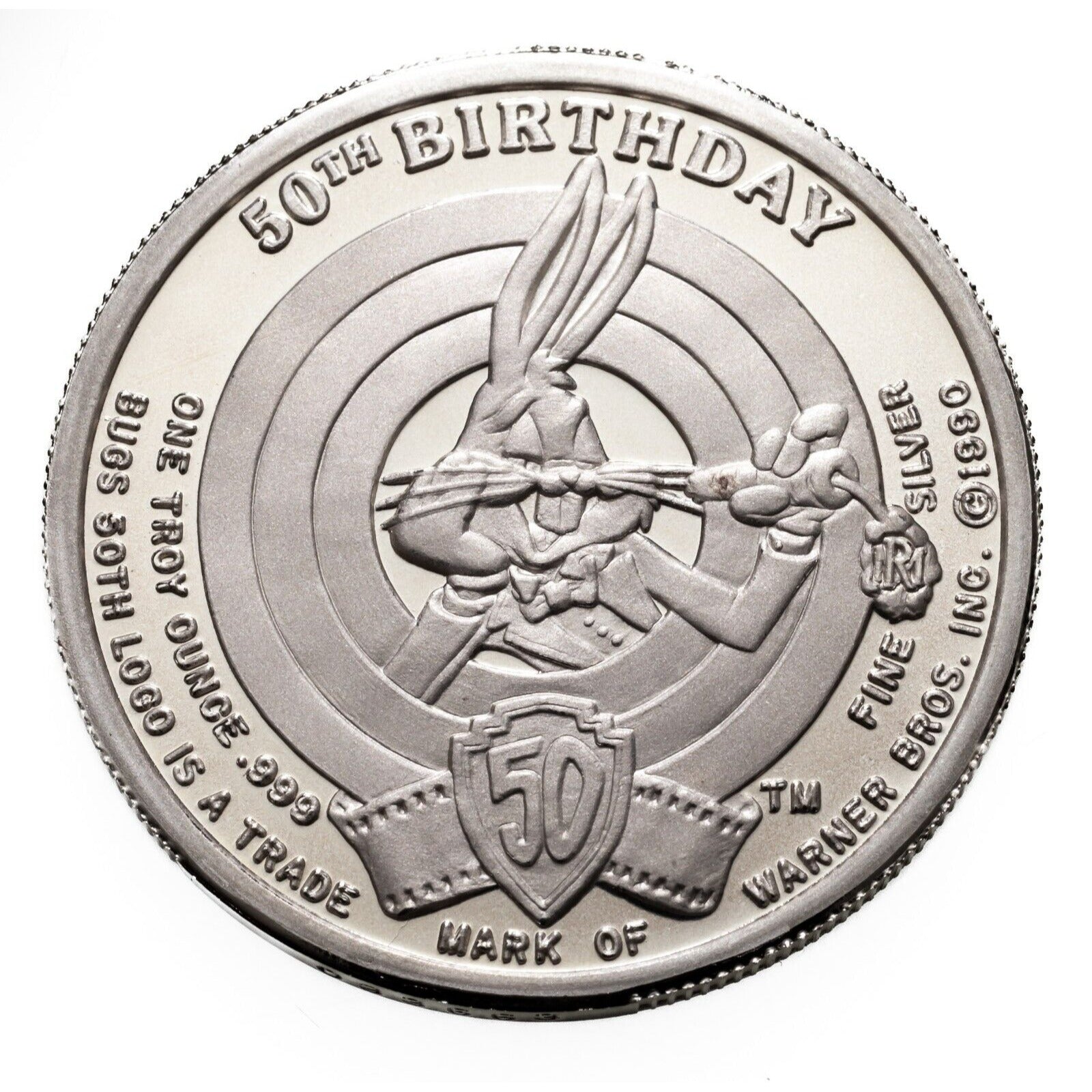 Warner Bros Bugs Bunny "What's Up Doc?" 50th Birthday 1 oz Silver Round w/ CoA