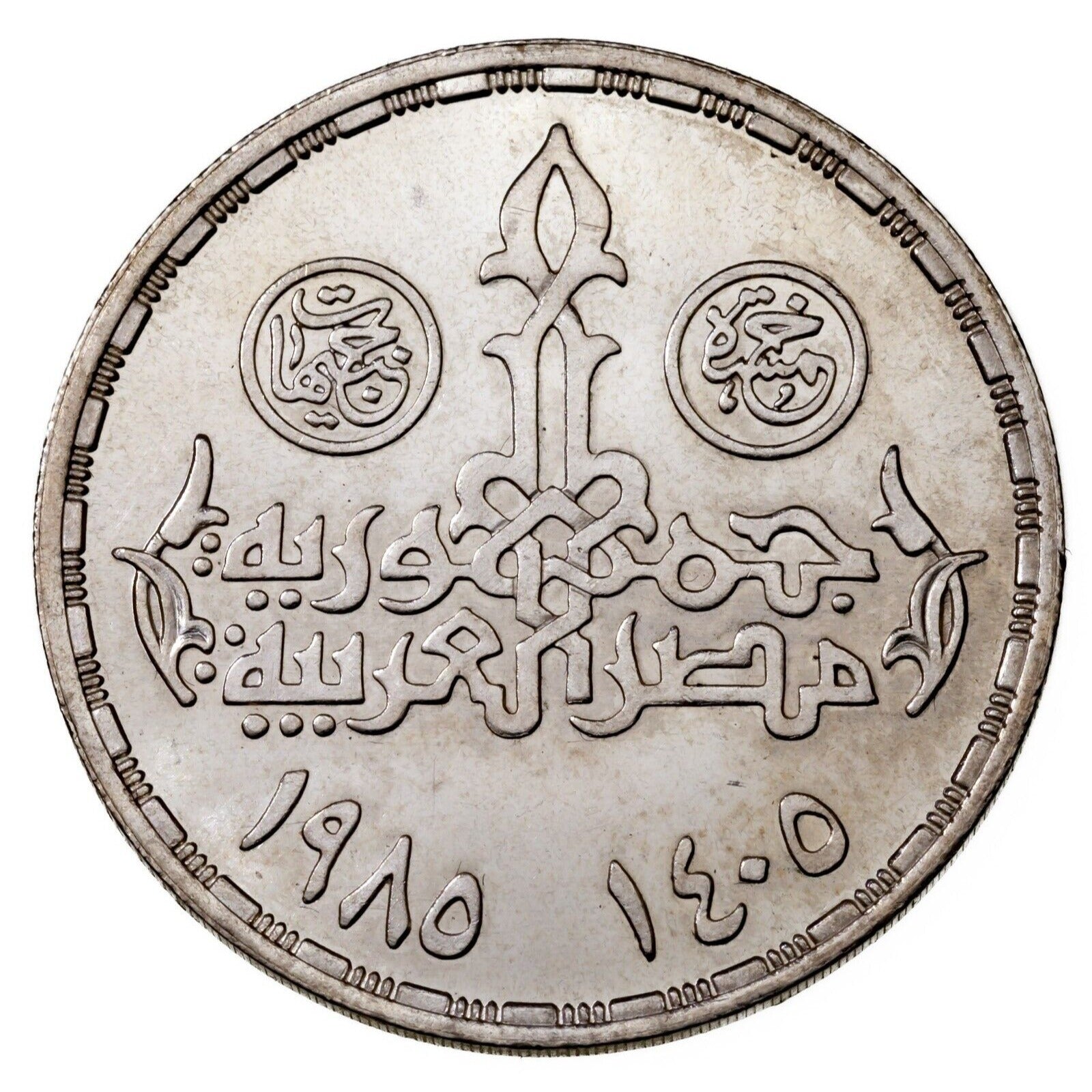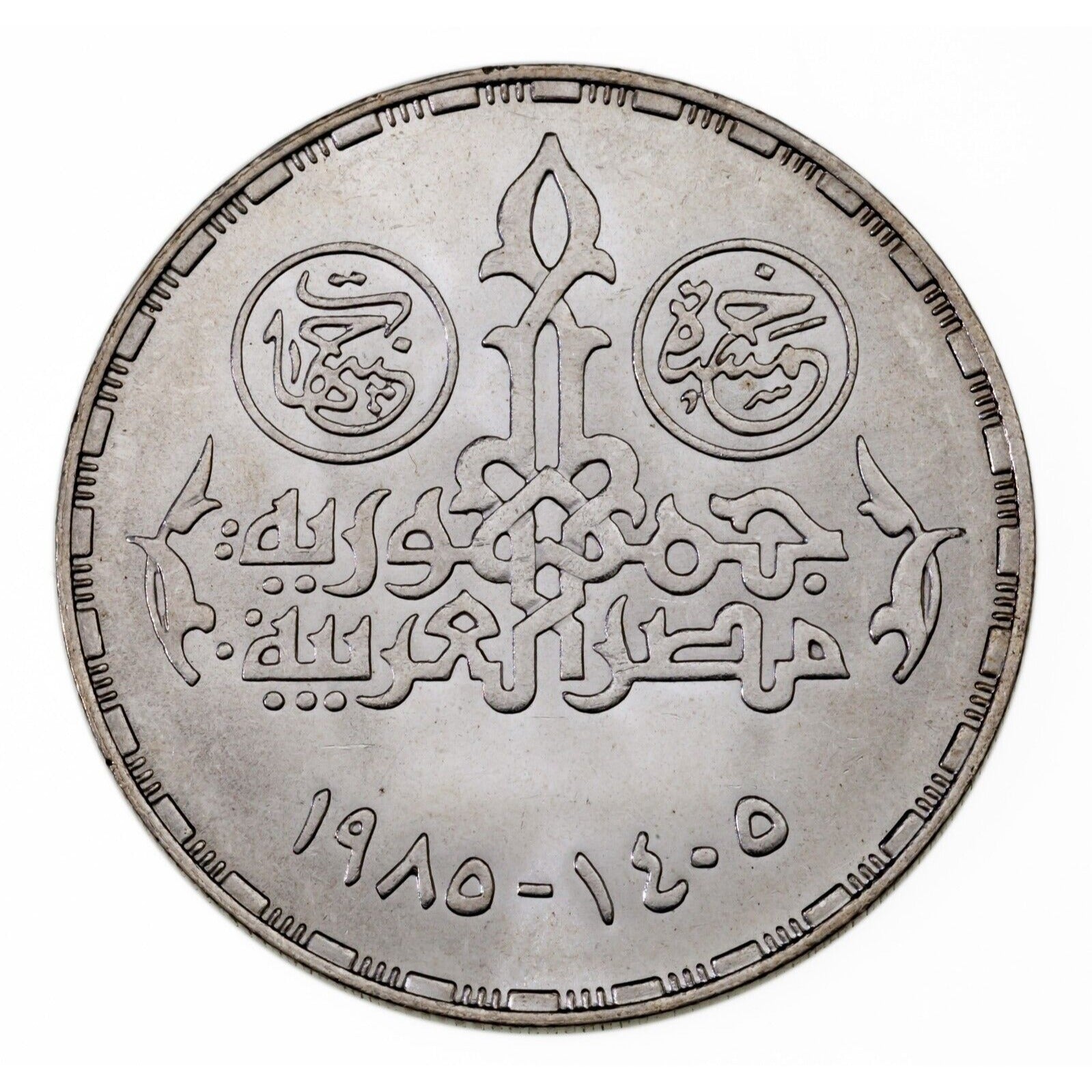1405-1985 Egypt 5 Pounds Silver coin in BU Condition, XV UIA Congress KM 593