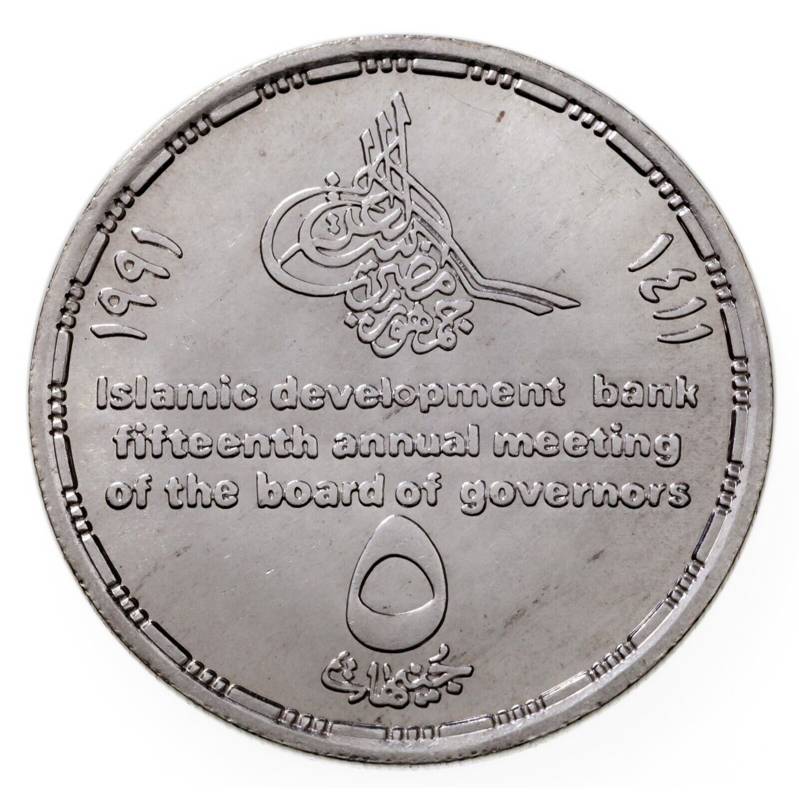 1411-1991 Egypt 5 Pounds Silver Coin in BU, Islamic Development Bank KM 692