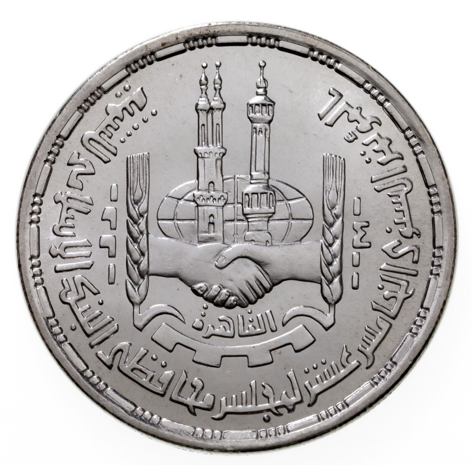 1410-1990 Egypt 5 Pounds Silver Coin in BU, Union of African Parliaments KM 689
