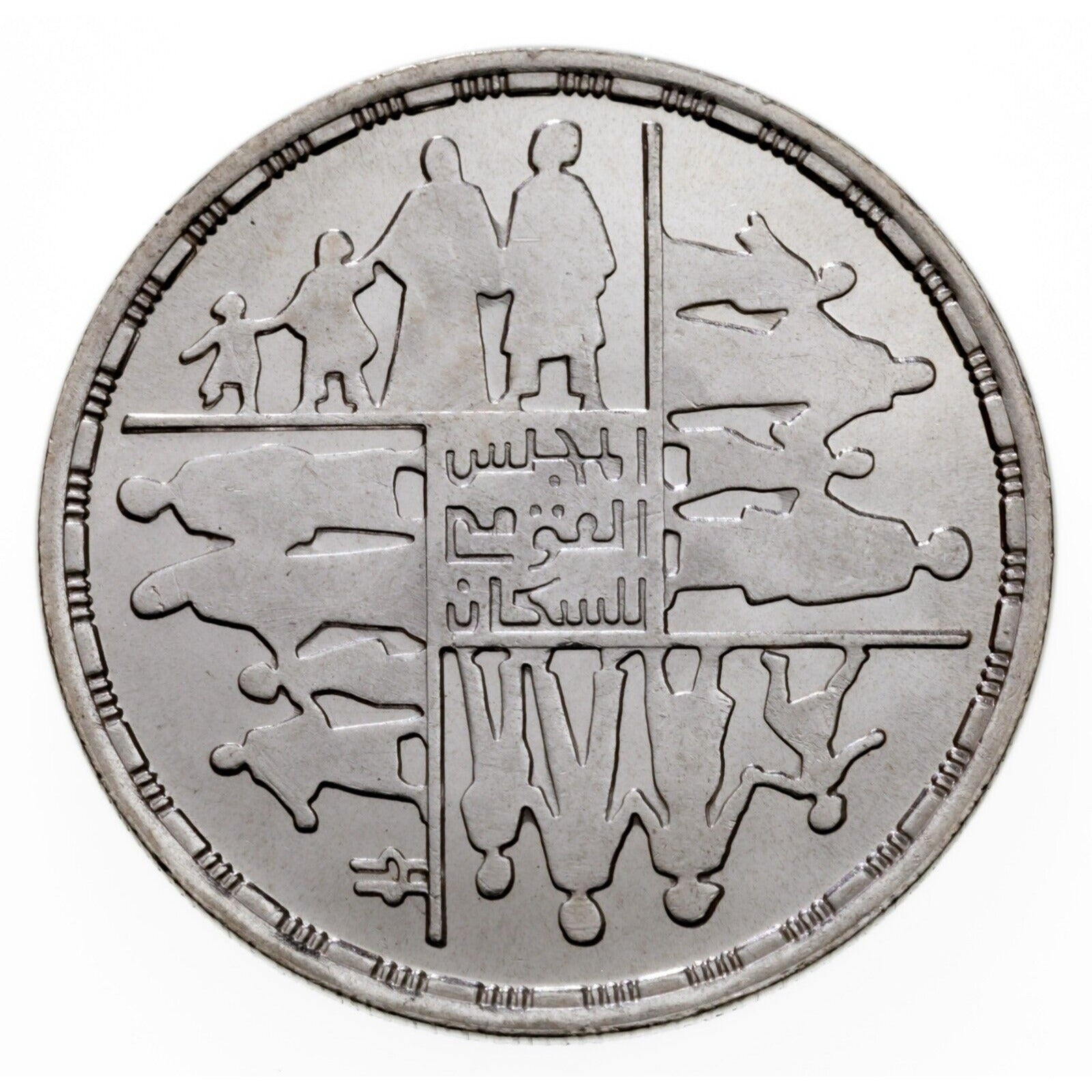 1410-1990 Egypt 5 Pounds Silver Coin in BU, National Population Center KM 688