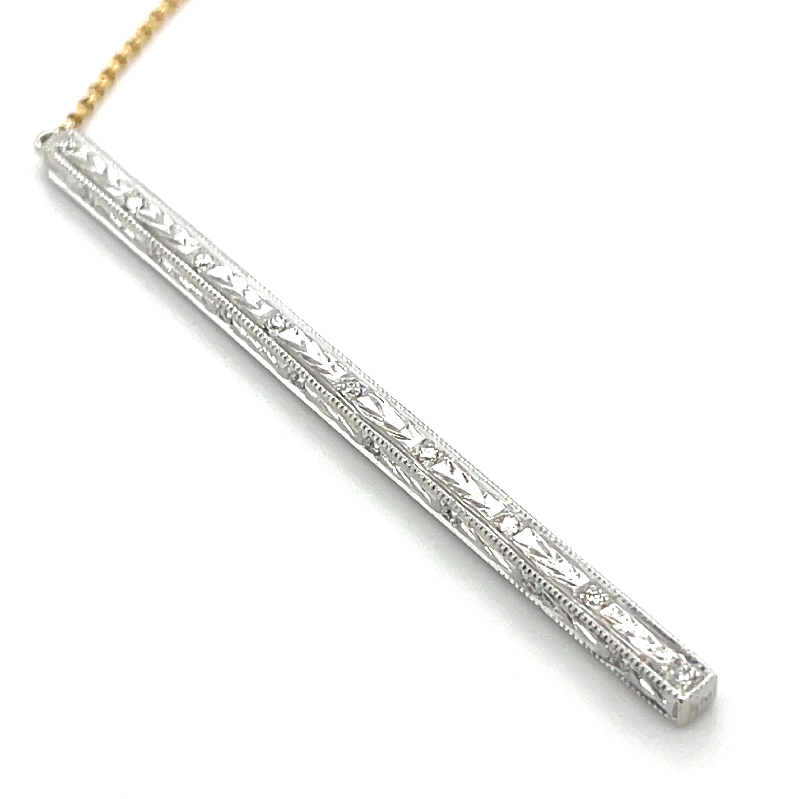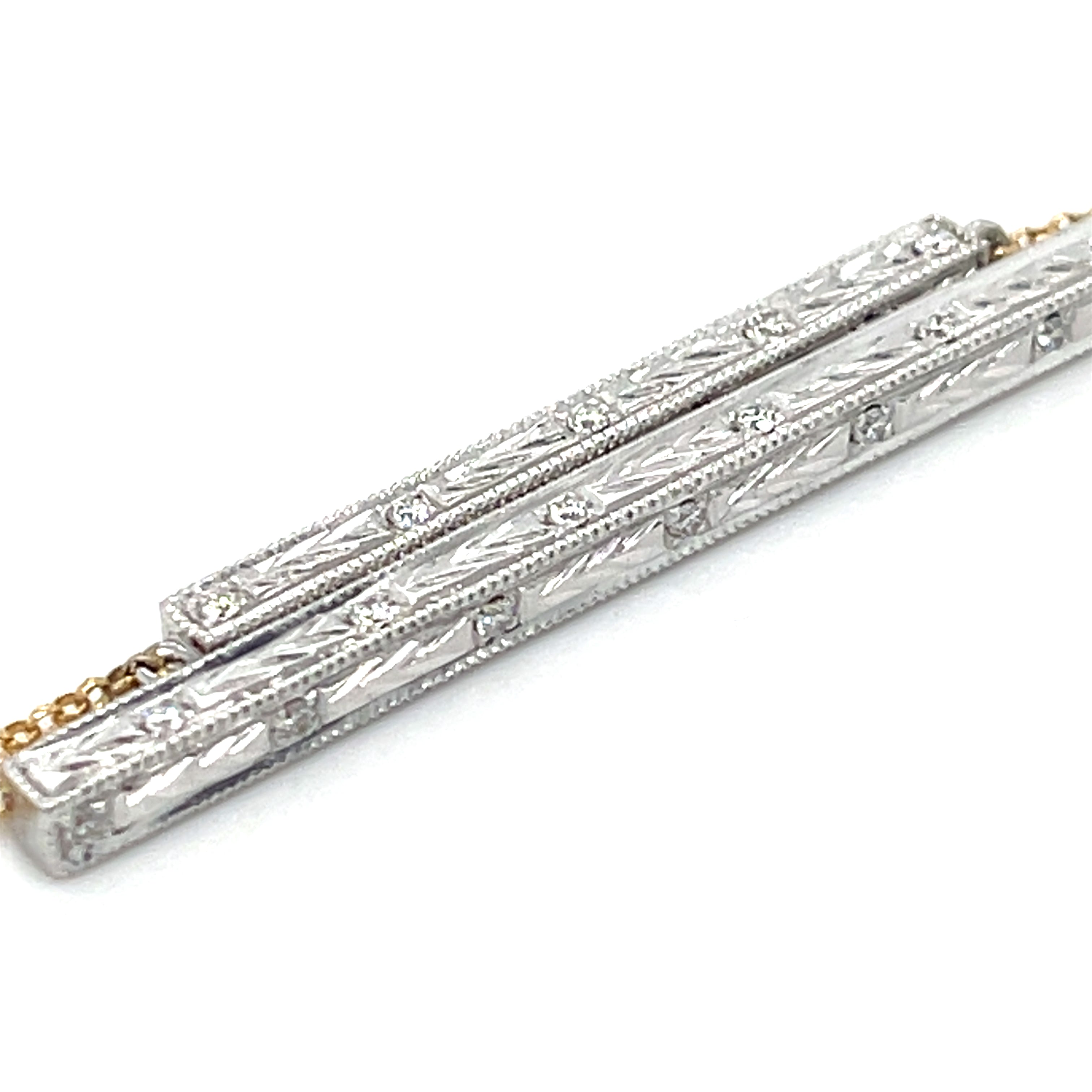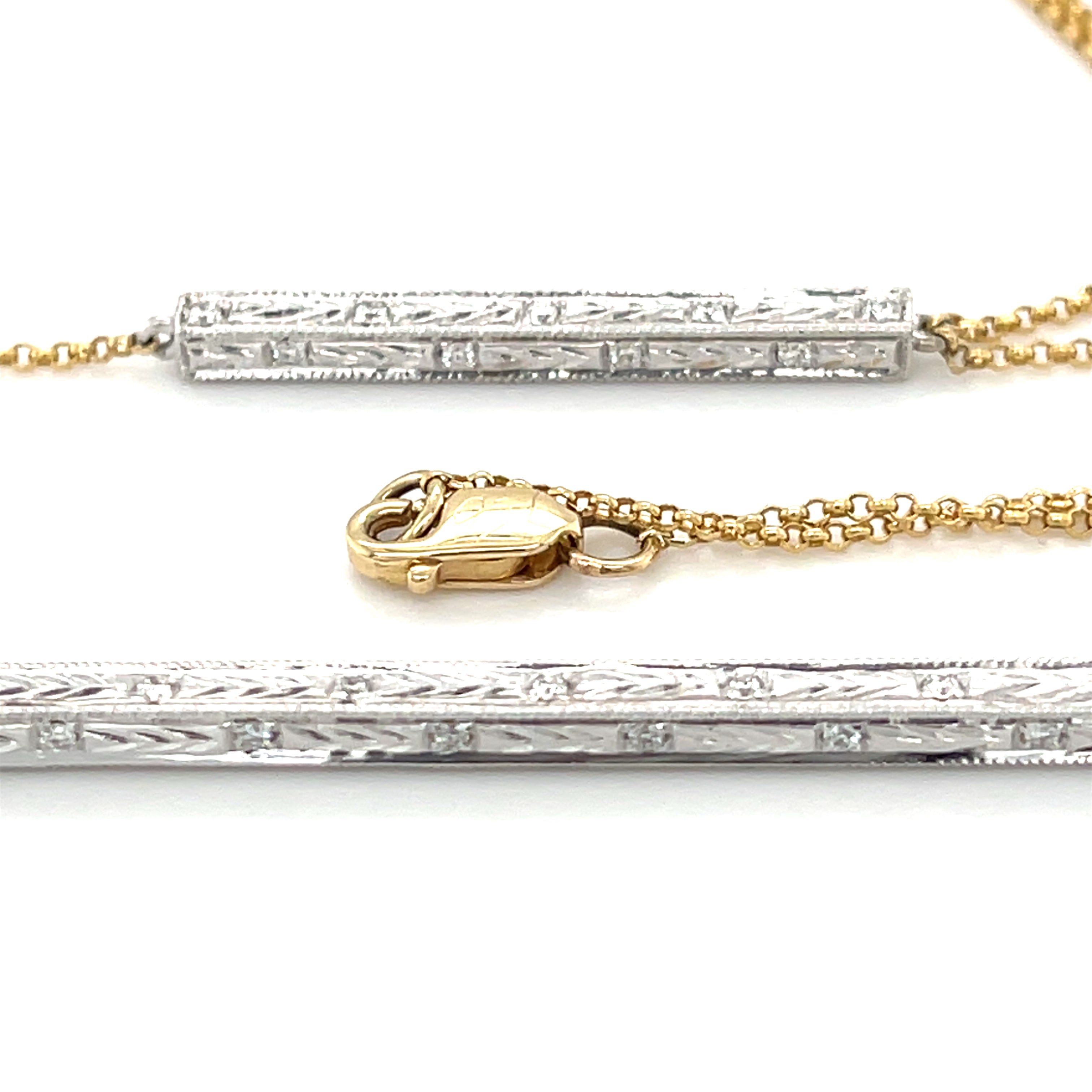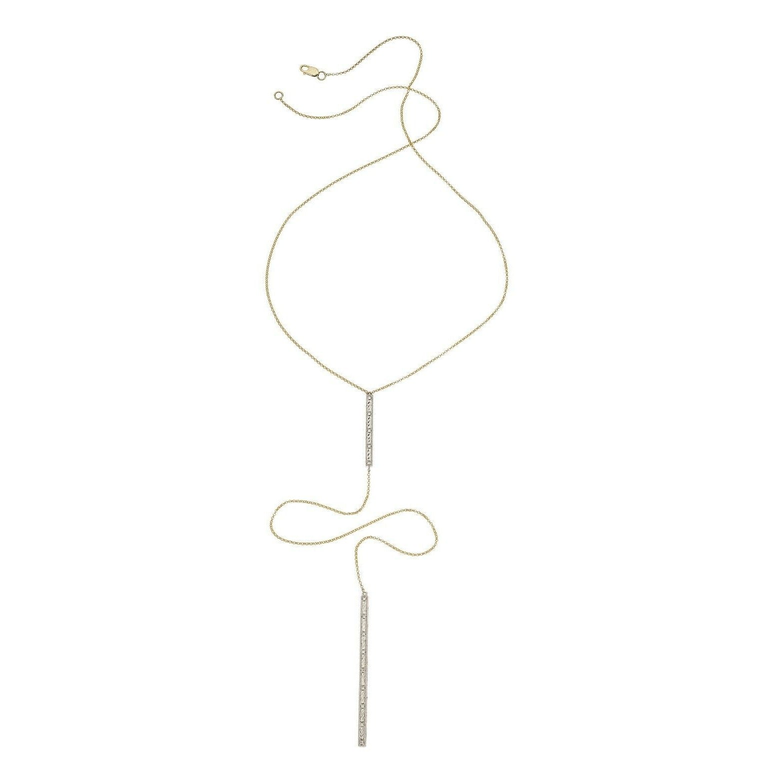 14k White and Yellow Gold Diamond Lariat Drop Necklace 17.5" Chain