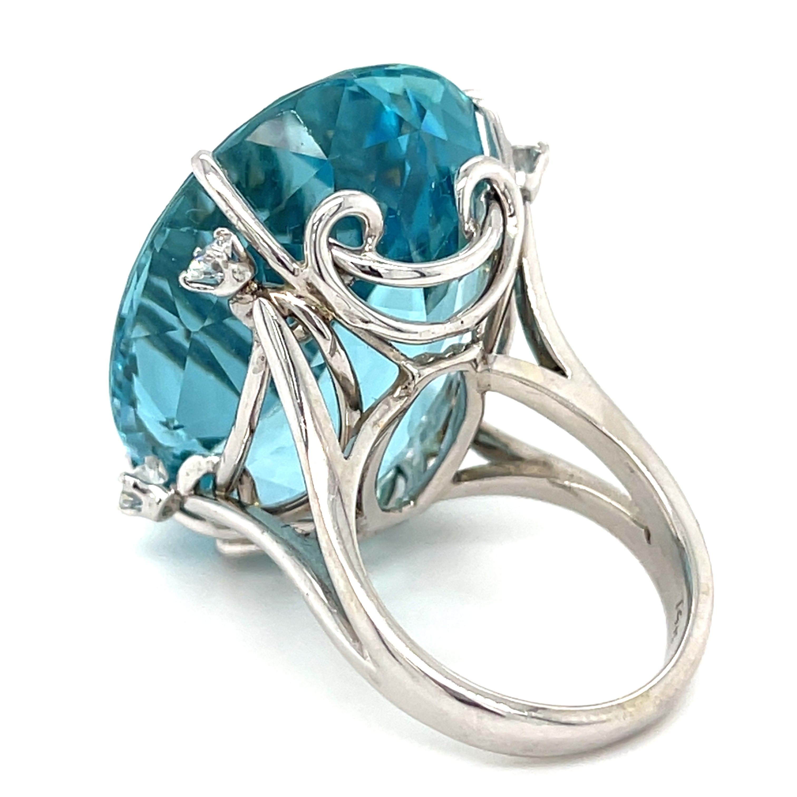 14k White Gold Oval 60.05 ct Aquamarine Ring w/ 0.55 ct Dia Accents Sz 6.5