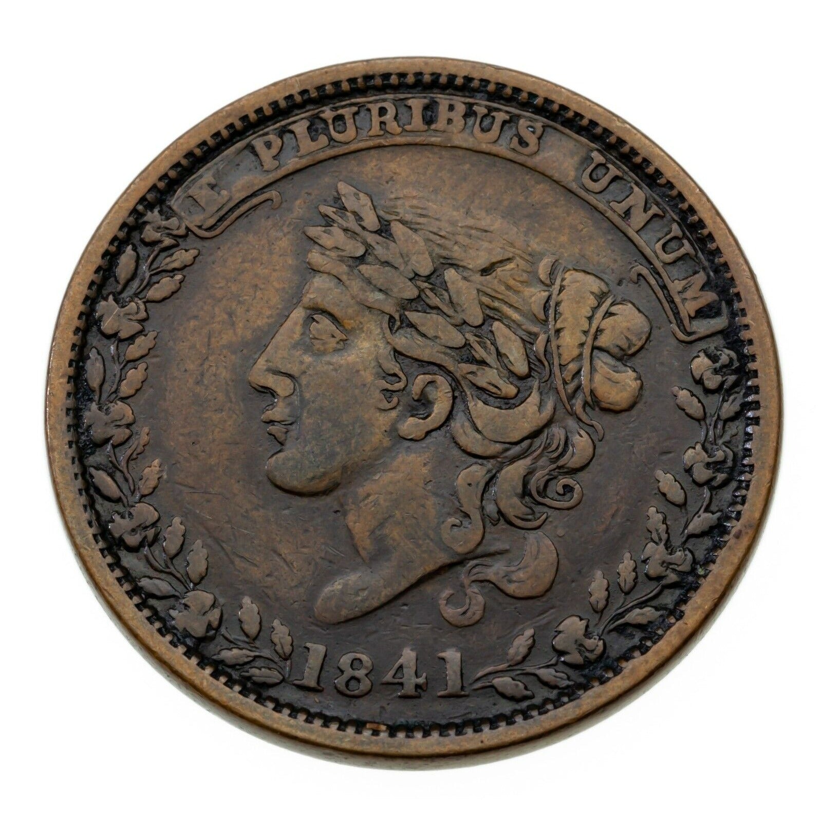 1841 Braided Hair Large Cent 1C Penny (Fine+, F+ Condition)