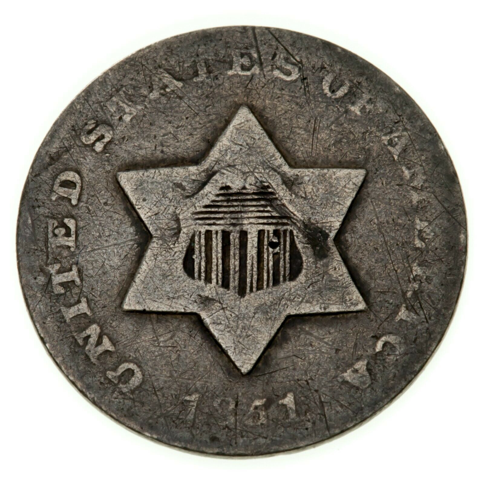 1851-O 3CS Three Cent Silver in About Good AG Condition, Natural Color