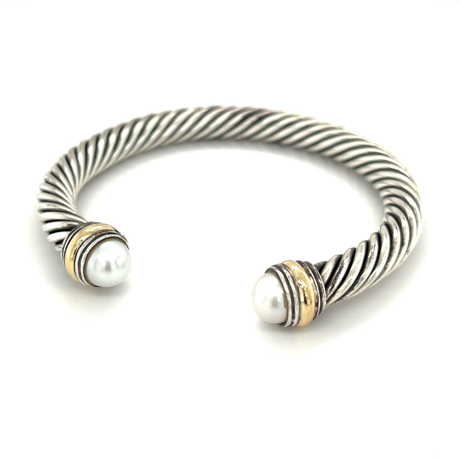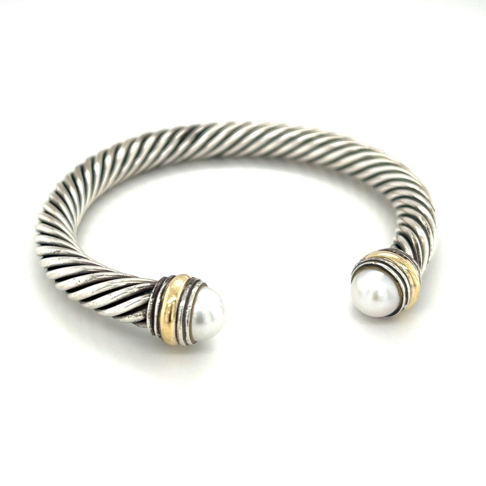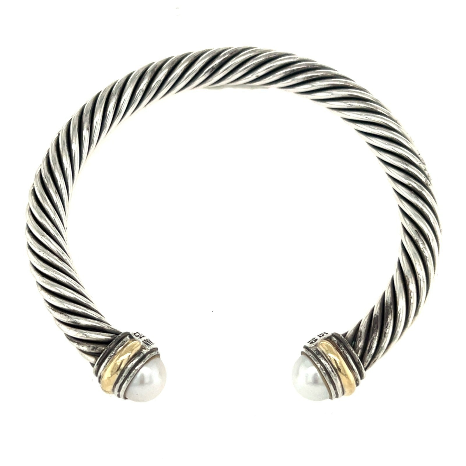 Charriol 18k White Gold and Steel Cable Twist Bracelet w/ 0.10 Ct Diamond Accent