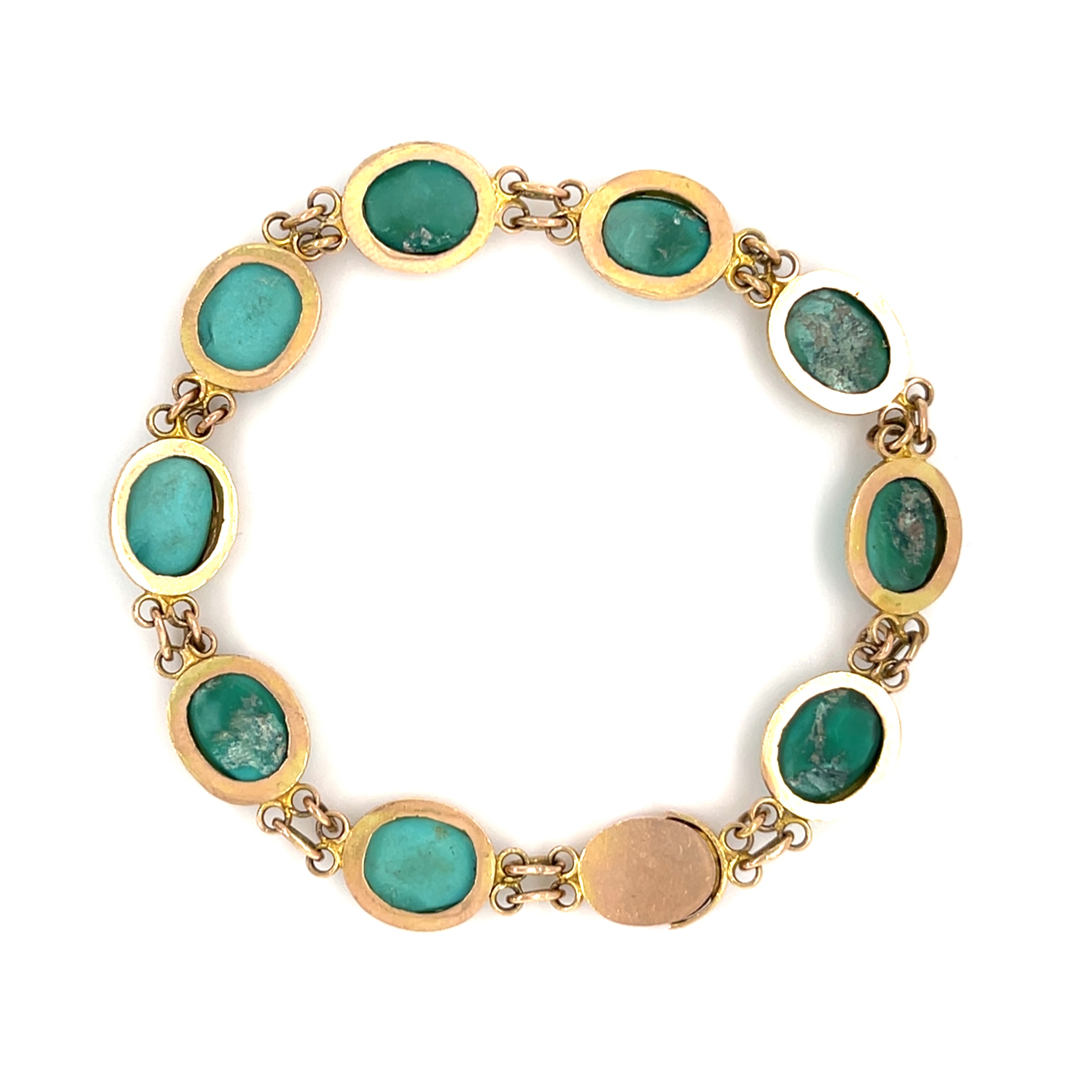 10k Yellow Gold & Turquoise Cabochon Bracelet, Size 7.