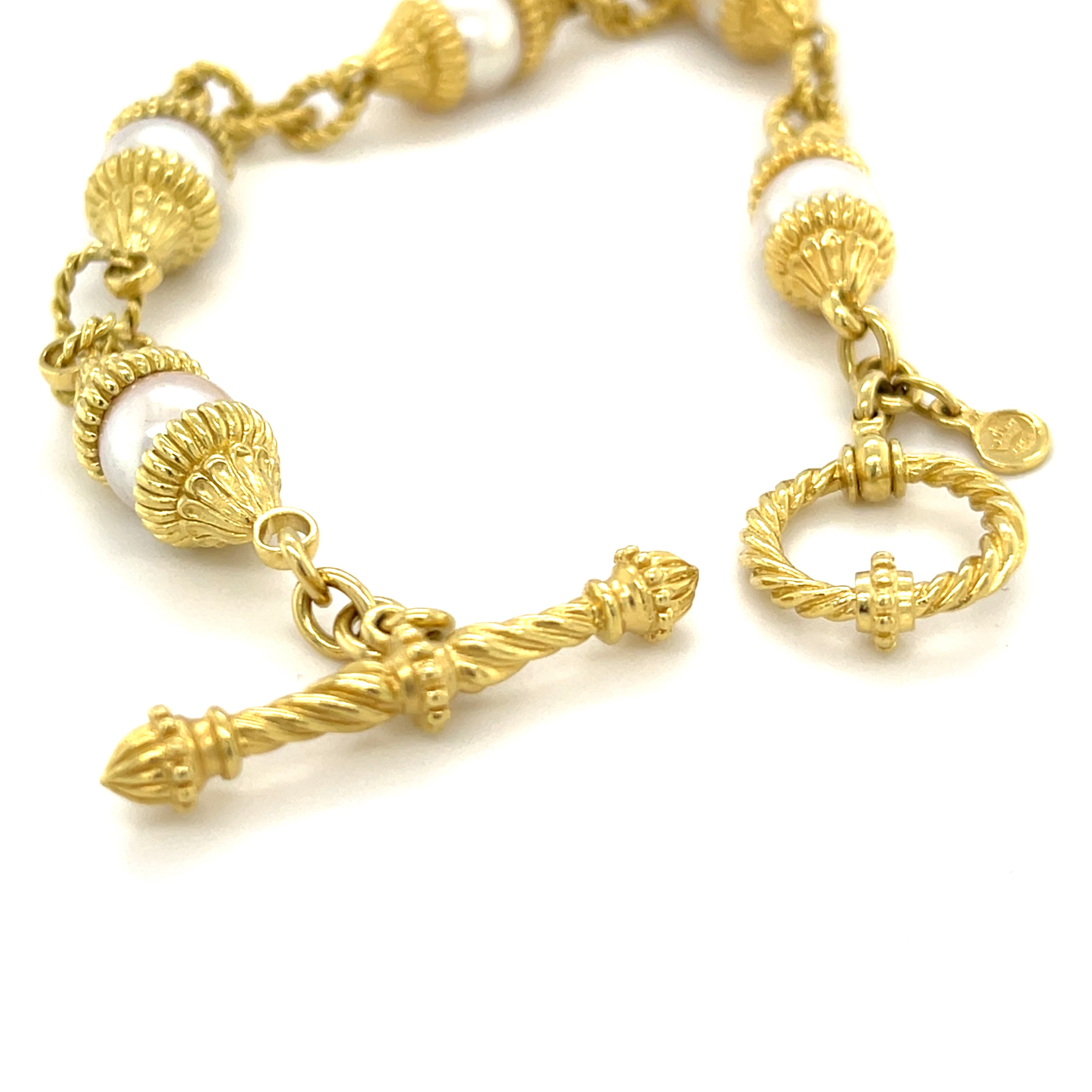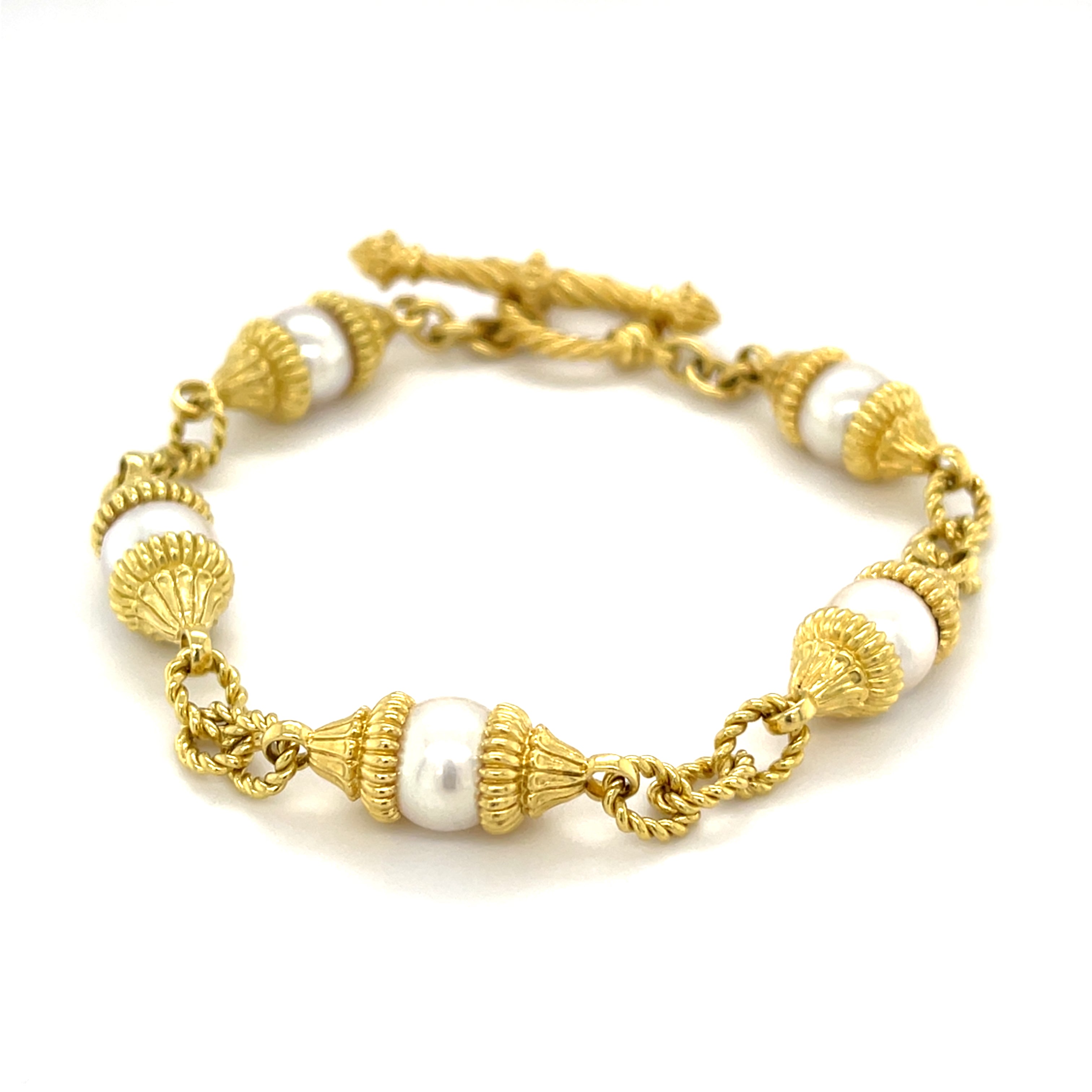 Cynthia Bach 18K Gold and Cultured Akoya Pearl Bracelet 8.75 inch Length 32.6 grams