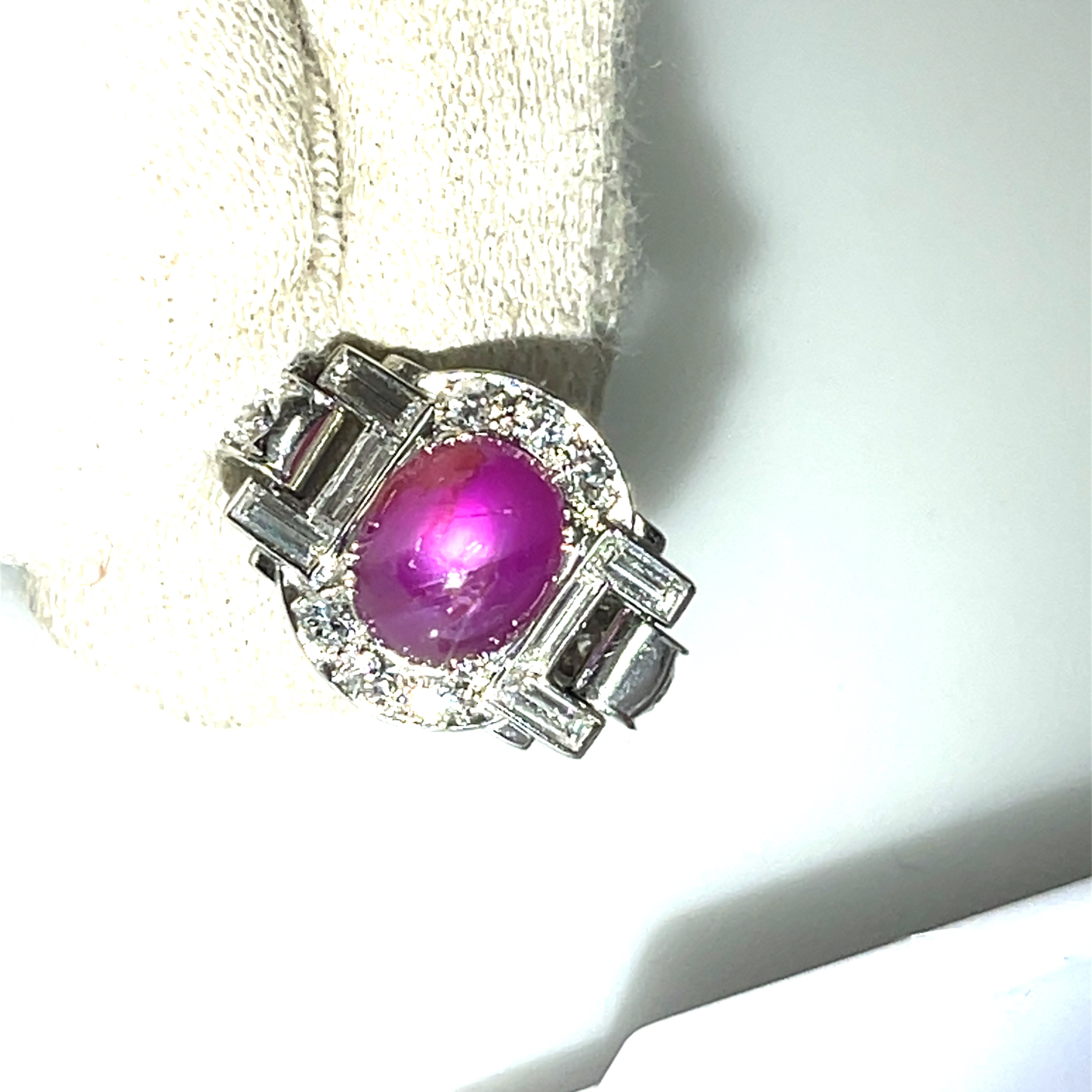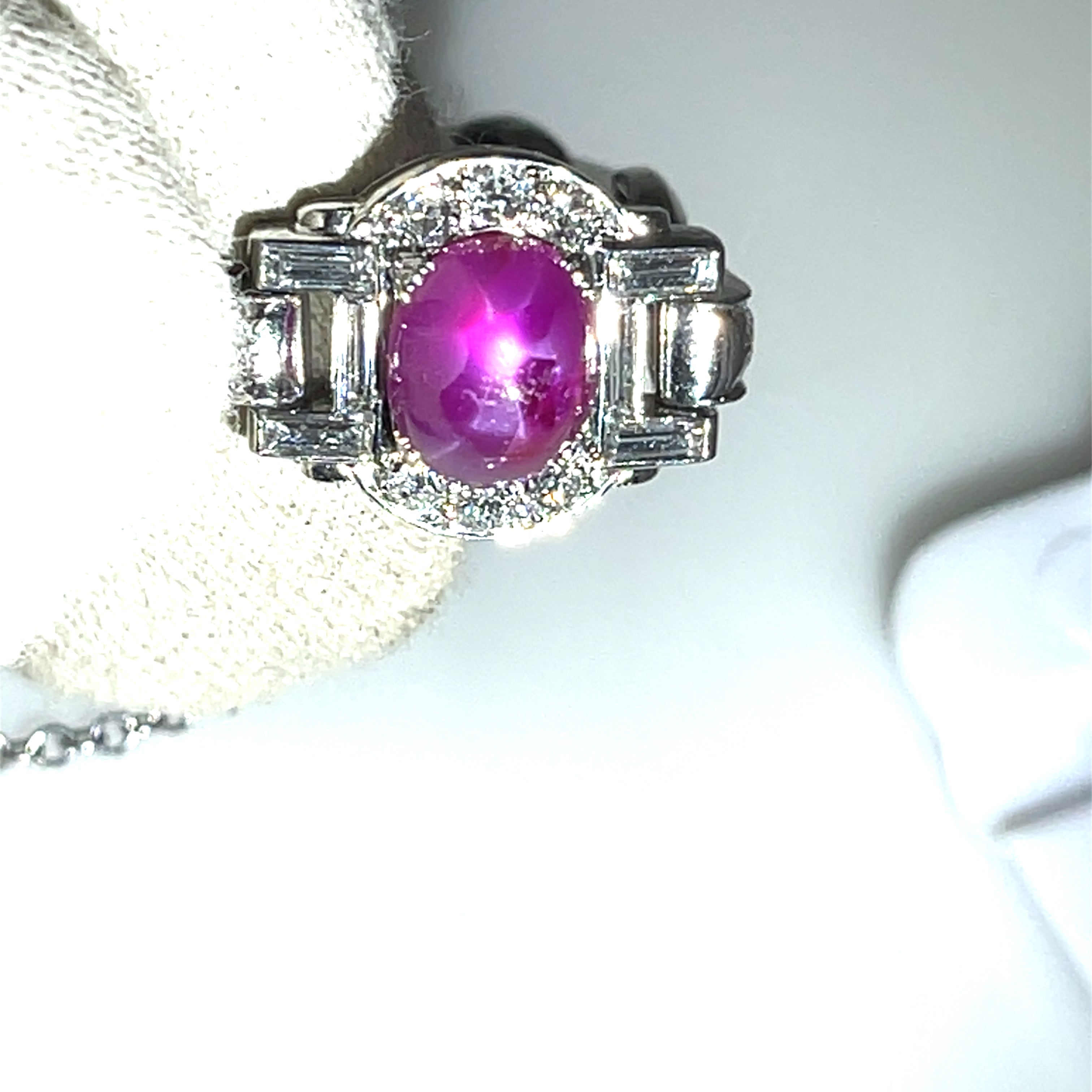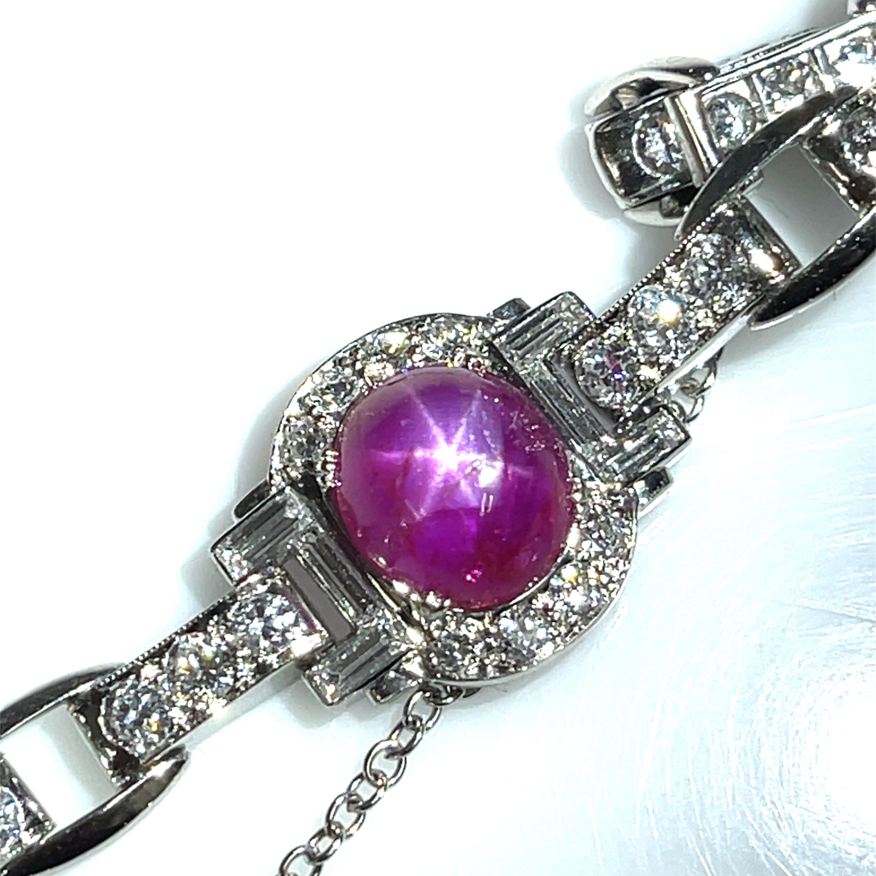 16.00 carat Star Ruby and Diamond 18k White Gold Bracelet 6.5 inches