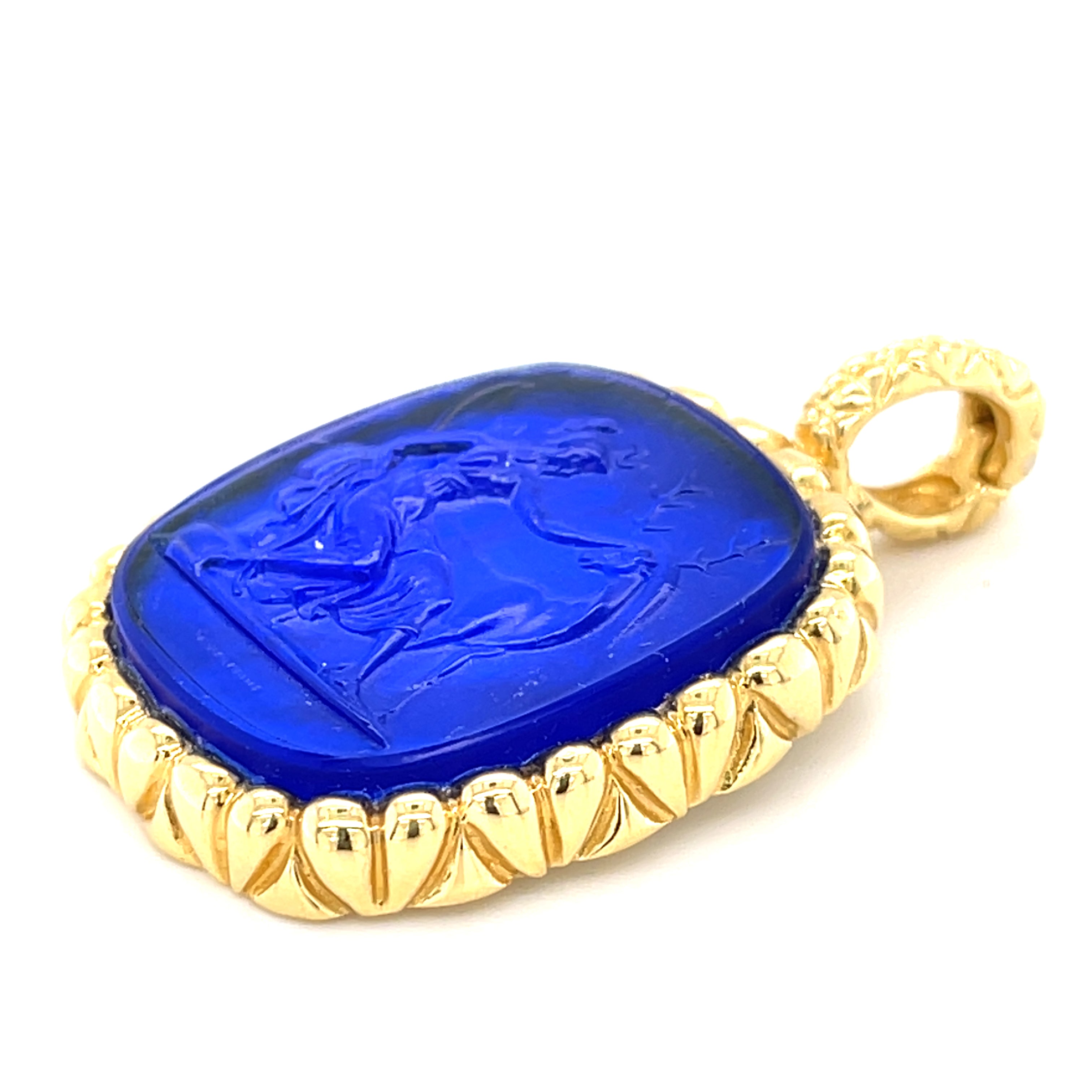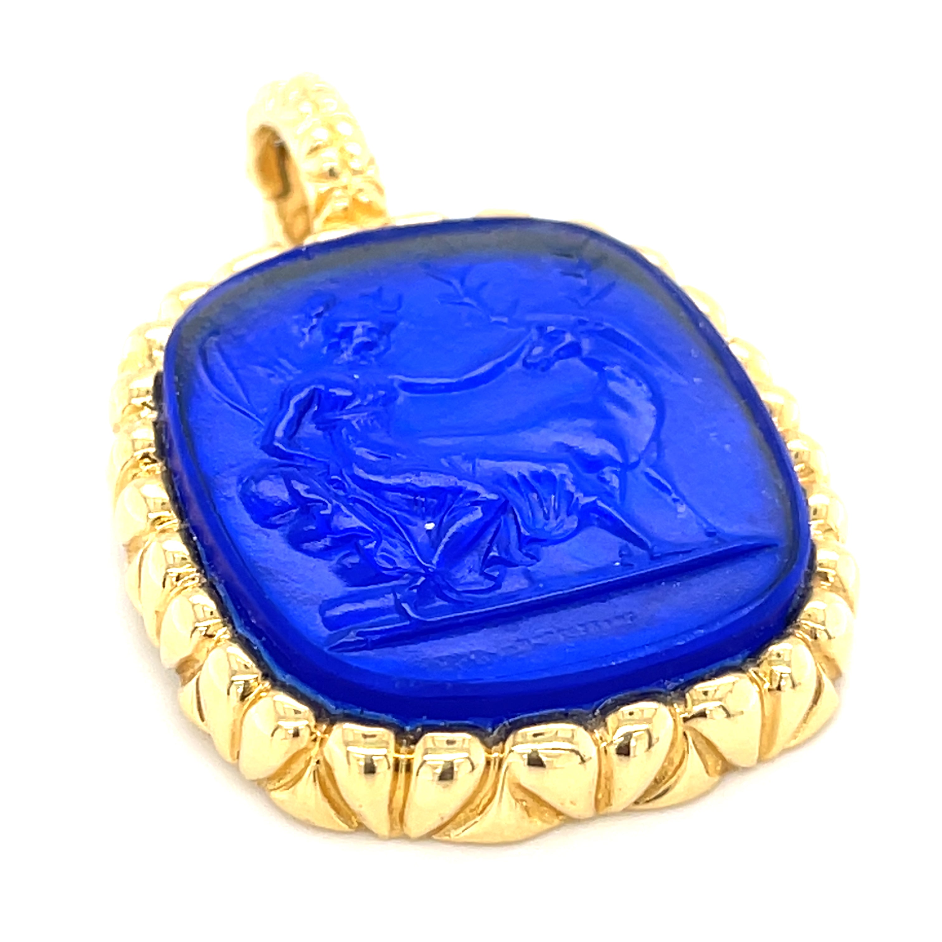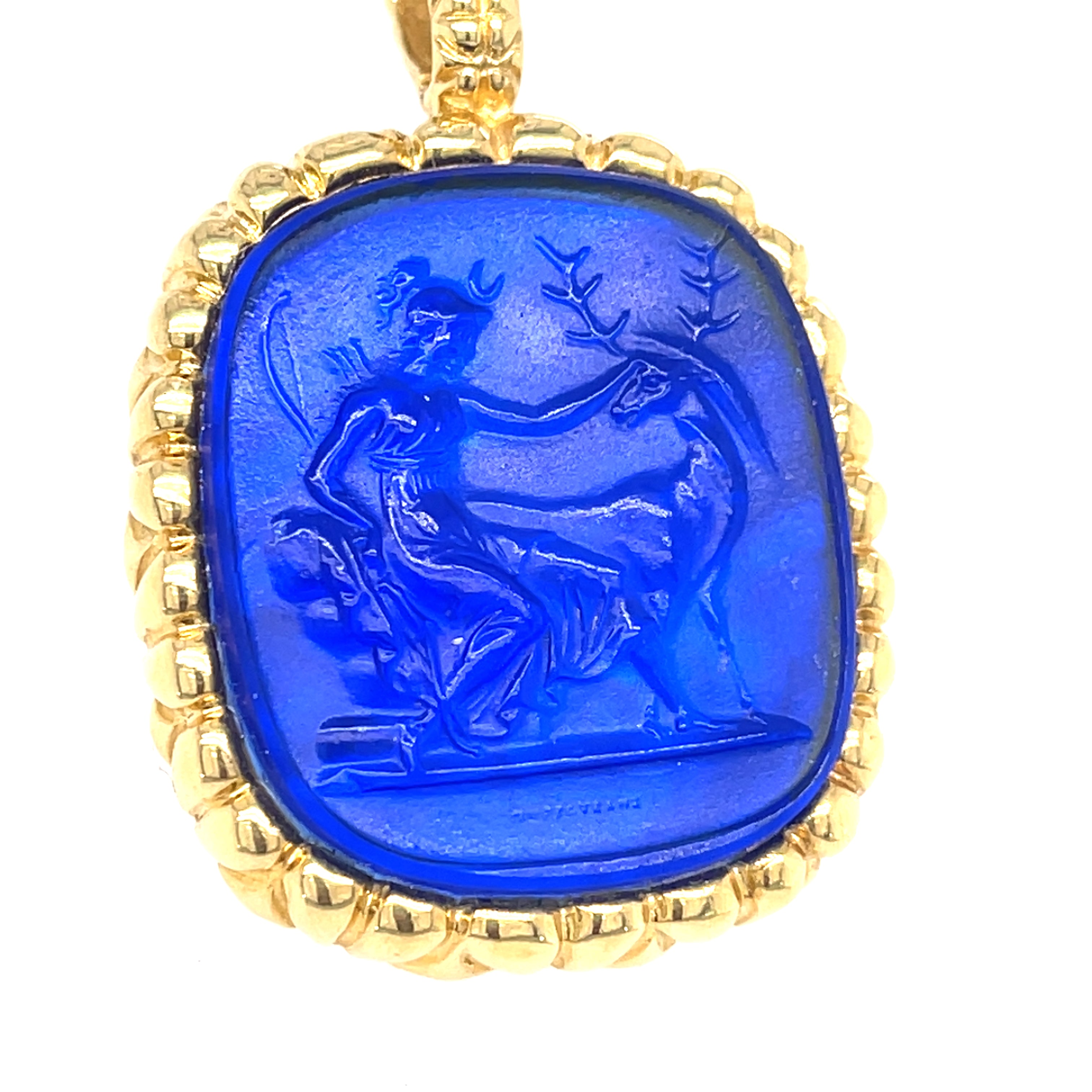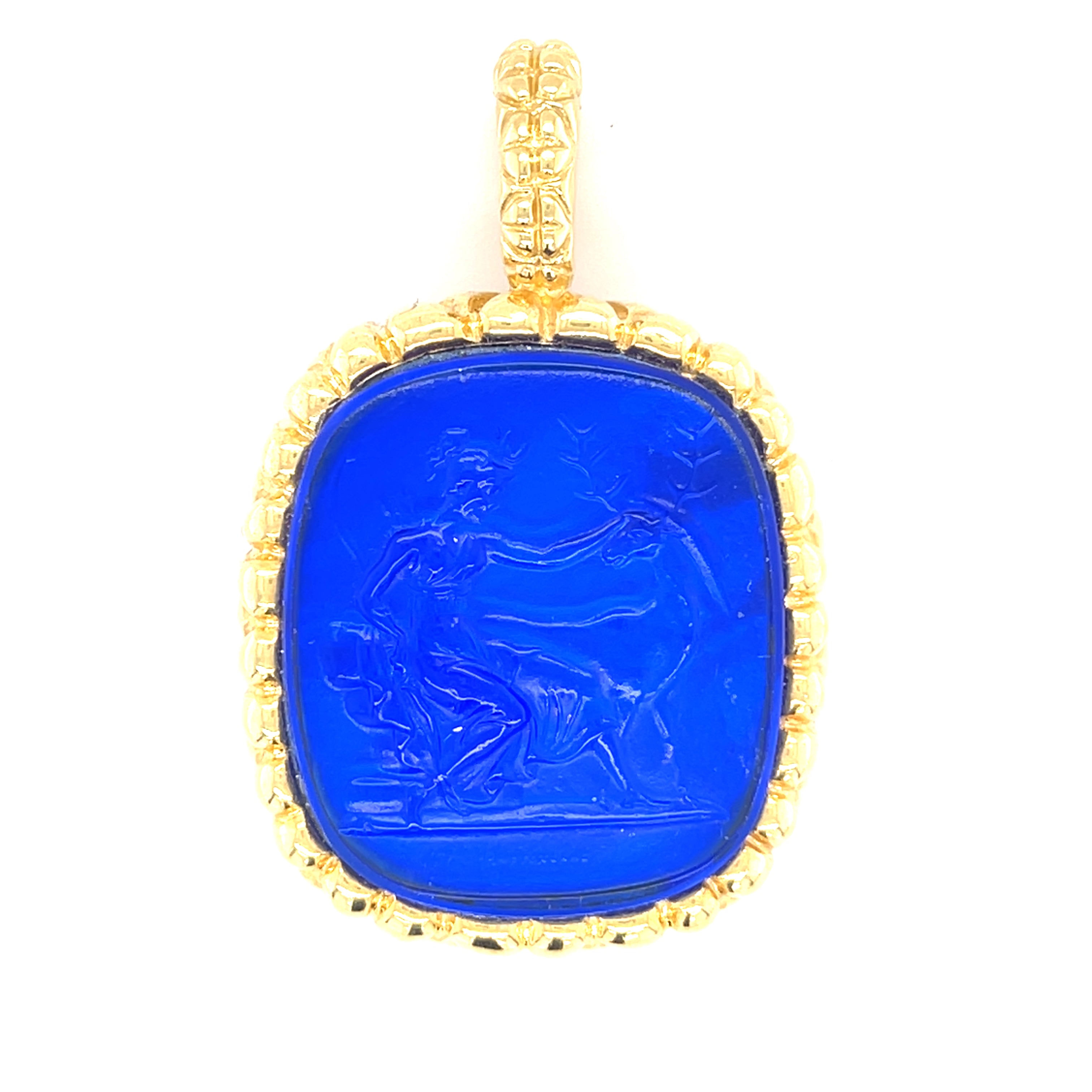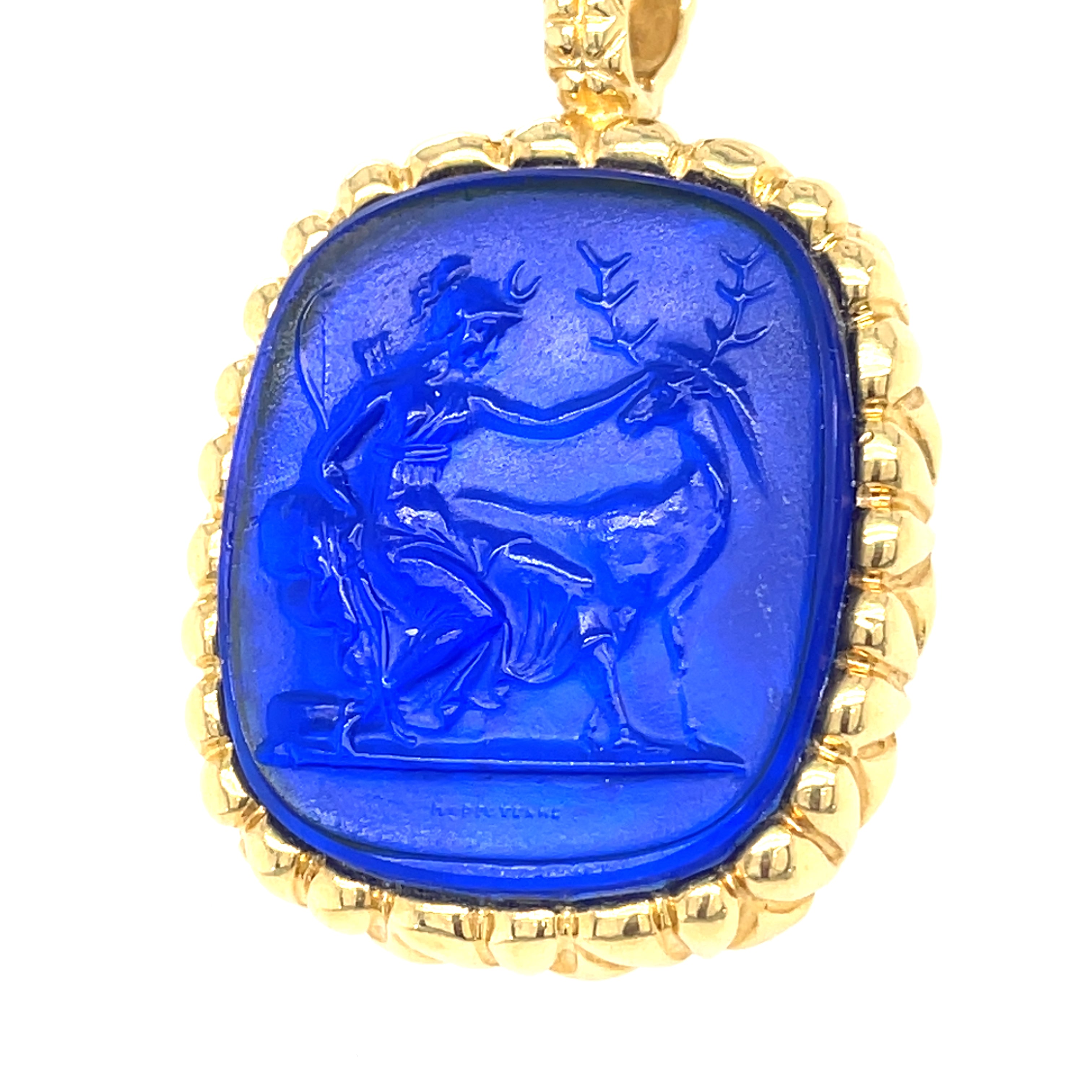 D'amati Glass Intaglio "Diana and the Deer" Pendant w/ 18k Gold & Mother-of-Pearl