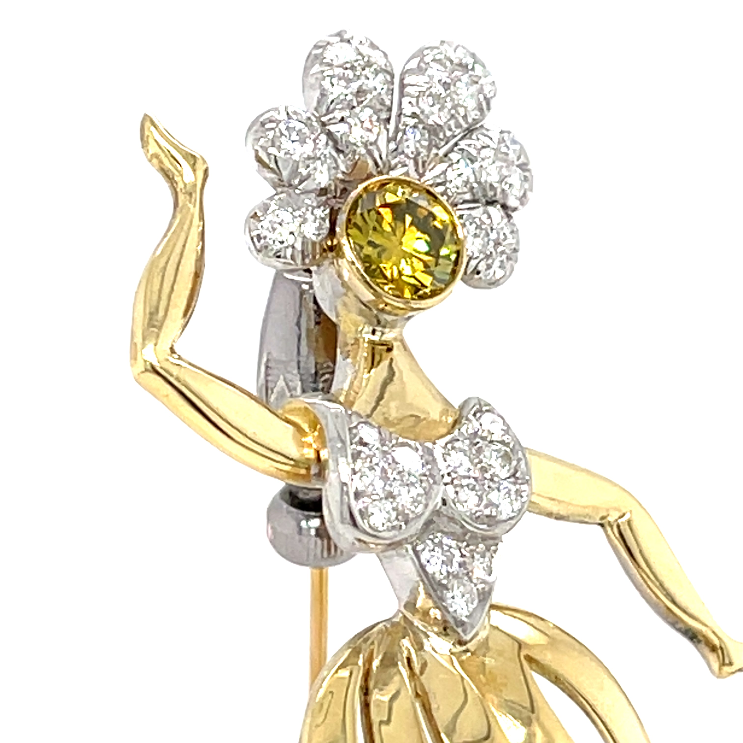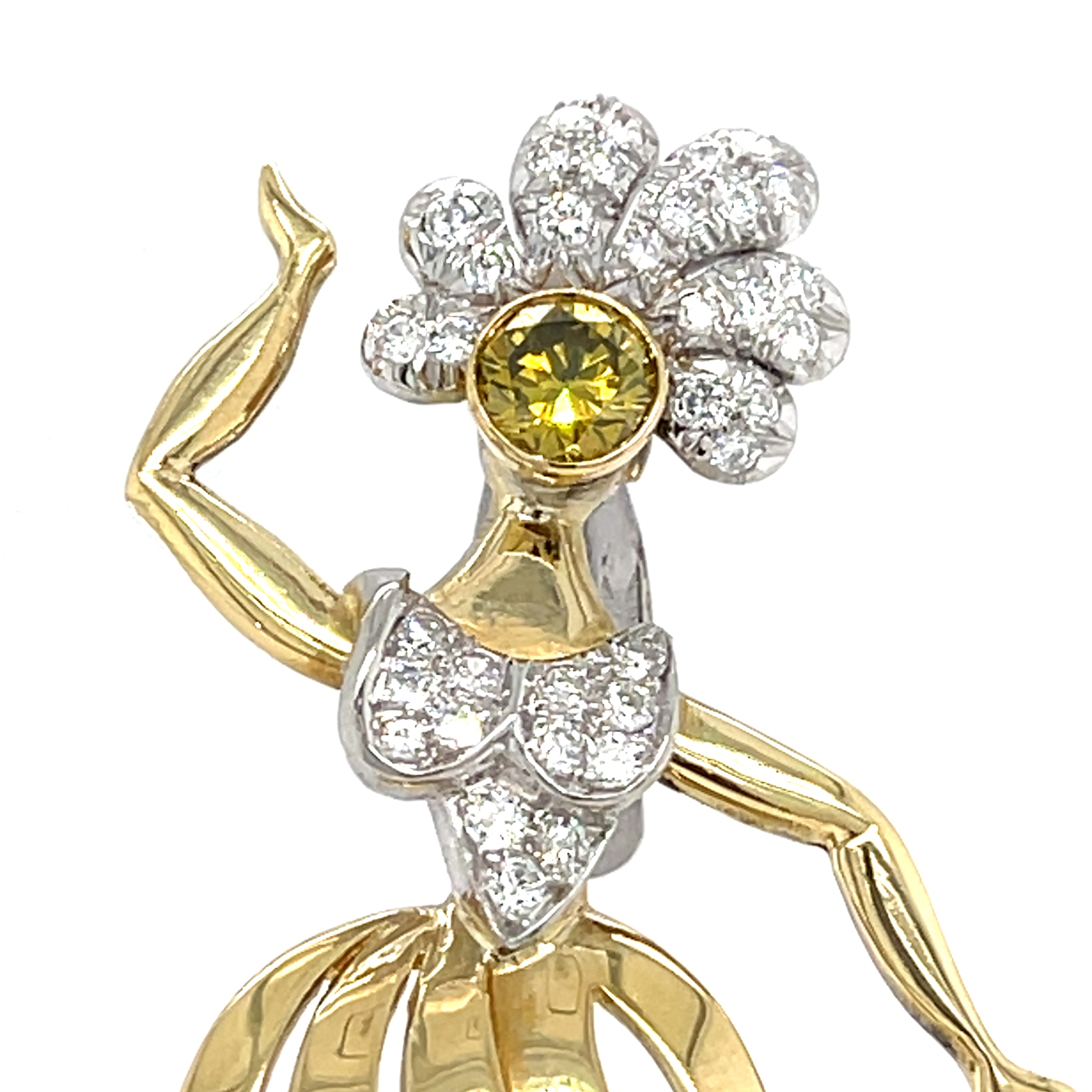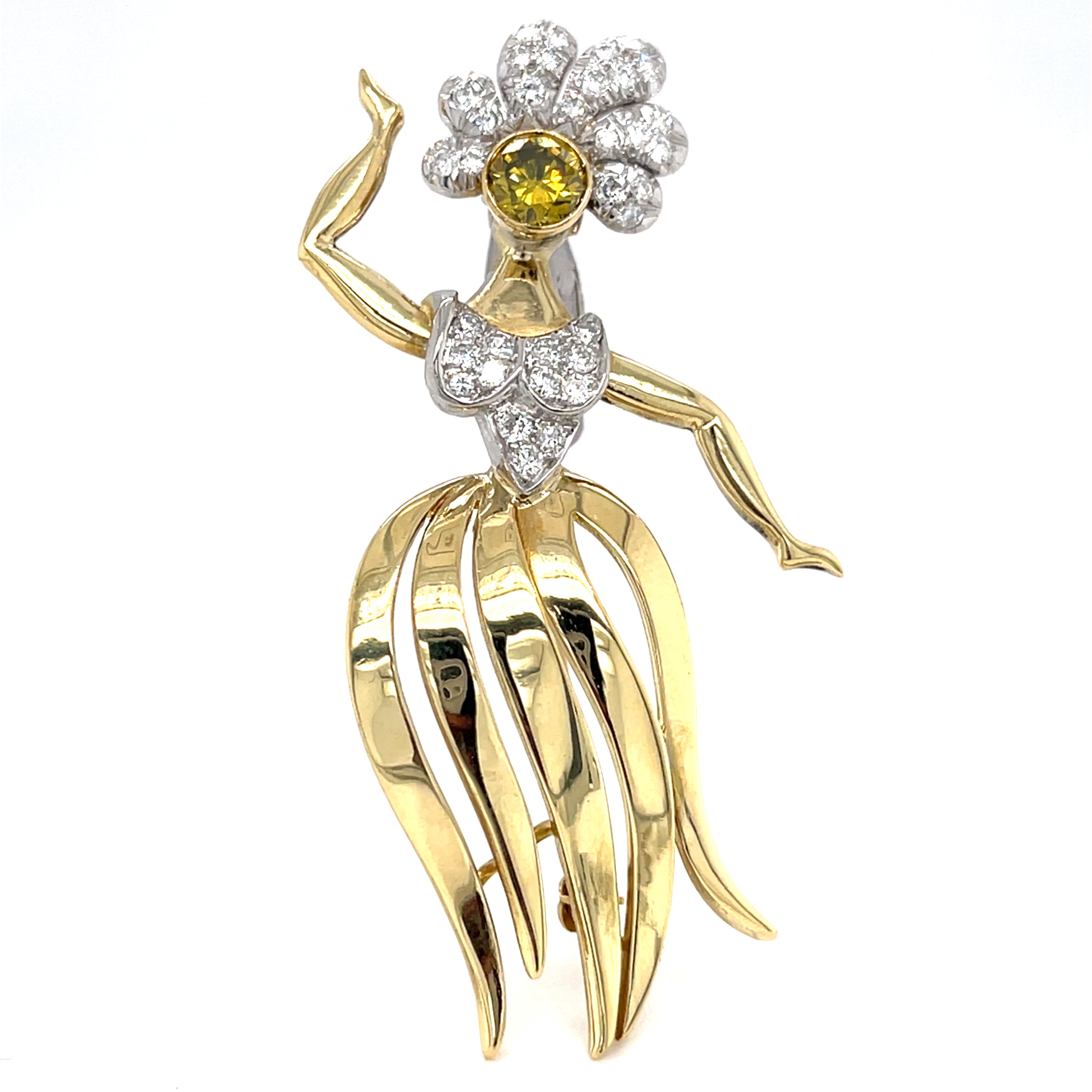 Vintage 18k Two-Tone Gold & Diamonds Hula Dancer Brooch