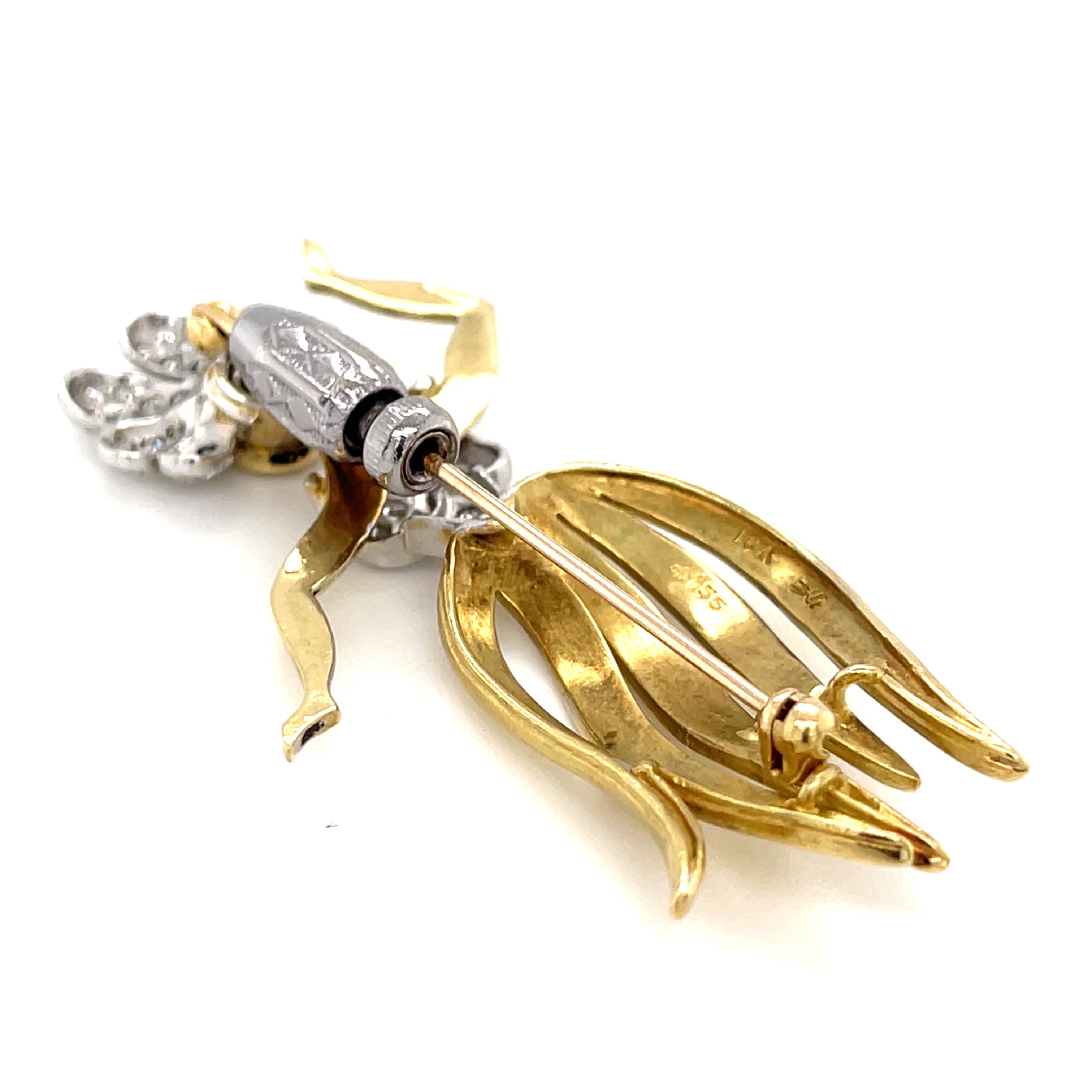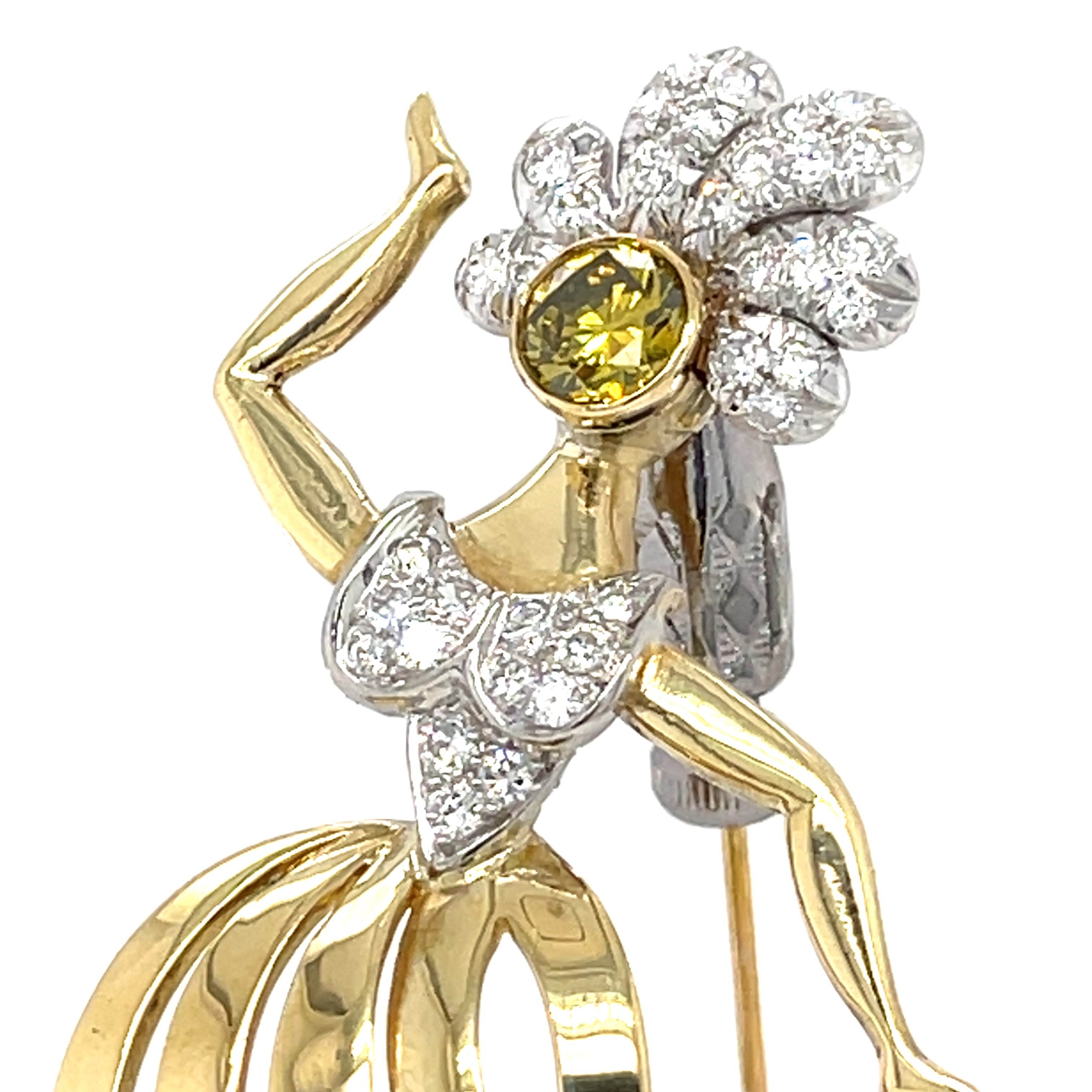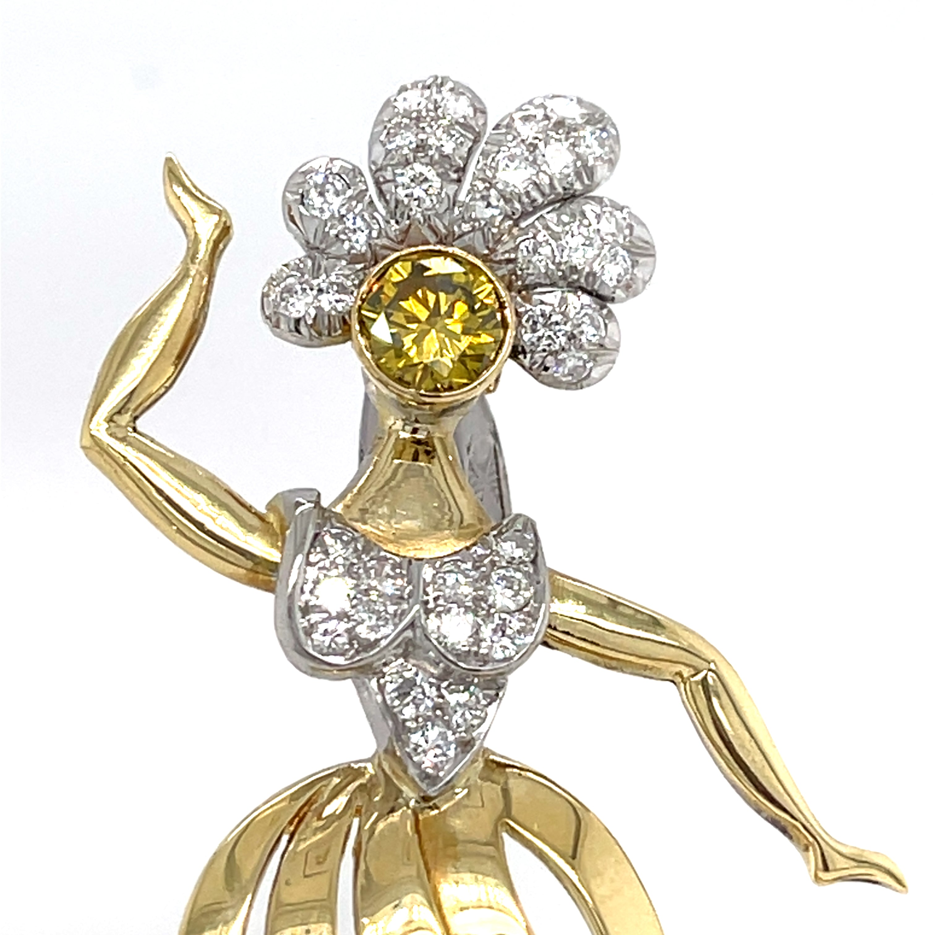 Vintage 18k Two-Tone Gold & Diamonds Hula Dancer Brooch