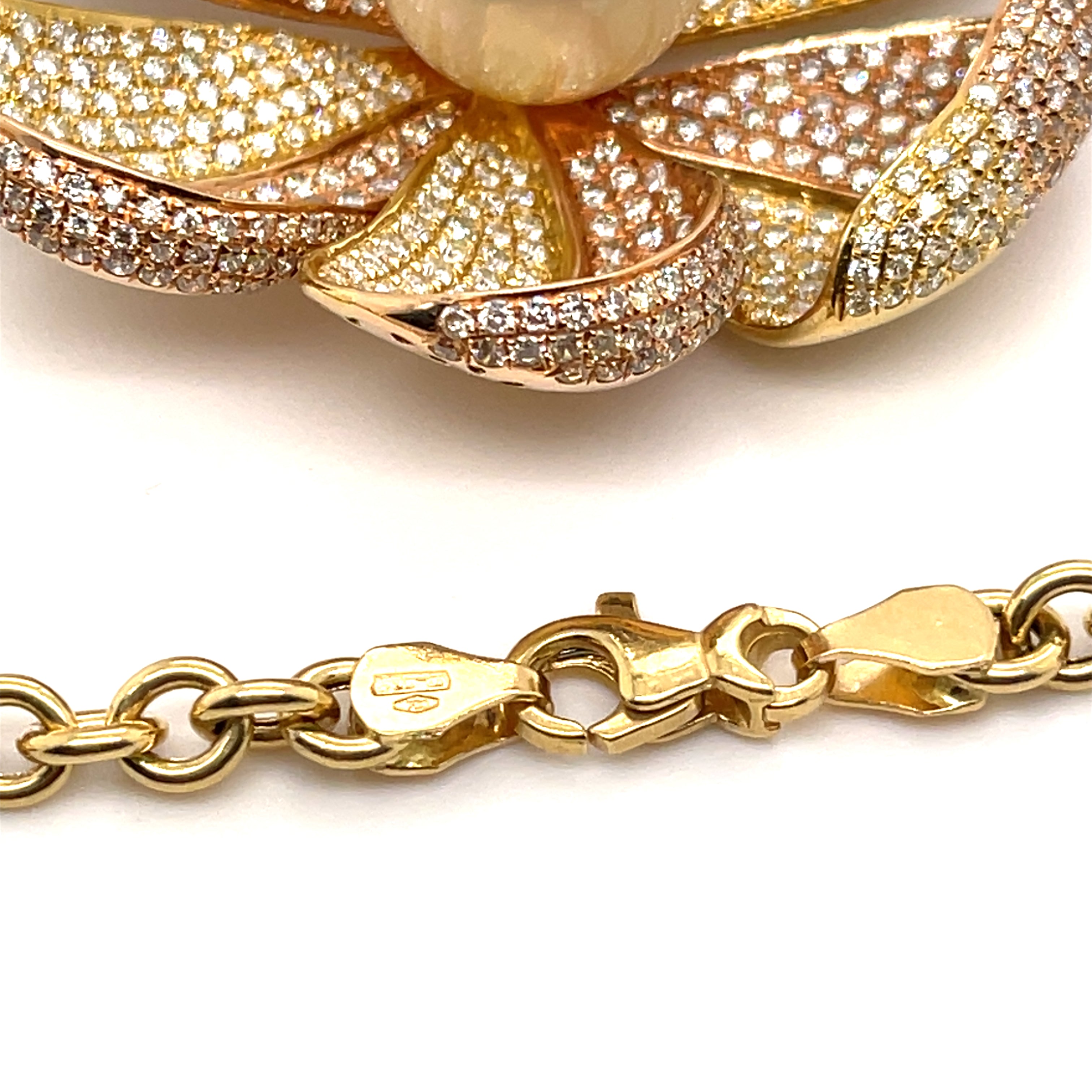 Hasbani Gioielli 18K Gold & Pearl Flower Pendant Necklace w/ 9ct Diamonds, Length 23"