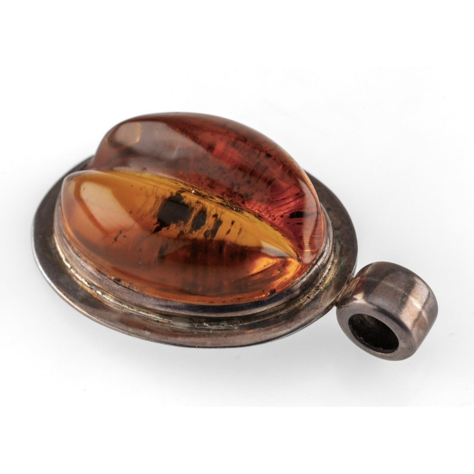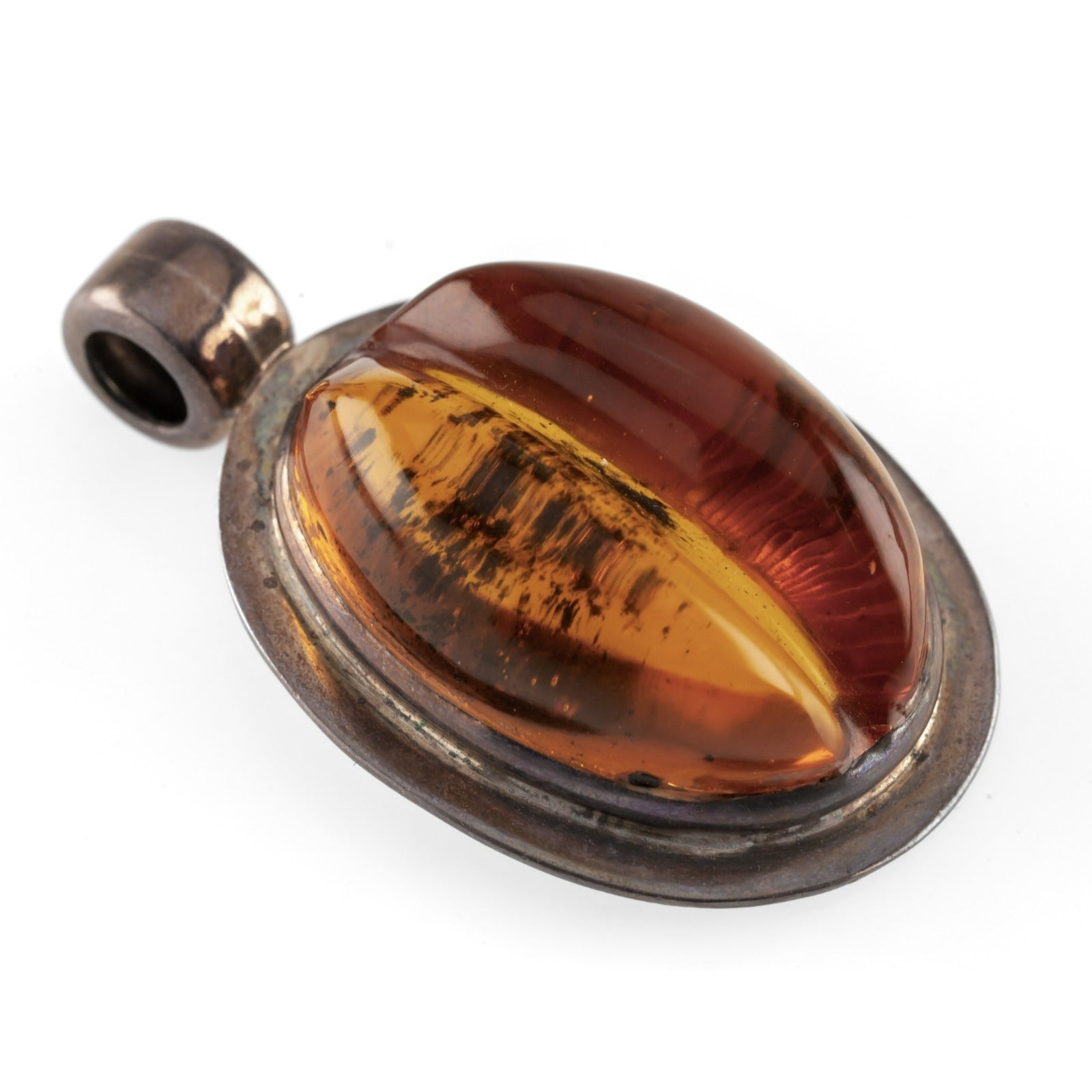 Sterling Silver & Carved Baltic Amber Pendant, 57mm
