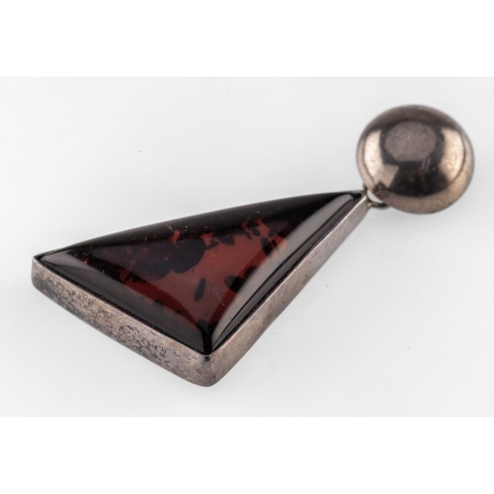 Sterling Silver & Dark Brown Baltic Amber Pendant w/ Beautiful Inclusions, 45mm