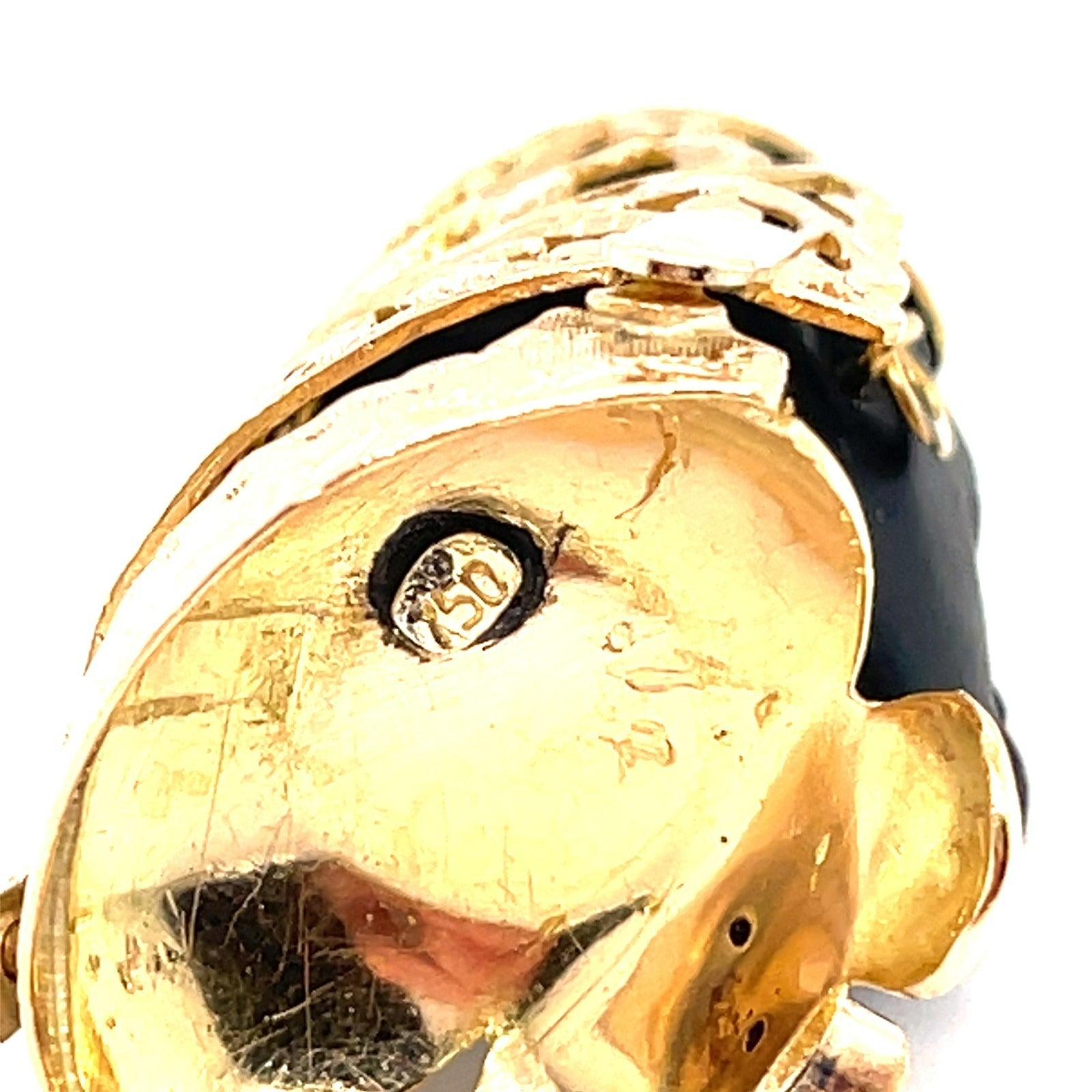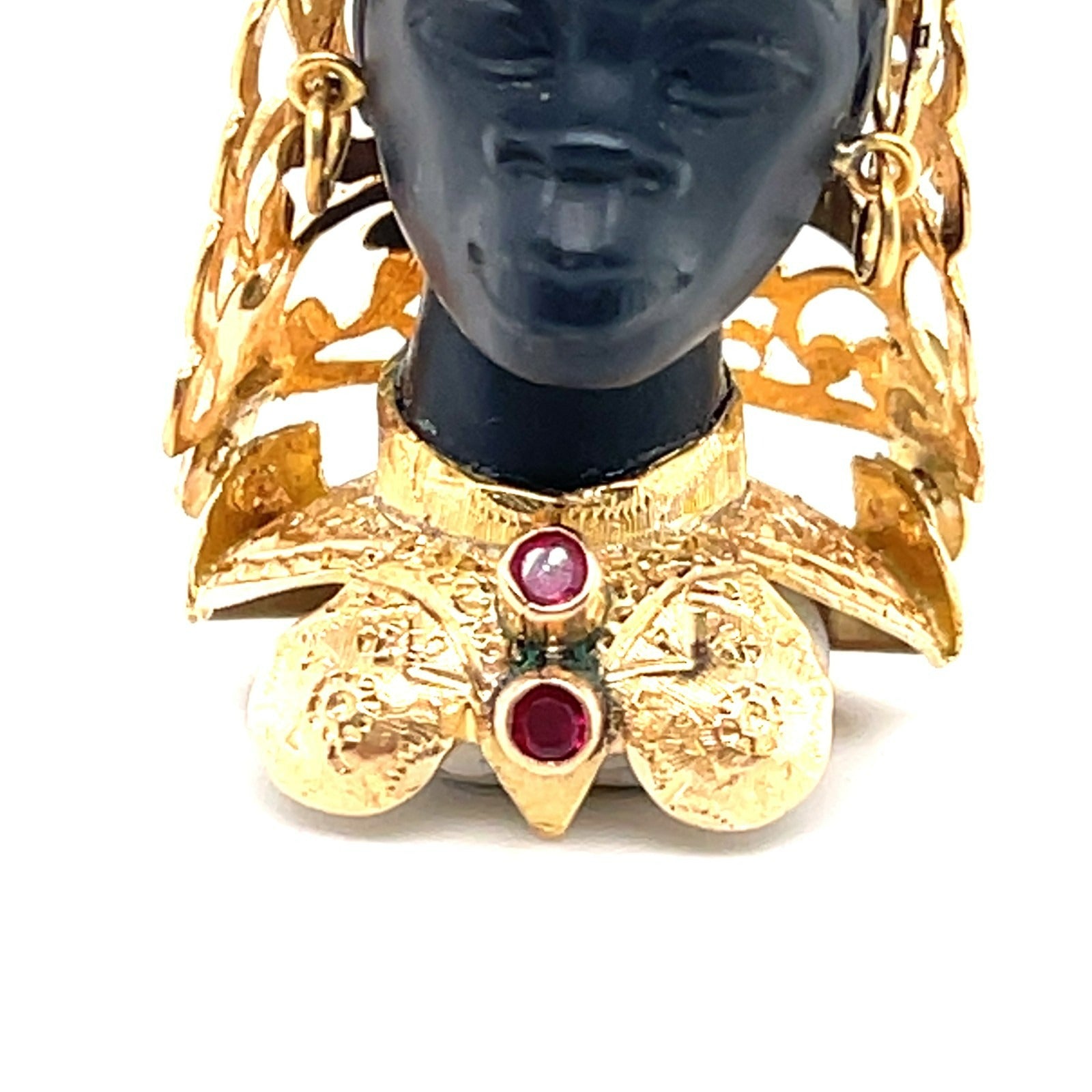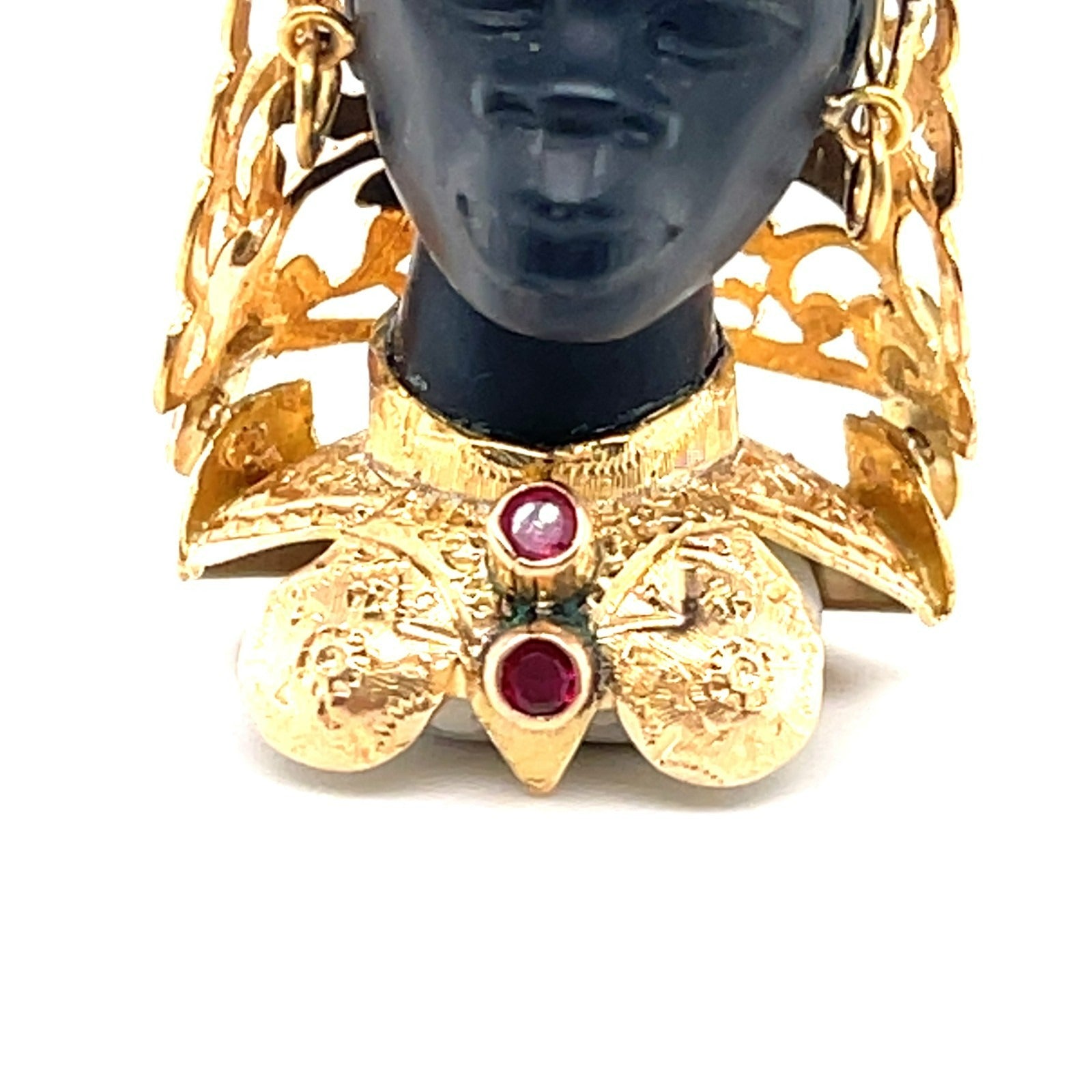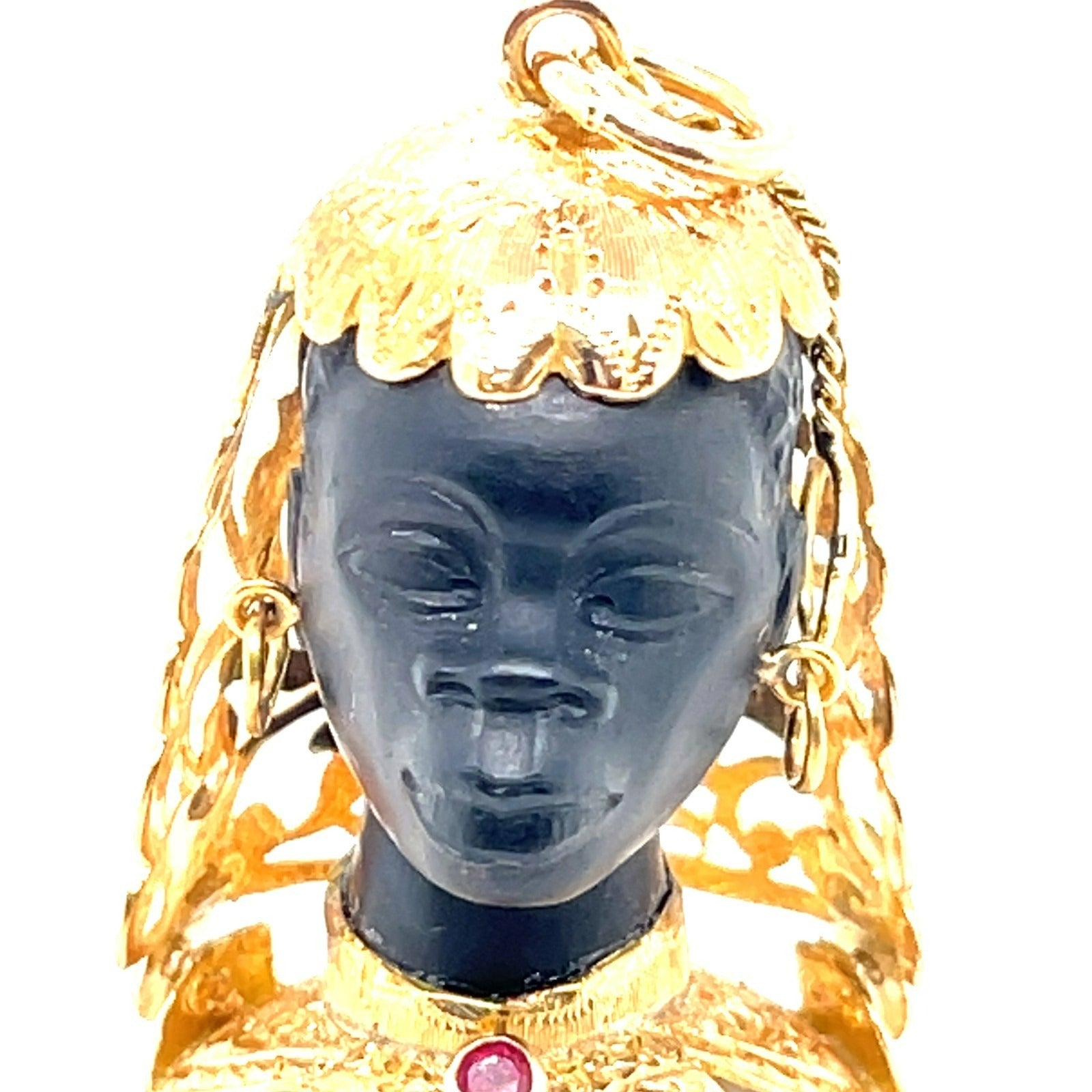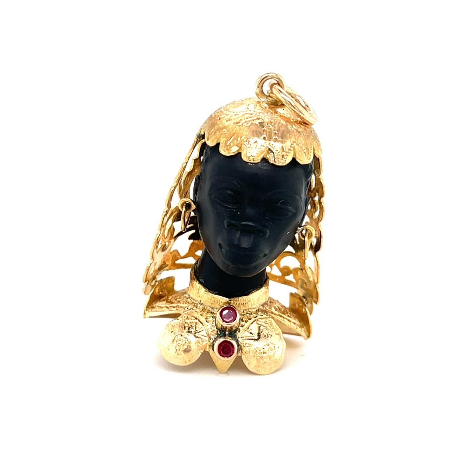 Vintage 18K Yellow Gold & Ebony Blackamoor Pendant w/ Ruby Accents, Made in Italy