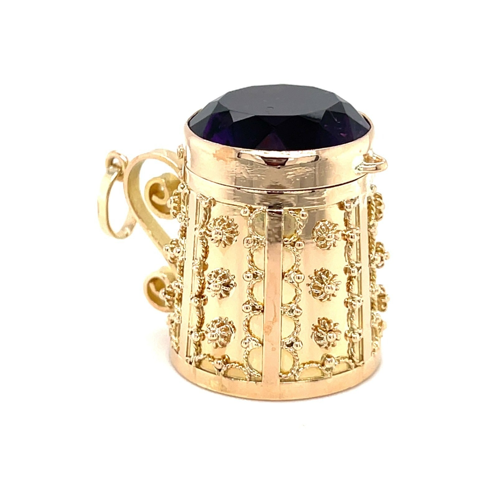Vintage 14K Gold & Amethyst Miniature Beer Stein Locket / Pendant / Charm, 27mm